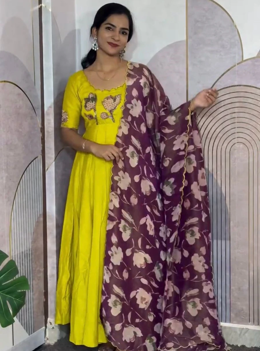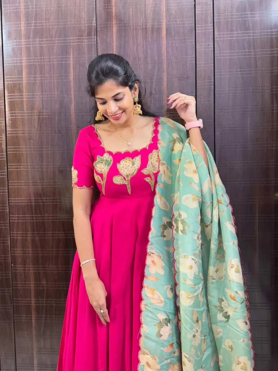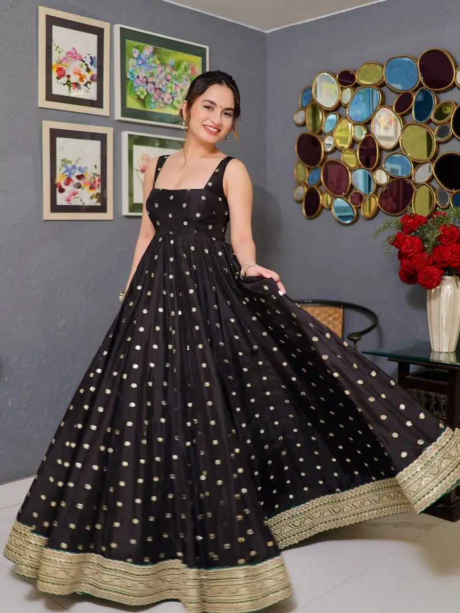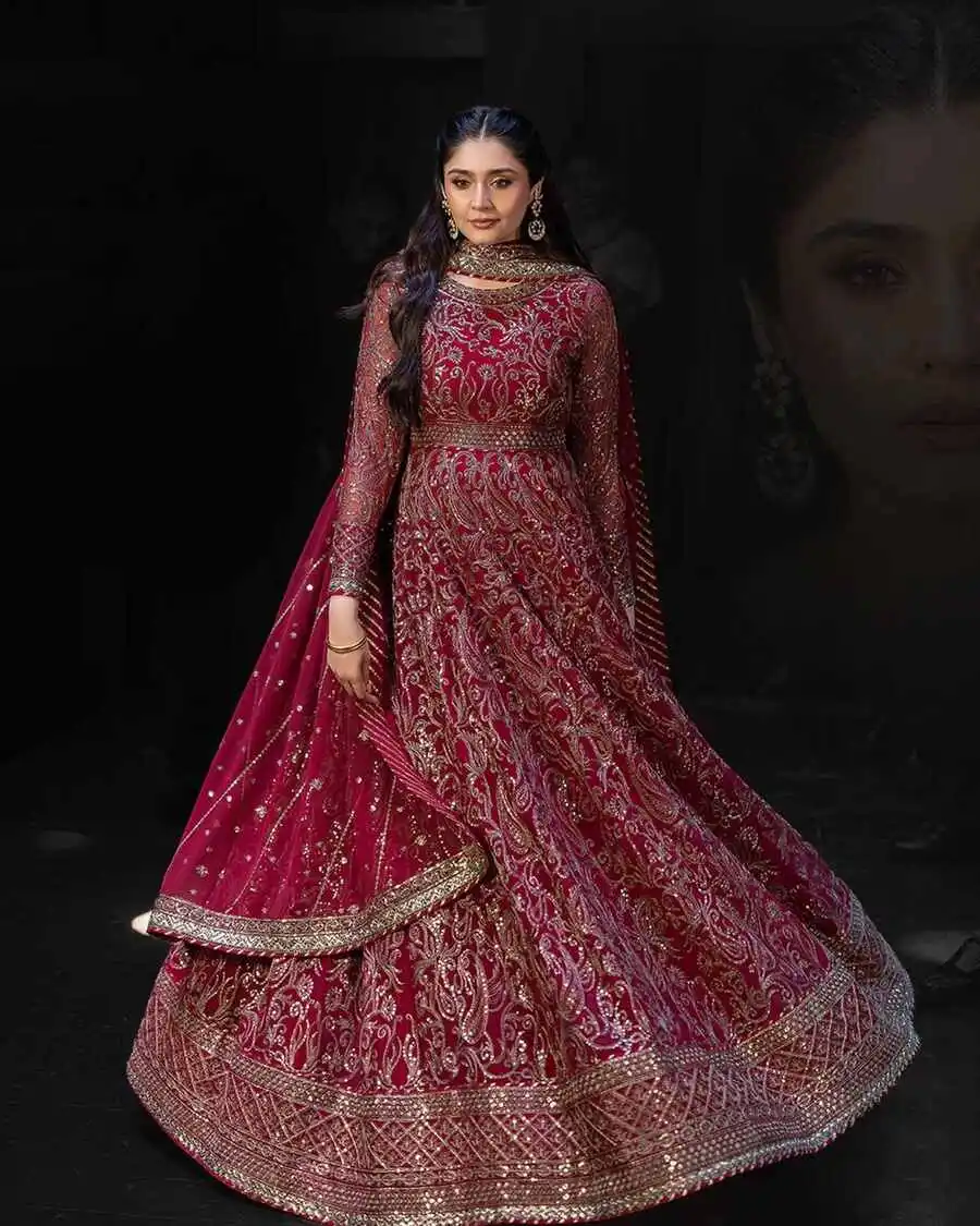 ANARKALI : FABRIC : FAUX BLOOMING WORK : HEAVY 3 MM SEQUENCE + ZARI EMBROIDERY WORK LINING : FULL MICRO COTTON (TOP TO BOTTOM) SLEEVES : FULL EMBROIDERED WORK ( 21 INCH ) NECK : FRONT ...
