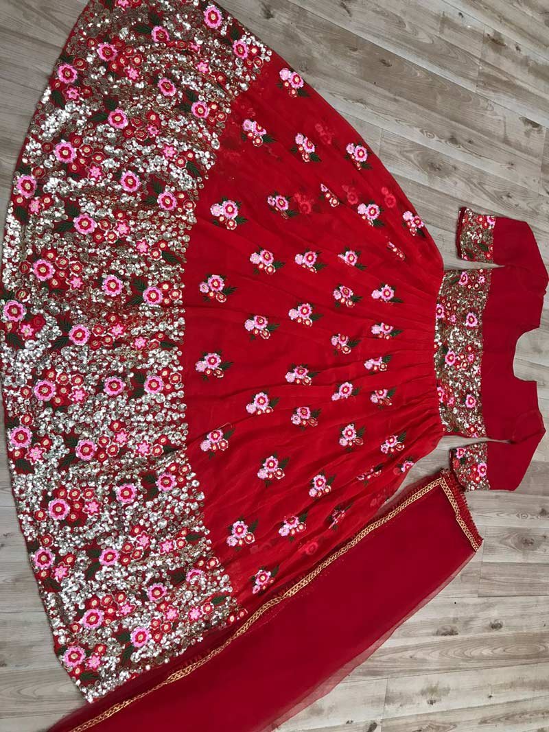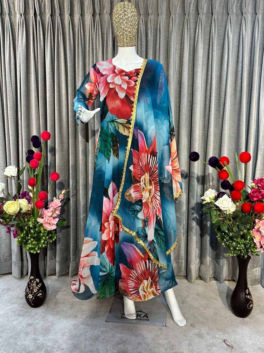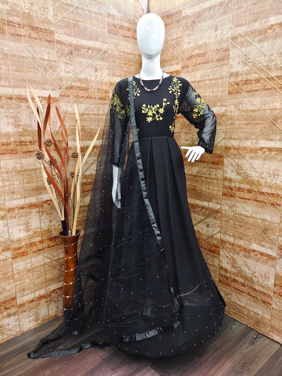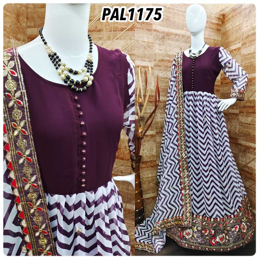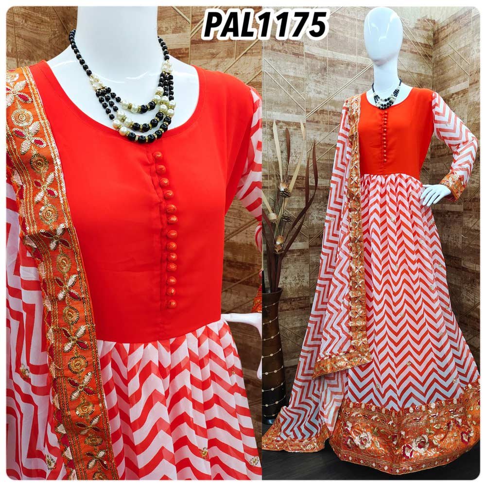 FABRIC DETAILS :- GOWN FABRIC:- GEORGETTE WITH BEAUTIFUL SIDE LATKAN & LACE BORDER DUPPATA:- GEORGETTE SLEEVE:-3/4 SIZE :-S ,M ,L ,XL ,XXL ,3XL