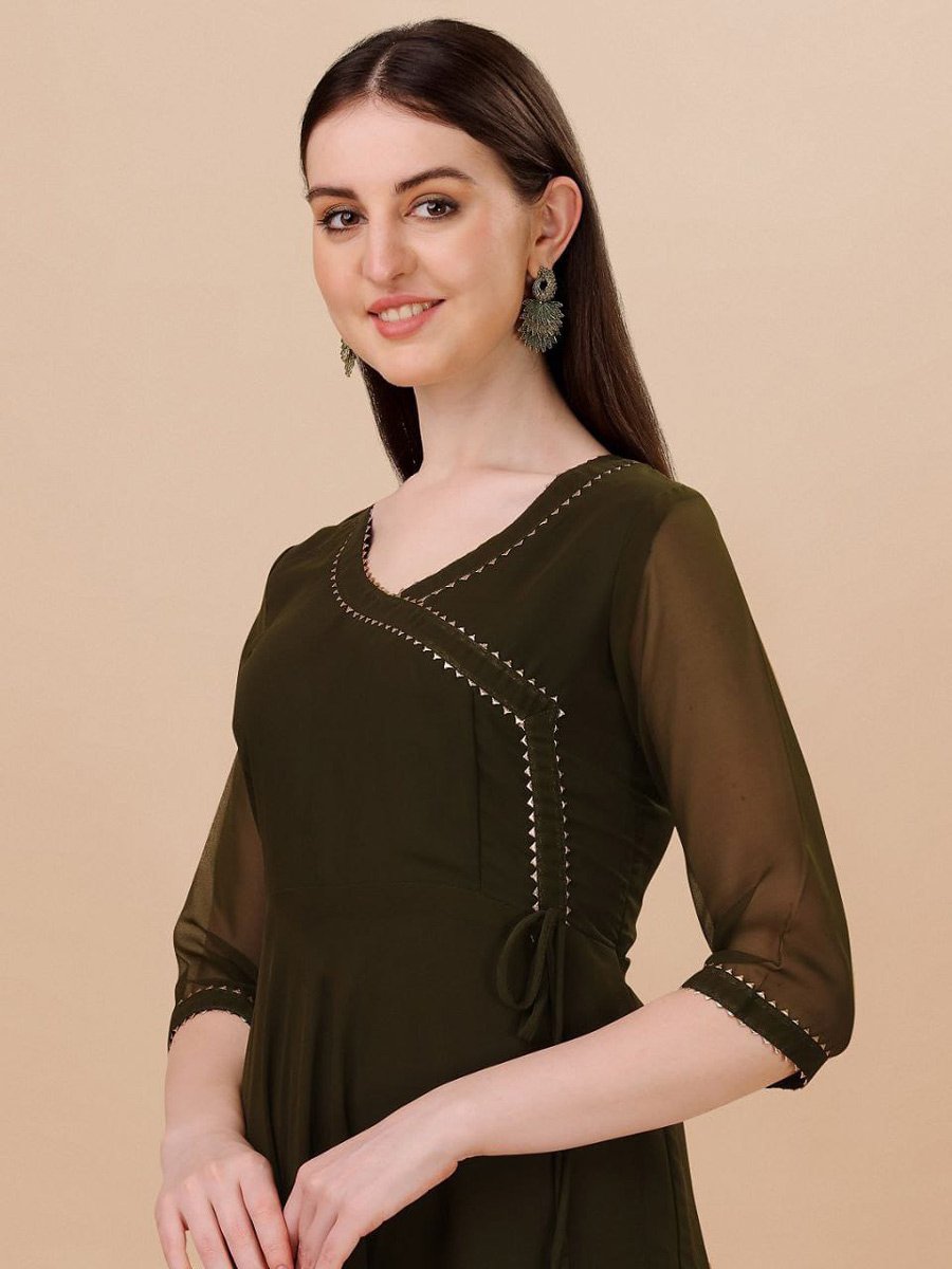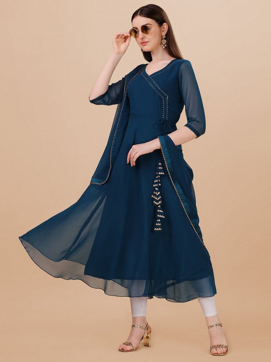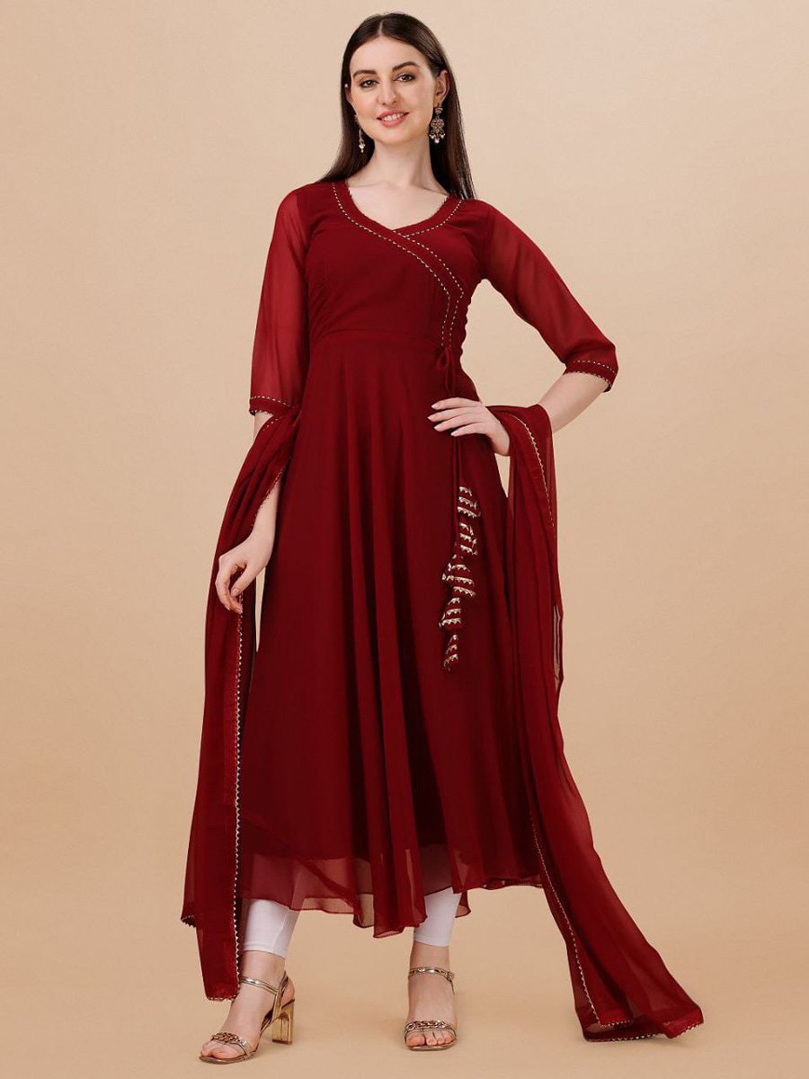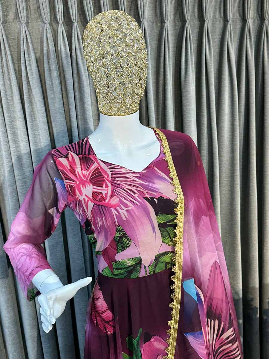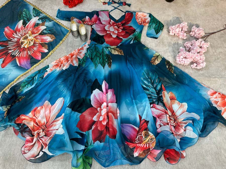 FABRIC DETAILS :- GOWN FABRIC:- GEORGETTE WITH BEAUTIFUL SIDE LATKAN & LACE BORDER DUPPATA:- GEORGETTE SLEEVE:-3/4 SIZE :-S ,M ,L ,XL ,XXL ,3XL
