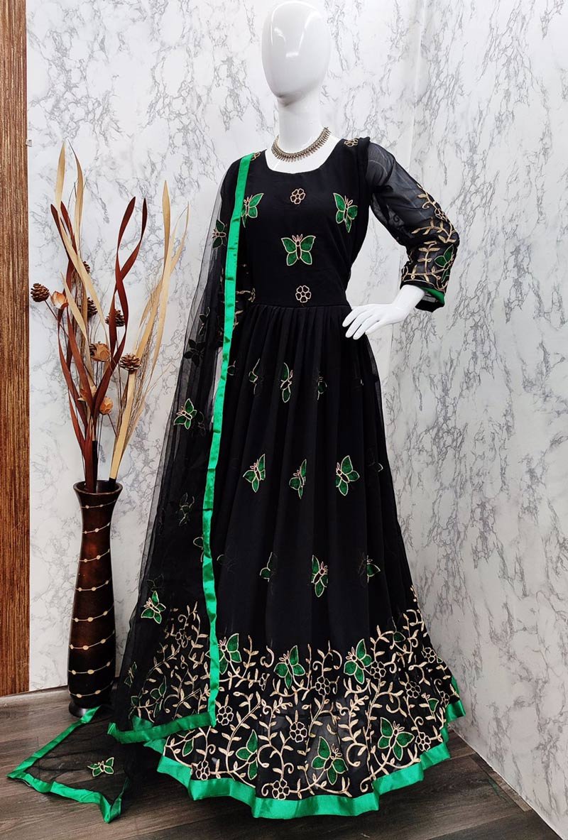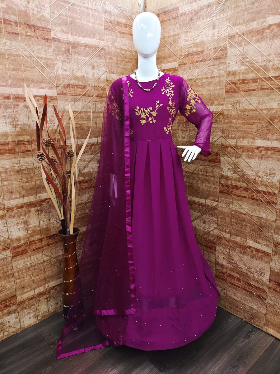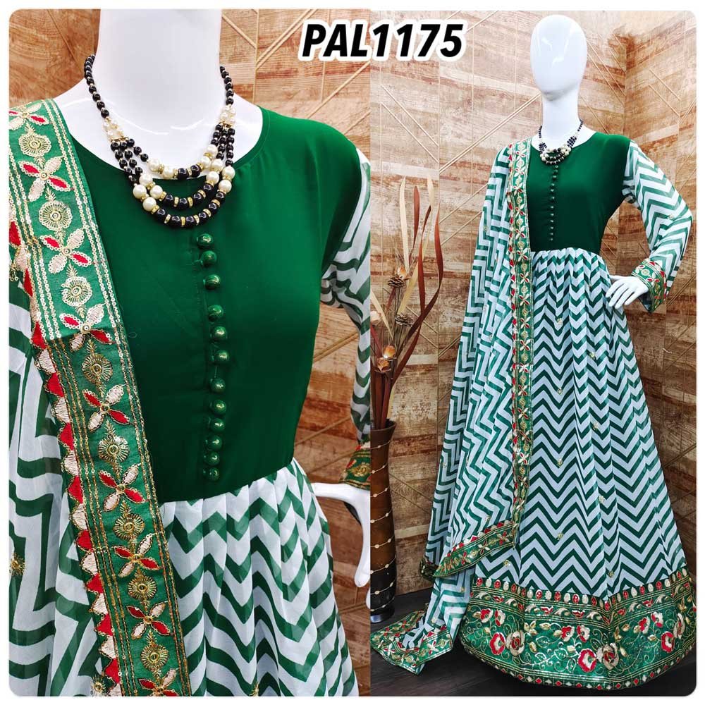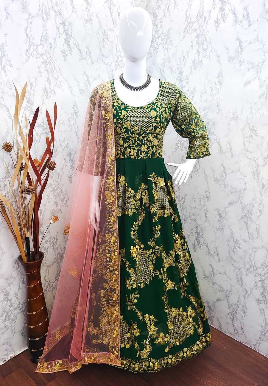 FORMAL WEAR GEORGETTE PLAIN GOWN WITH DUPATTA GREEN