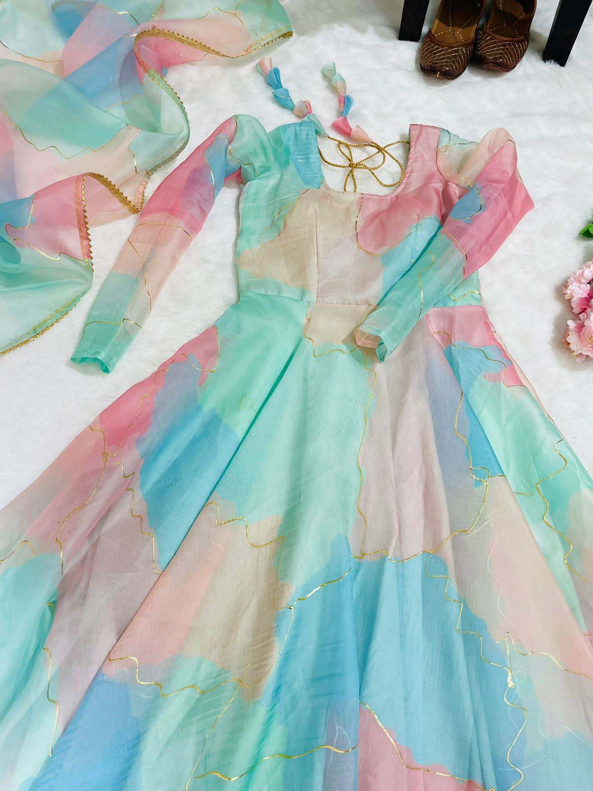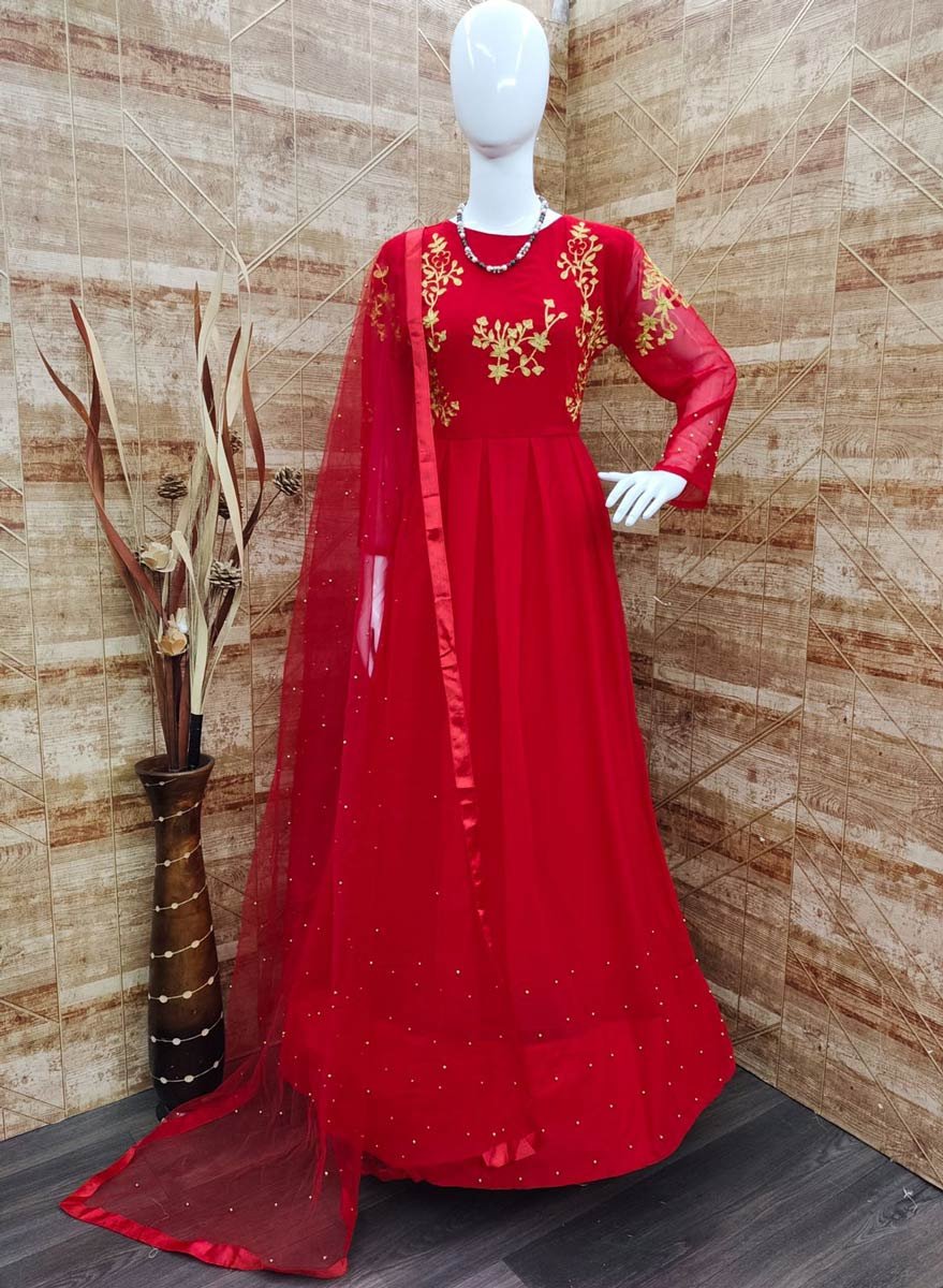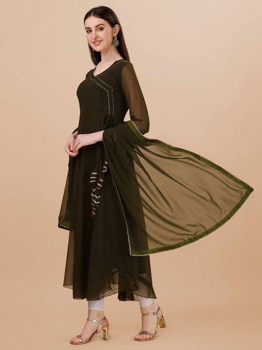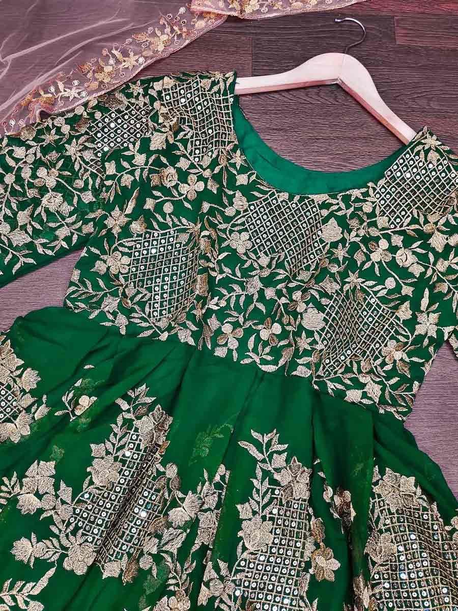 FORMAL WEAR GEORGETTE PLAIN GOWN WITH DUPATTA GREEN