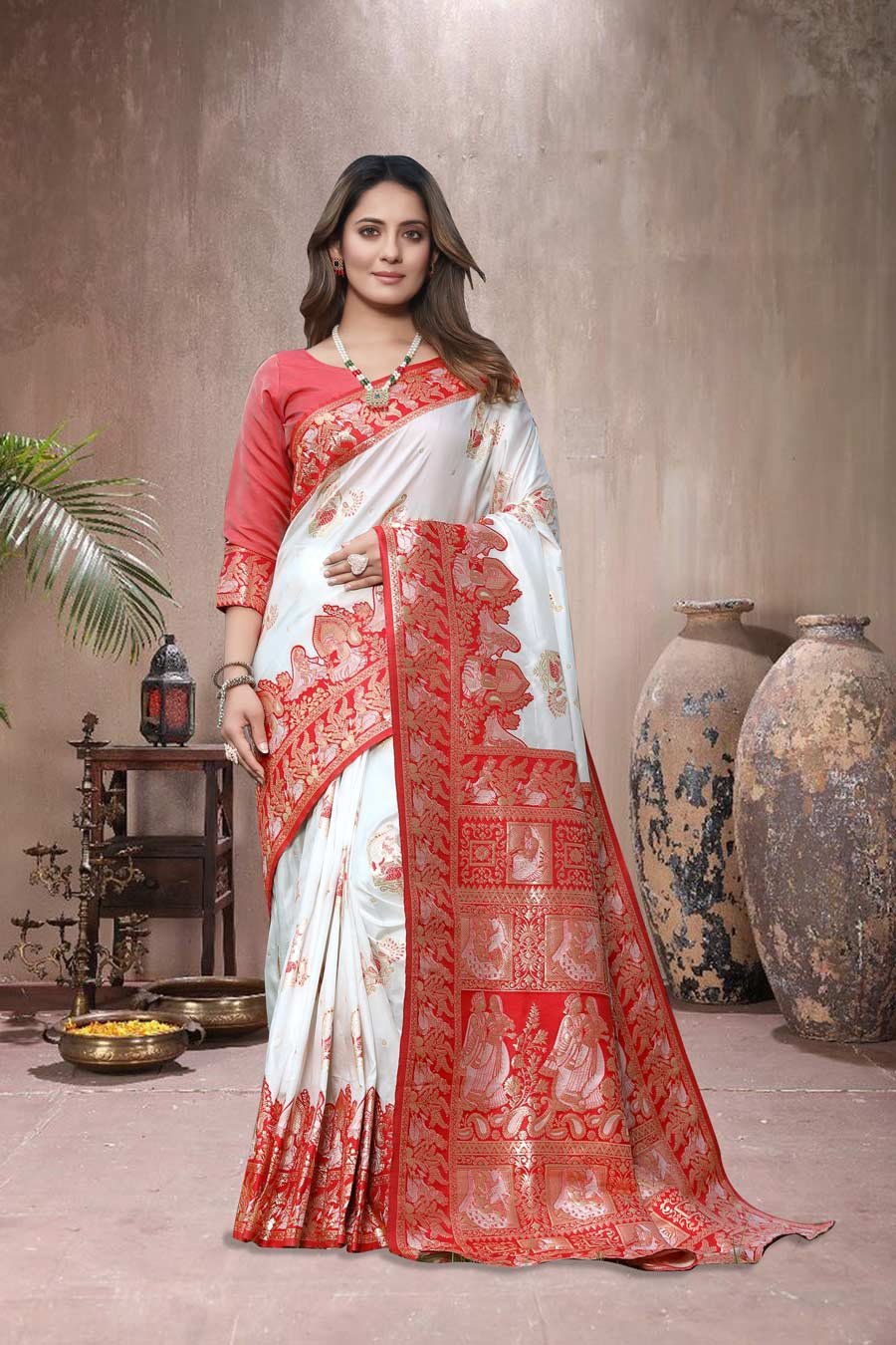 SAREE FABRIC :- BANARASI SOFT SILK SAREE WORK :- COPPER AND SILVER ZARI WEAVING SAREE LENGTH 5.5 METER BLOUSE LENGTH 0.8 METER SAREE WITH UNSTITCHED BLOUSE