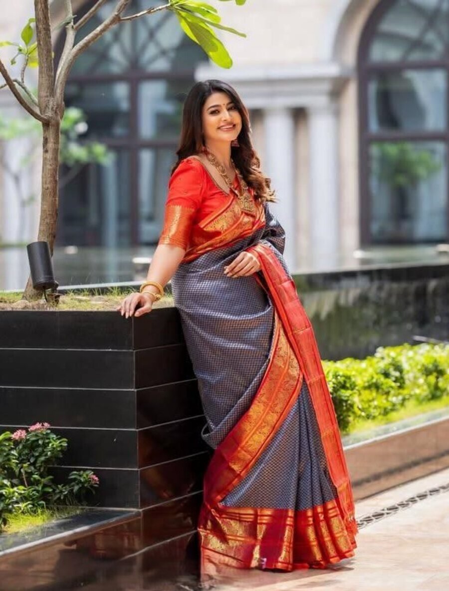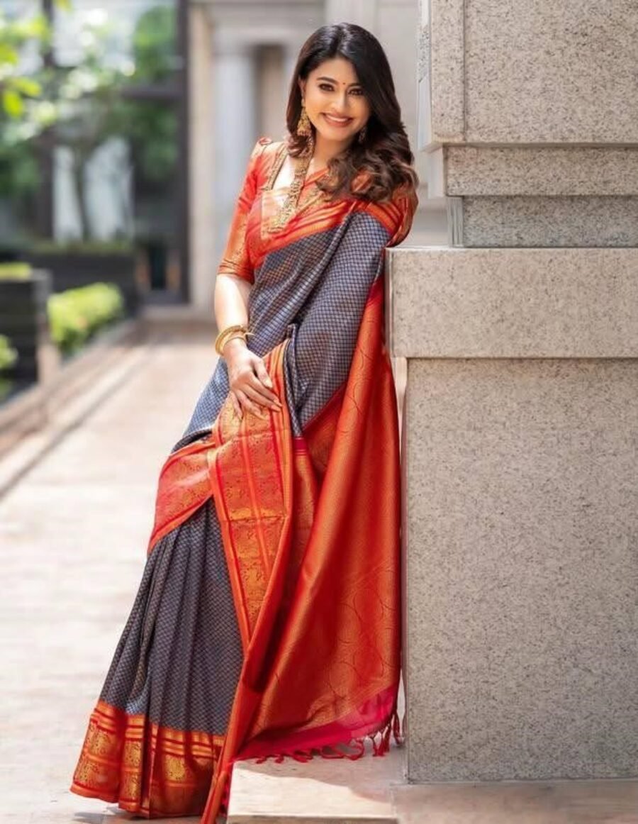 TRENDING BANARASI SOFT SILK WEAVING WORK SAREE WITH UNSTITCHED BLOUSE ORANGE