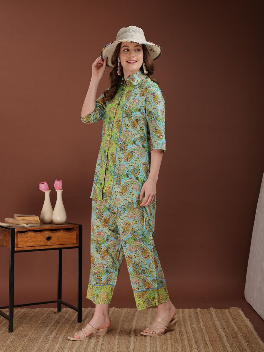 CO-ORD SET : TOP : FABRIC :- HEAVY RAYON WORK :- PRINTED LENGTH :- 30 INCH PANT : FABRIC :- HEAVY RAYON LENGTH :- 38 INCH SIZE :- S(36) ,M(38), L(40), XL(42), XXL(44)