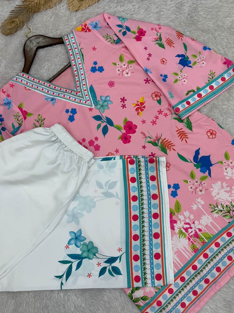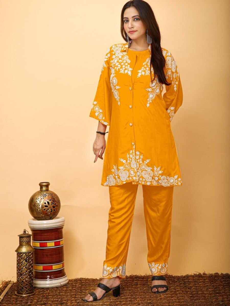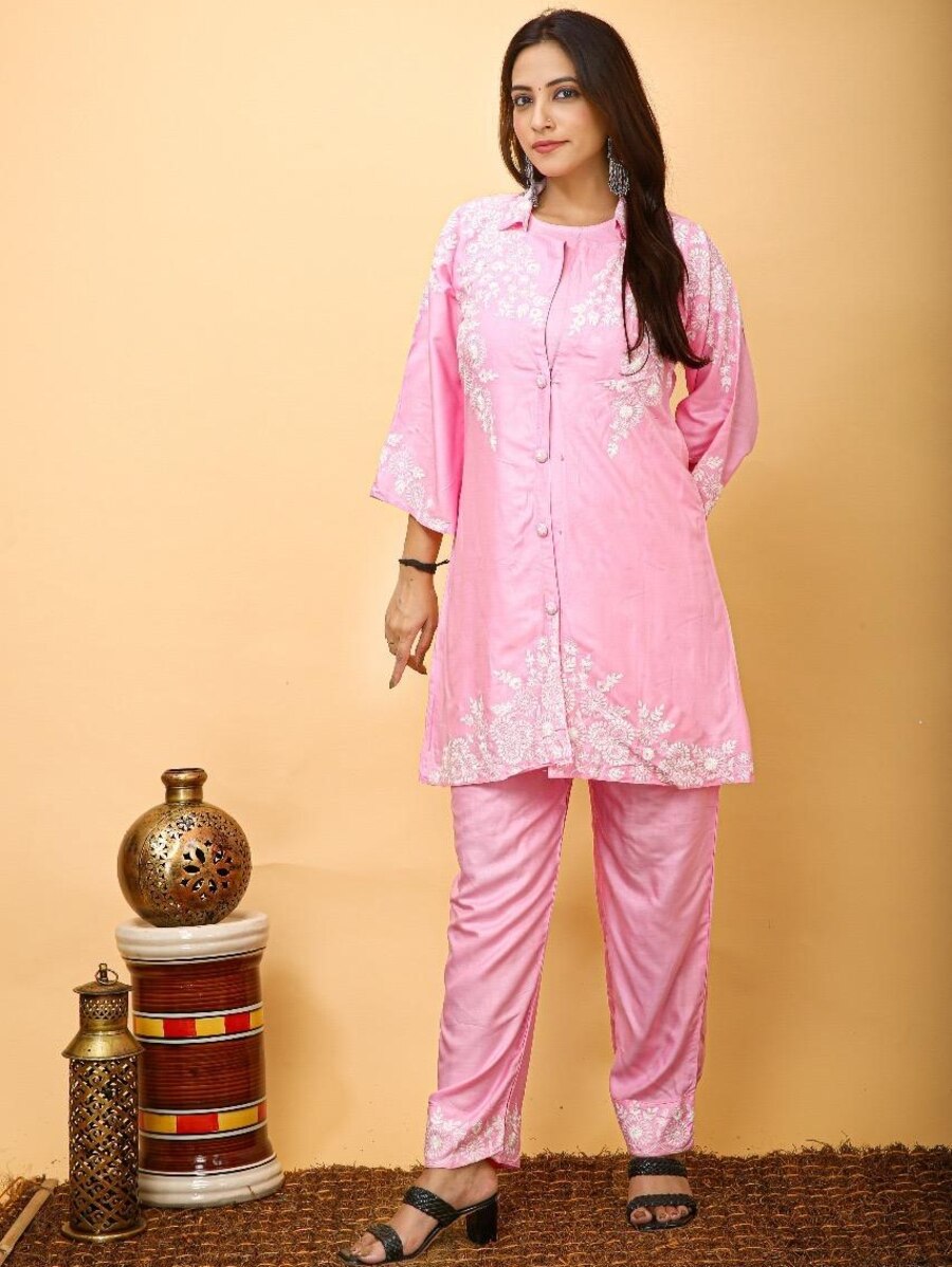 CO-ORD SET : TOP : FABRIC : KHADI COTTON WORK : SCHIFLI WORK WITH THREAD WORK LENGTH : 31-32 INCH SIZE : M(38), L(40), XL(42), XXL(44) PENT : FABRIC : PURE KHADI COTTON WORK : SCHIFLI ...