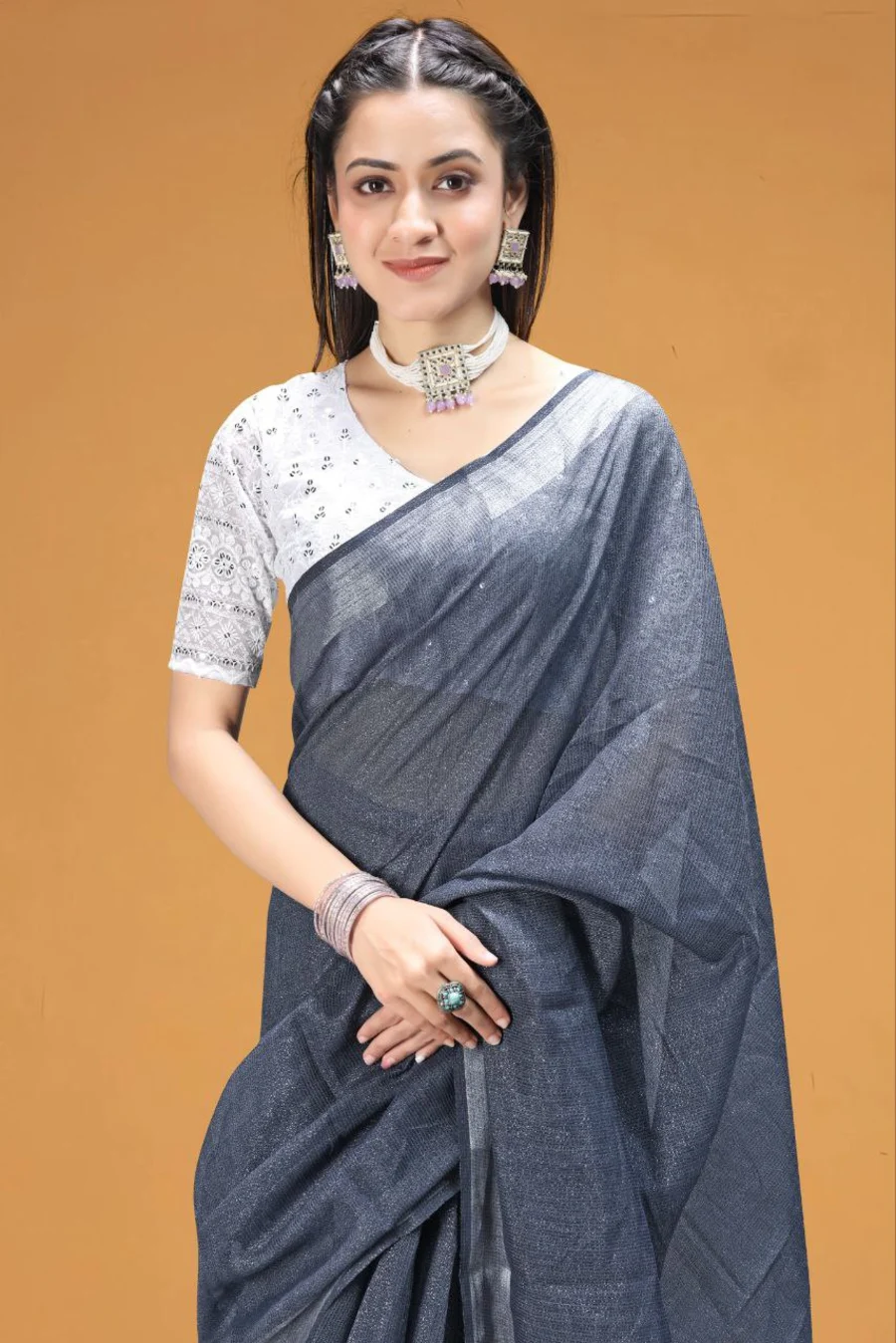 SAREE : FABRIC : LINEN SOFT COTTON WORK : WEAVING WORK LENGTH : 5.5 METER BLOUSE : FABRIC : RUNING WORK : RICH WEAVING RICH BLOUSE LENGTH : 0.80 METER SAREE WITH UNSTITCHED BLOUSE
