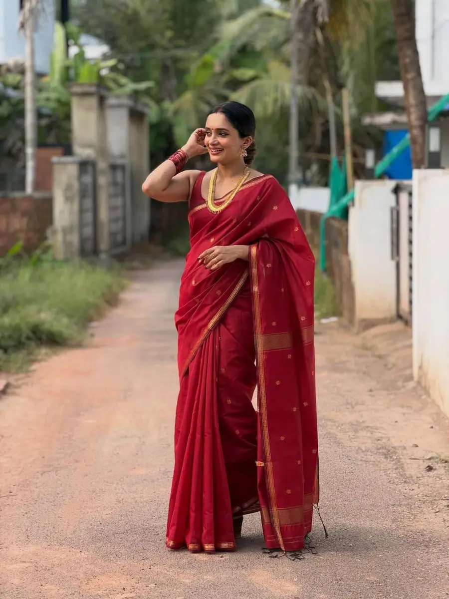 LATEST LINEN COTTON WEAVING WORK SAREE WITH UNSTITCHED BLOUSE MAROON