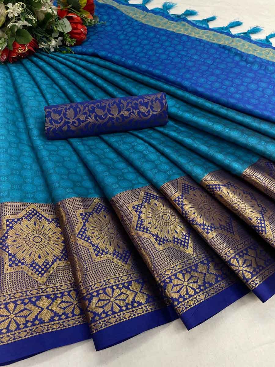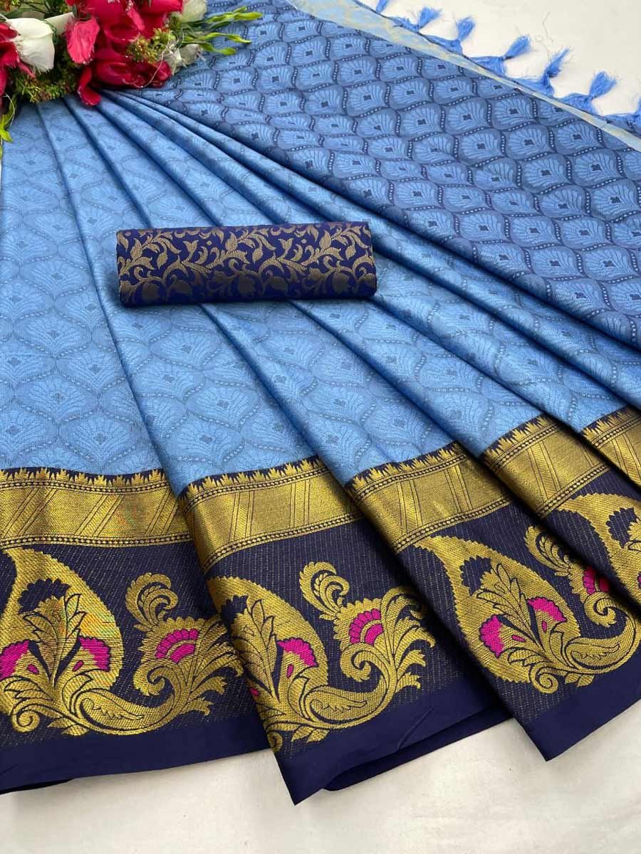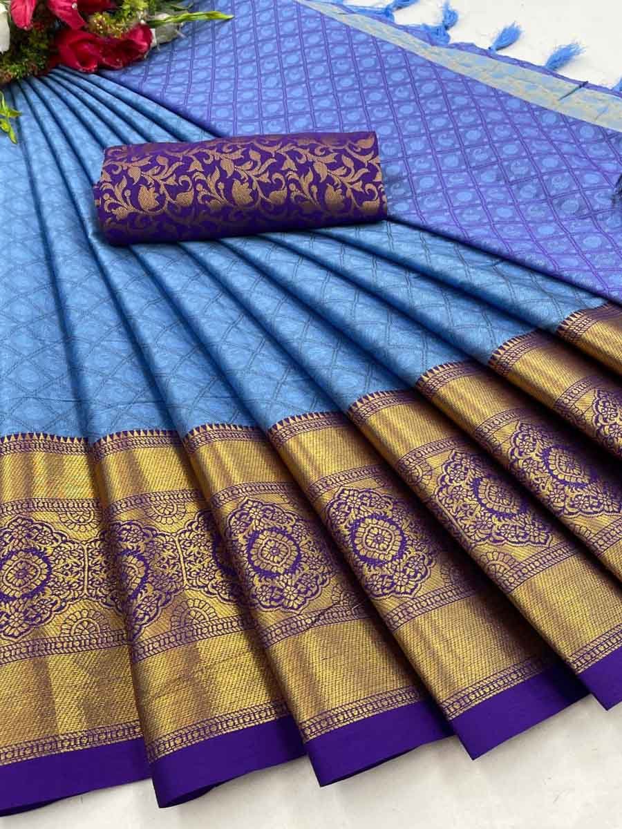 SAREE WITH UNSTITCHED BLOUSE Cotton silk saree FESTIVAL WEAR WITH SOFT LITCHI SILK SAREE BLUESAREE FABRICS: SOFT LICHI SILK WORK: GOLDEN ZARI WEAVING JACQUARD BLOUSE FABRICS: BEAUTIFUL WEAVING 5.50-METER SAREE + UNSTITCHED BLOUSE ₹798.00Add to cart EG36672