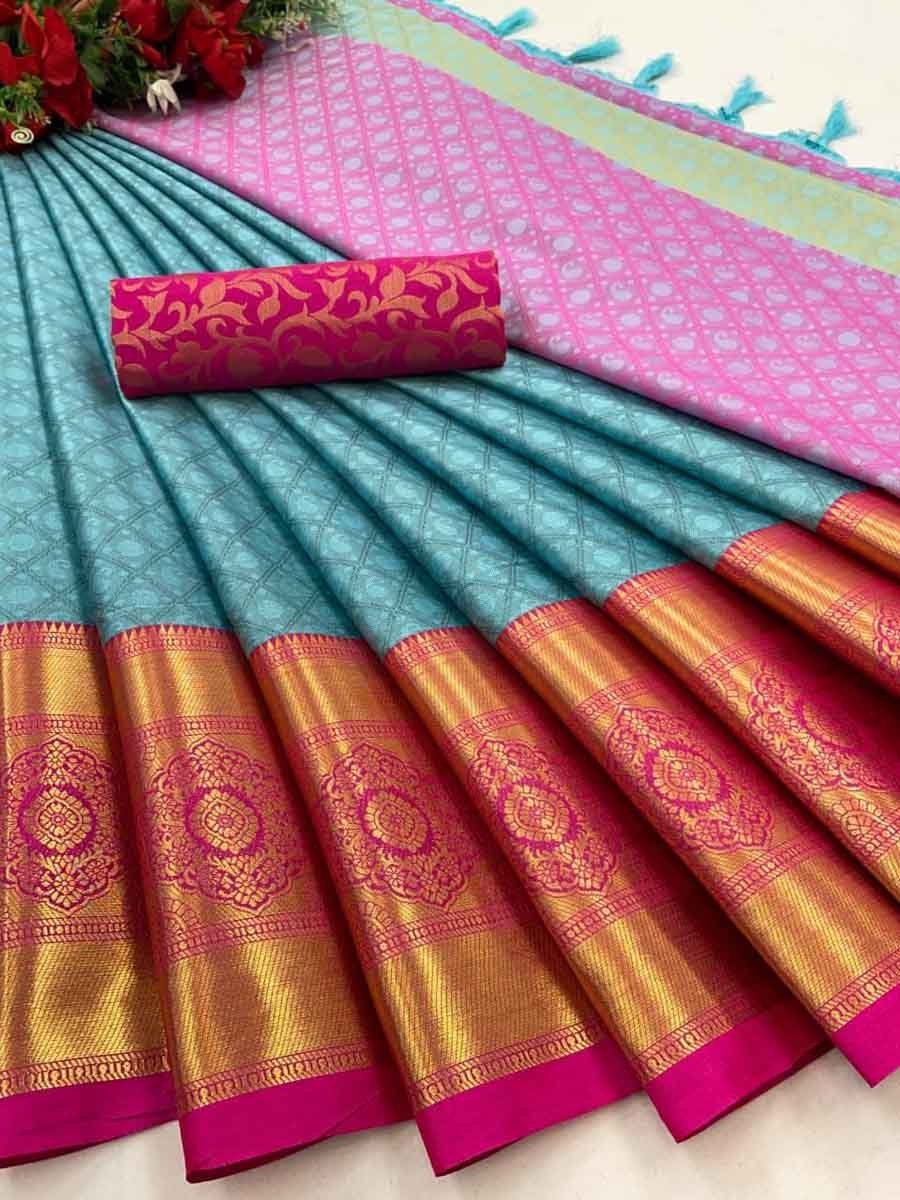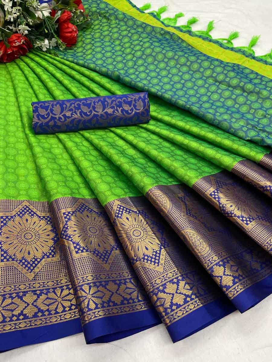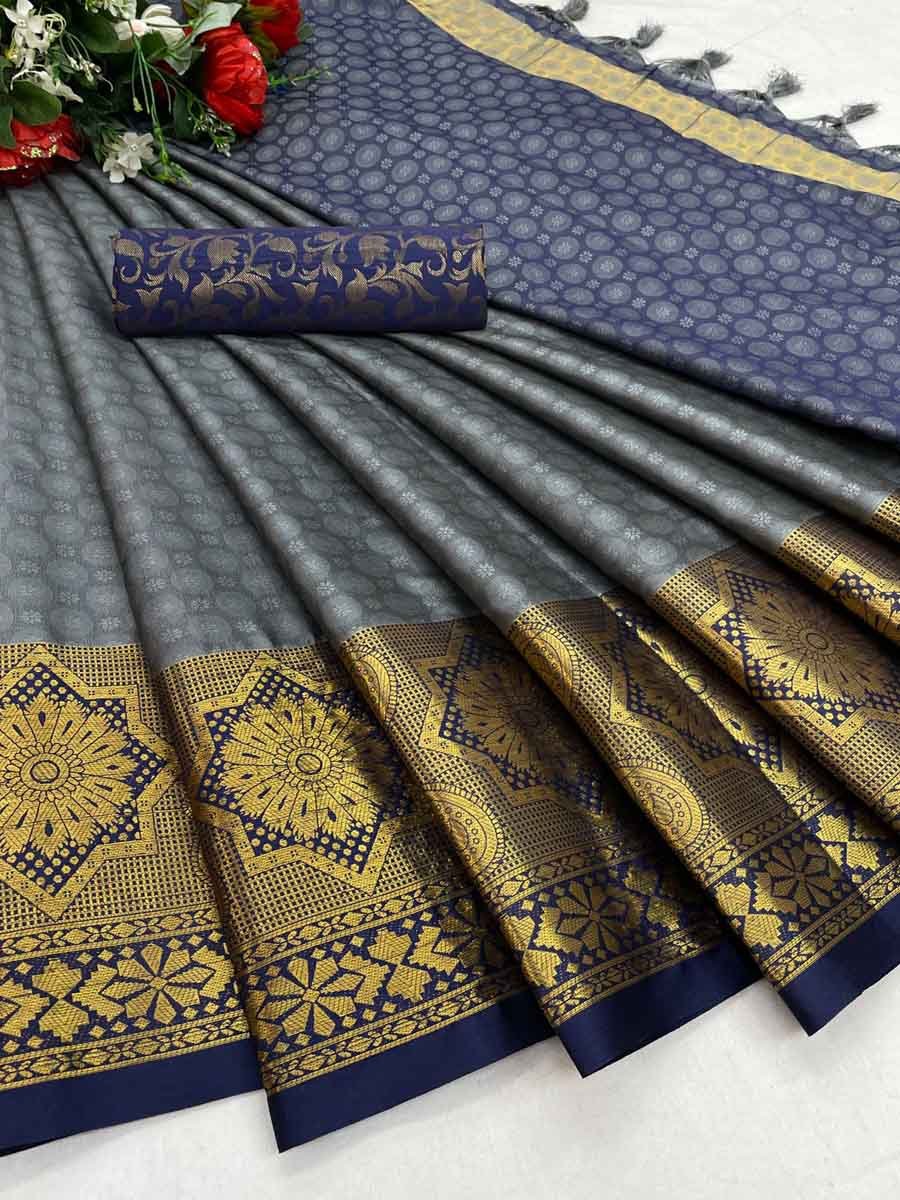 SAREE WITH UNSTITCHED BLOUSE Cotton silk saree FESTIVAL WEAR WITH SOFT LITCHI SILK SAREE BLUESAREE FABRICS: SOFT LICHI SILK WORK: GOLDEN ZARI WEAVING JACQUARD BLOUSE FABRICS: BEAUTIFUL WEAVING 5.50-METER SAREE + UNSTITCHED BLOUSE ₹798.00Add to cart EG36672