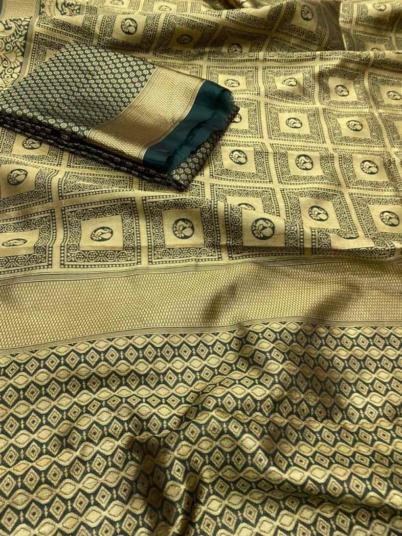 SAREE WITH UNSTITCHED BLOUSE Cotton silk saree PARTY WEAR LOOK WITH GOLDEN ZARI WEAVING JACQUARD SAREE DARK GREENSAREE FABRICS: SOFT LICHI SILK WORK: GOLDEN ZARI WEAVING JACQUARD BLOUSE FABRICS: BEAUTIFUL WEAVING 5.50-METER SAREE + UNSTITCHED BLOUSE ₹704.00Add to cart EG36673