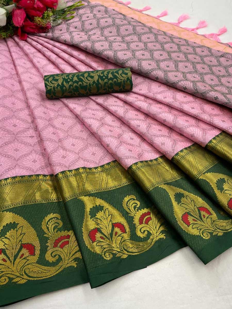 SAREE WITH UNSTITCHED BLOUSE Cotton silk saree NEW ARRIVAL SOFT COTTON JACQUARD PALLU SAREE WITH UNSTITCHED BLOUSE PINKFabric: Premium Soft Cotton Silk with broad border with running blouse contrast jacquard border Length: 5.50 Meter + unstitched blouse ₹629.00Add to cart EG27121