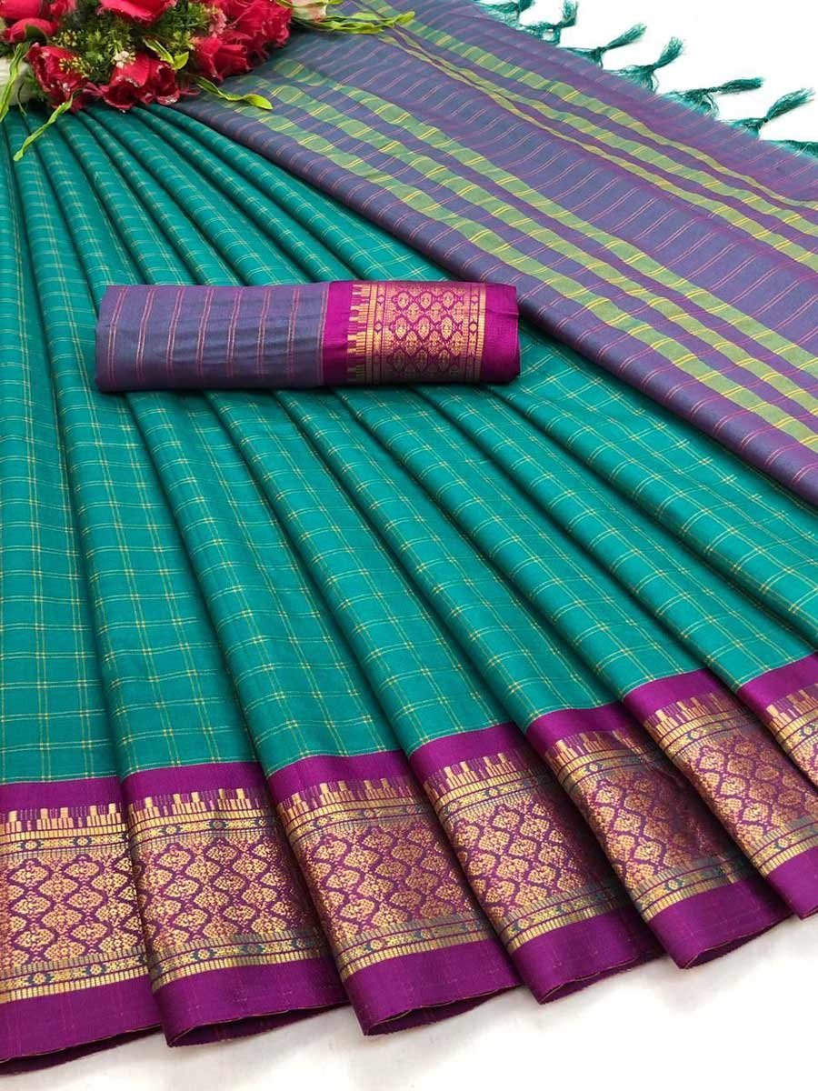 SAREE WITH UNSTITCHED BLOUSE Cotton silk saree NEW ARRIVAL SOFT COTTON JACQUARD PALLU SAREE WITH UNSTITCHED BLOUSE RAMAFabric: Premium Soft Cotton Silk with broad border with running blouse contrast jacquard border Length: 5.50 Meter + unstitched blouse ₹629.00Add to cart EG27120