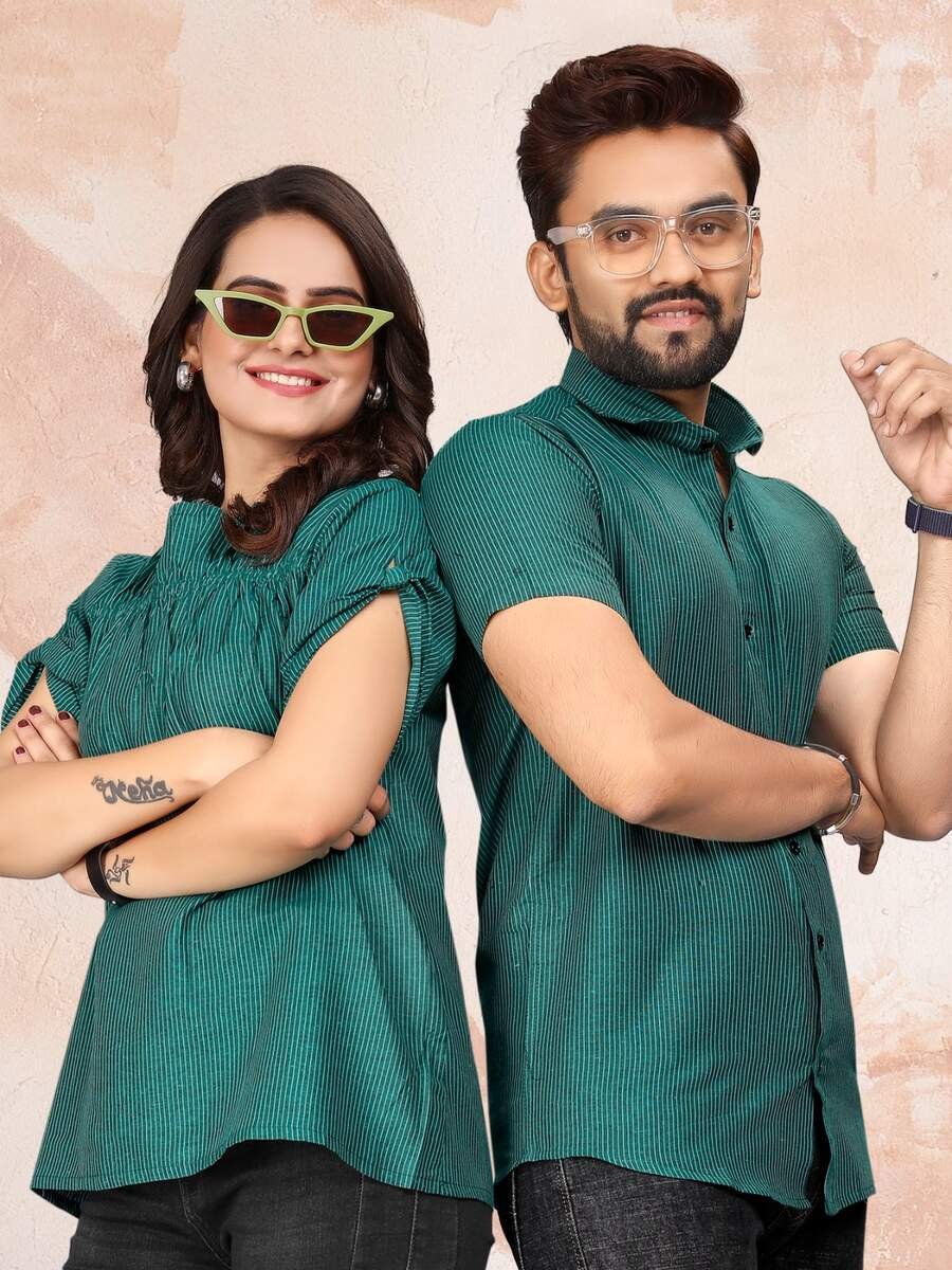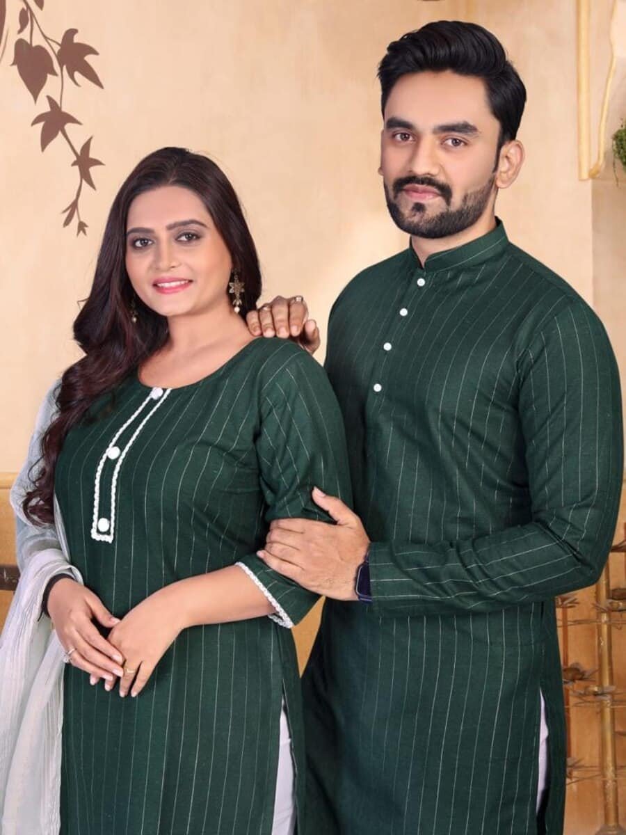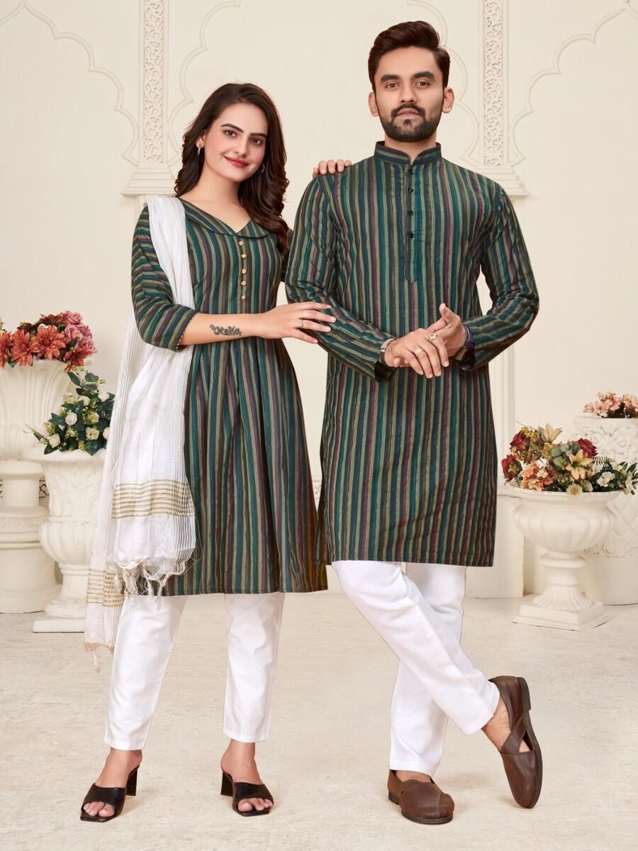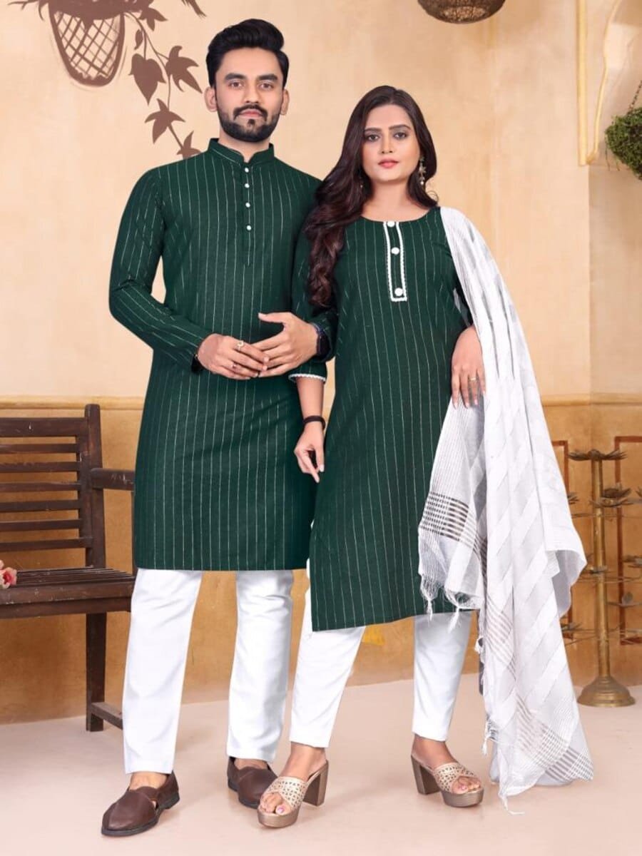 DESIGNER COTOTN SILVAR WEAVING WORK COUPLE WEAR COMBO GREEN