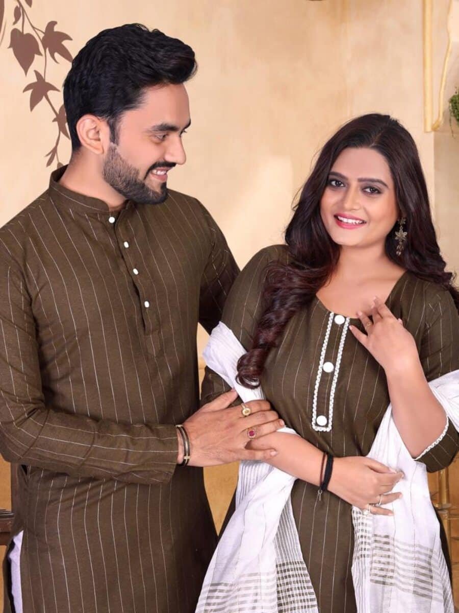 DESIGNER COTOTN SILVAR WEAVING WORK COUPLE WEAR COMBO MEHNDI