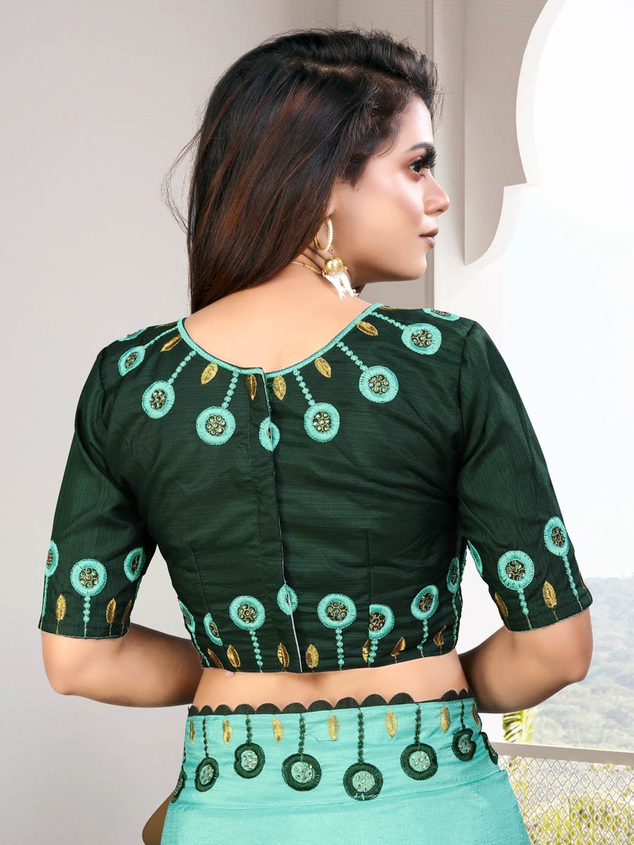 PARTY WEAR DOLA SILK EMBROIDERY WORK SAREE WITH UNSTITCHED BLOUSE MINT