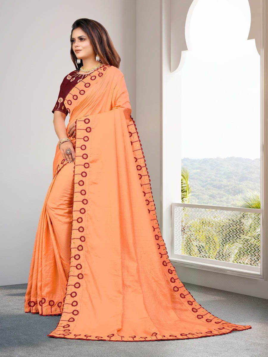 PARTY WEAR DOLA SILK EMBROIDERY WORK SAREE WITH UNSTITCHED BLOUSE ORANGE