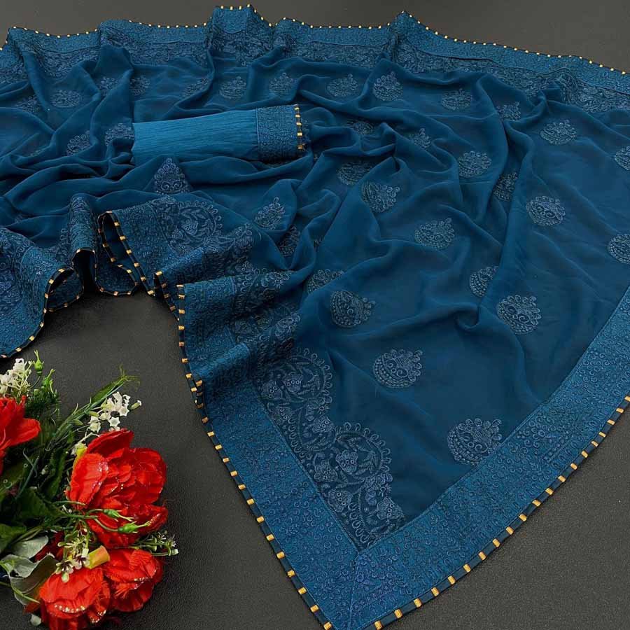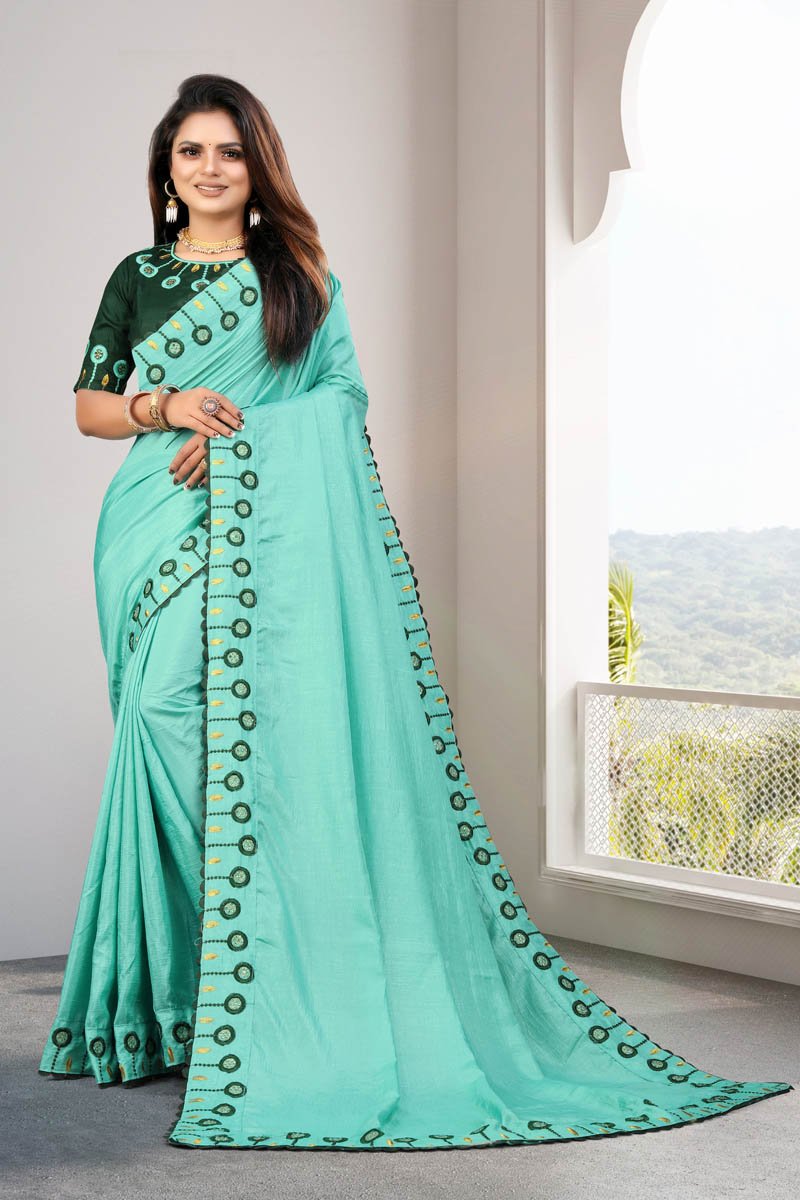 NEW DESIGNER SAREE WITH BLOUSE BODER WORK PARTY WEAR TEAL