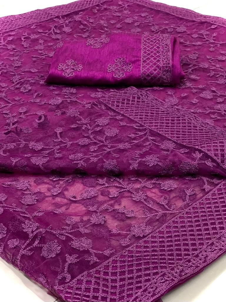 DESIGNER SUPER NET EMBROIDERY WORK SAREE WITH UNSTITCHED BLOUSE VIOLET
