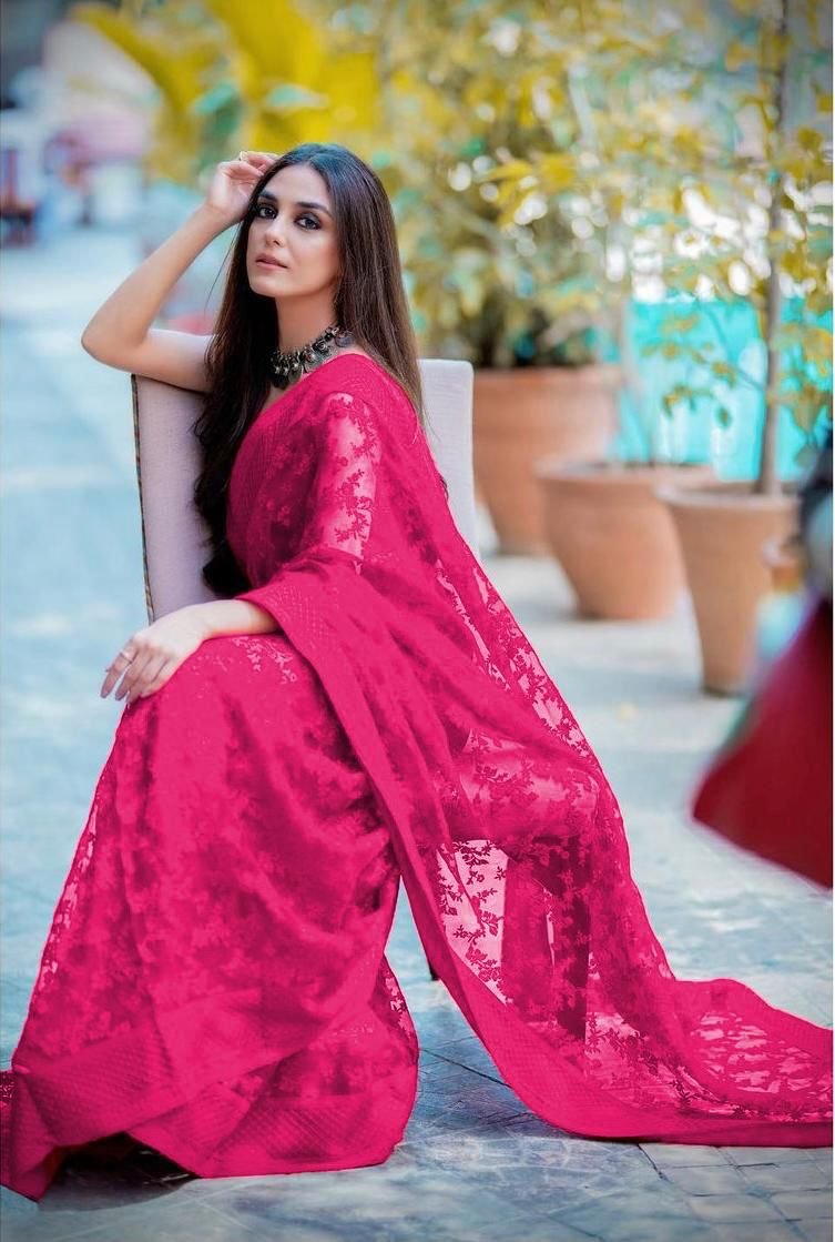 DESIGN NET ON HEAVY EMBROIDRY WORK SAREE WITH BANGLORI BLOUSE PARTY WEAR PINK