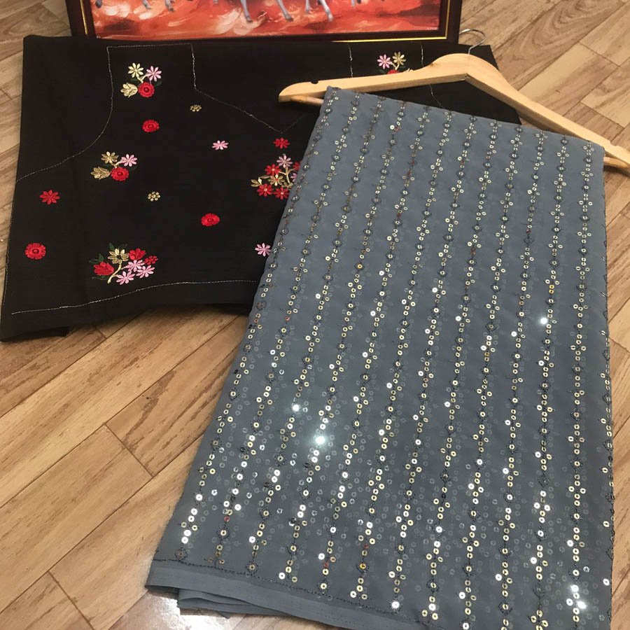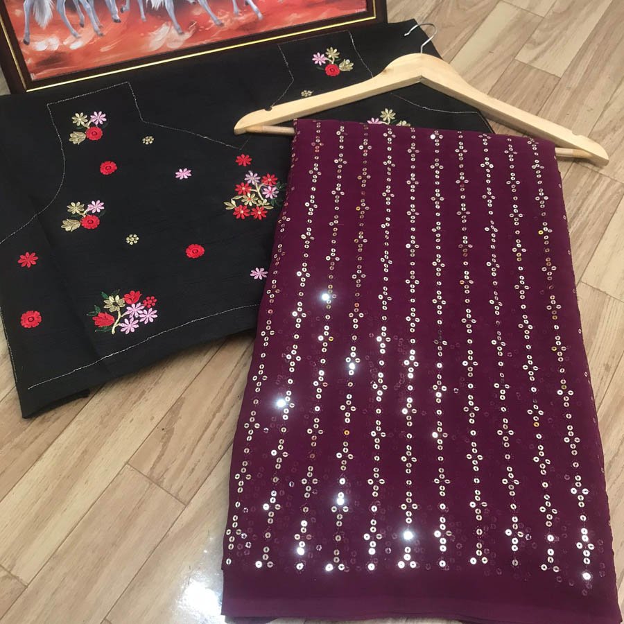 FABRIC : GEORGETTE WITH SEQUENCE EMBROIDERY LACE BORDER BLOUSE : MATTY SILK WITH EMBROIDERY WORK 5.5 meter saree with Unstitched Blouse
