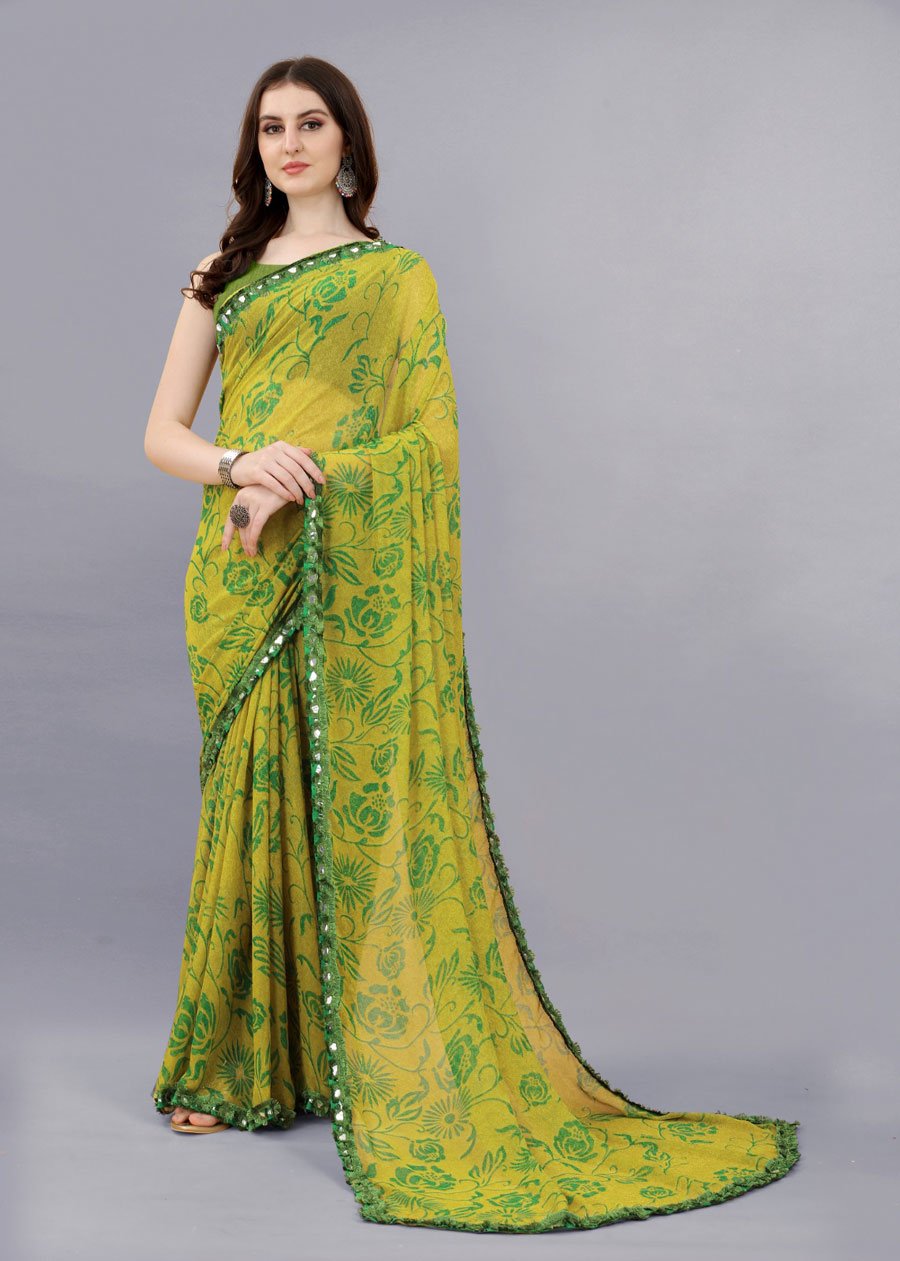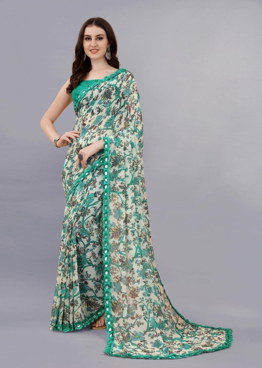 TRENDING GEORGETTE PRINTED SAREE WITH UNSTITCHED BLOUSE GREEN