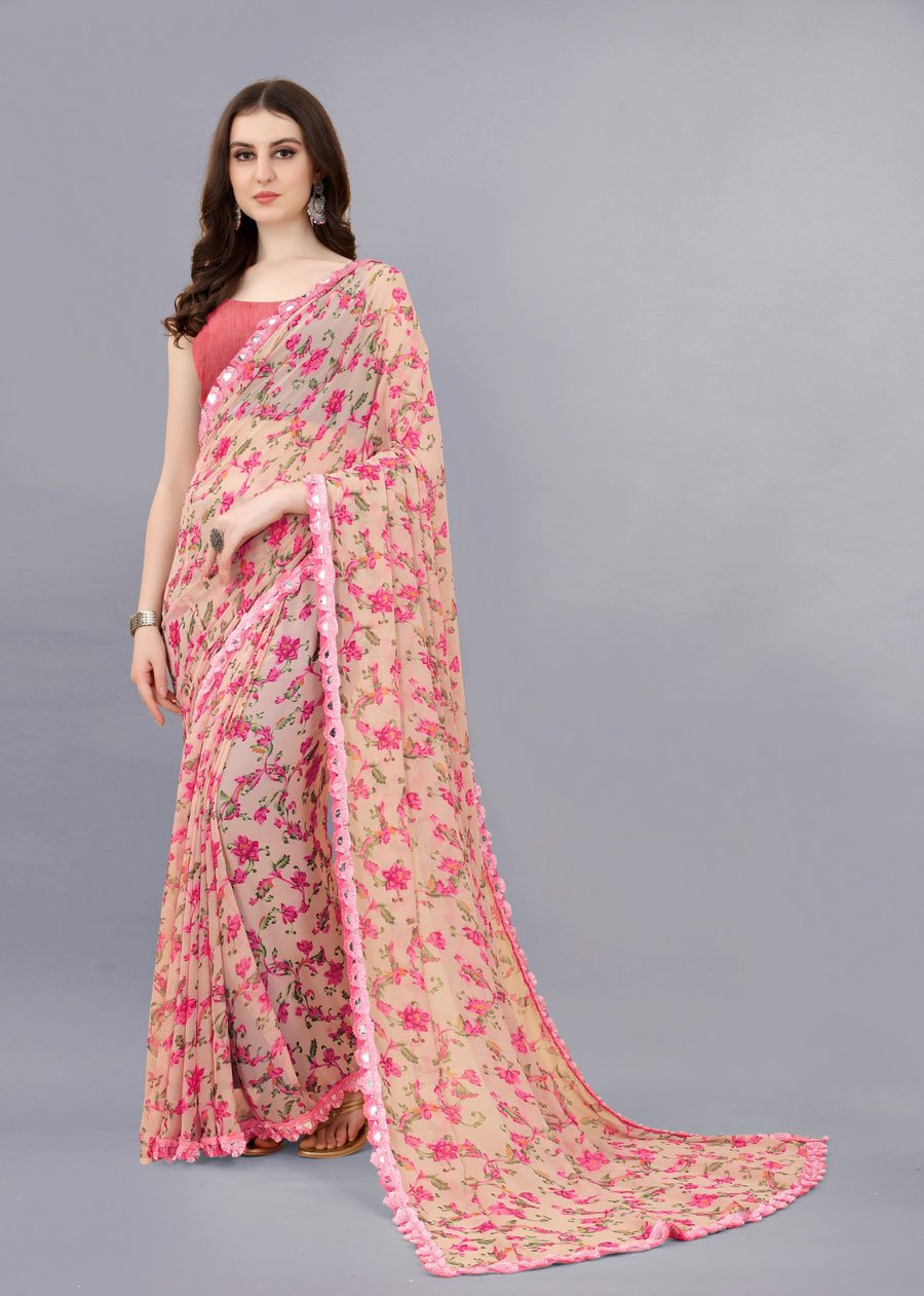 TRENDING GEORGETTE PRINTED SAREE WITH UNSTITCHED BLOUSE PINK
