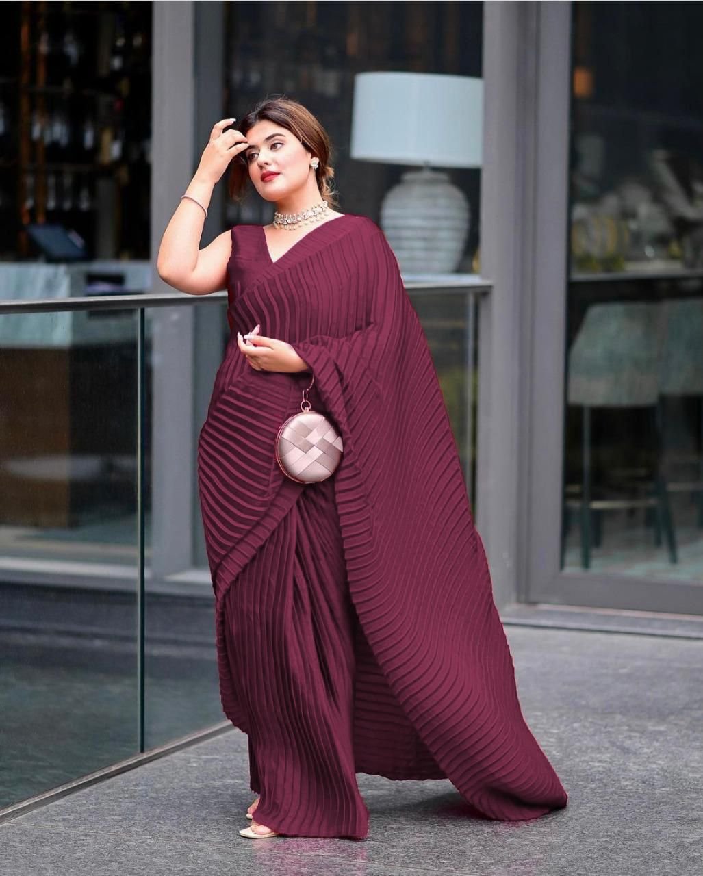 PARTY WEAR LOOK FASHIONABLE & STANDARD STUNNING LOOKING SAREE WINE