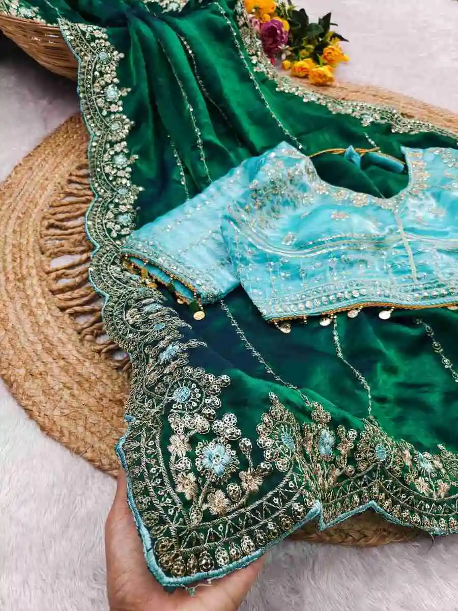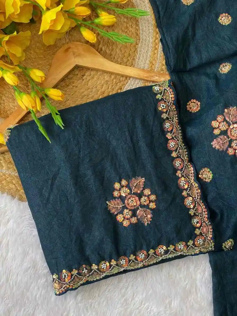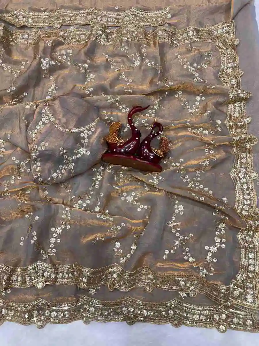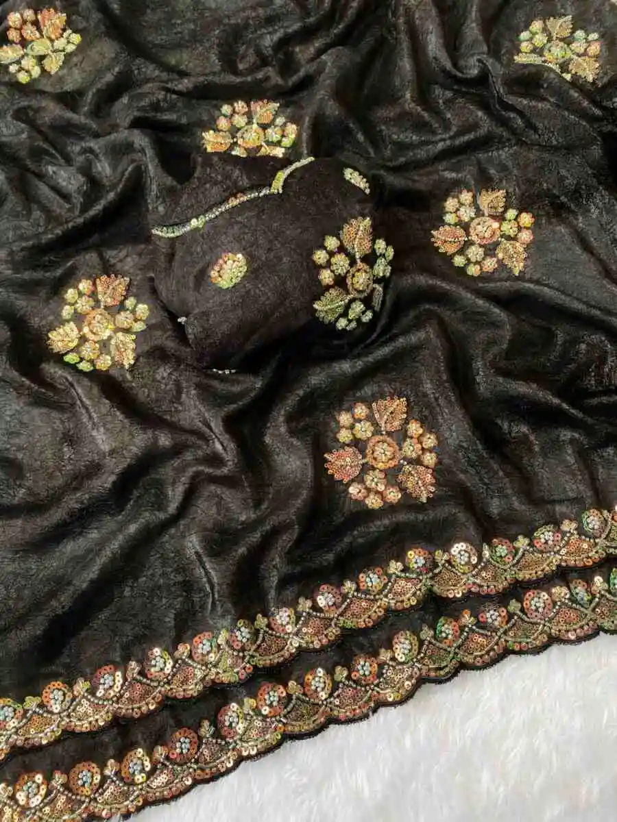 TRENDING SPACE SILK SEQUENCE EMBROIDERY WORK SAREE WITH UNSTITCHED BLOUSE MEHNDI