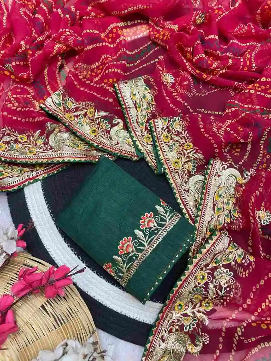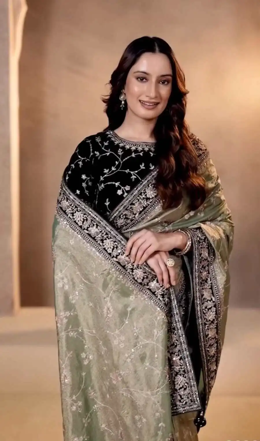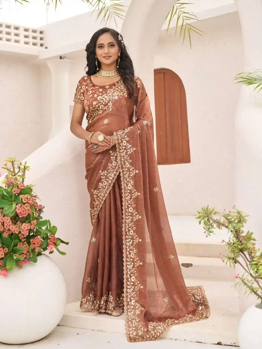 TRENDING SPACE SILK SEQUENCE EMBROIDERY WORK SAREE WITH UNSTITCHED BLOUSE MEHNDI