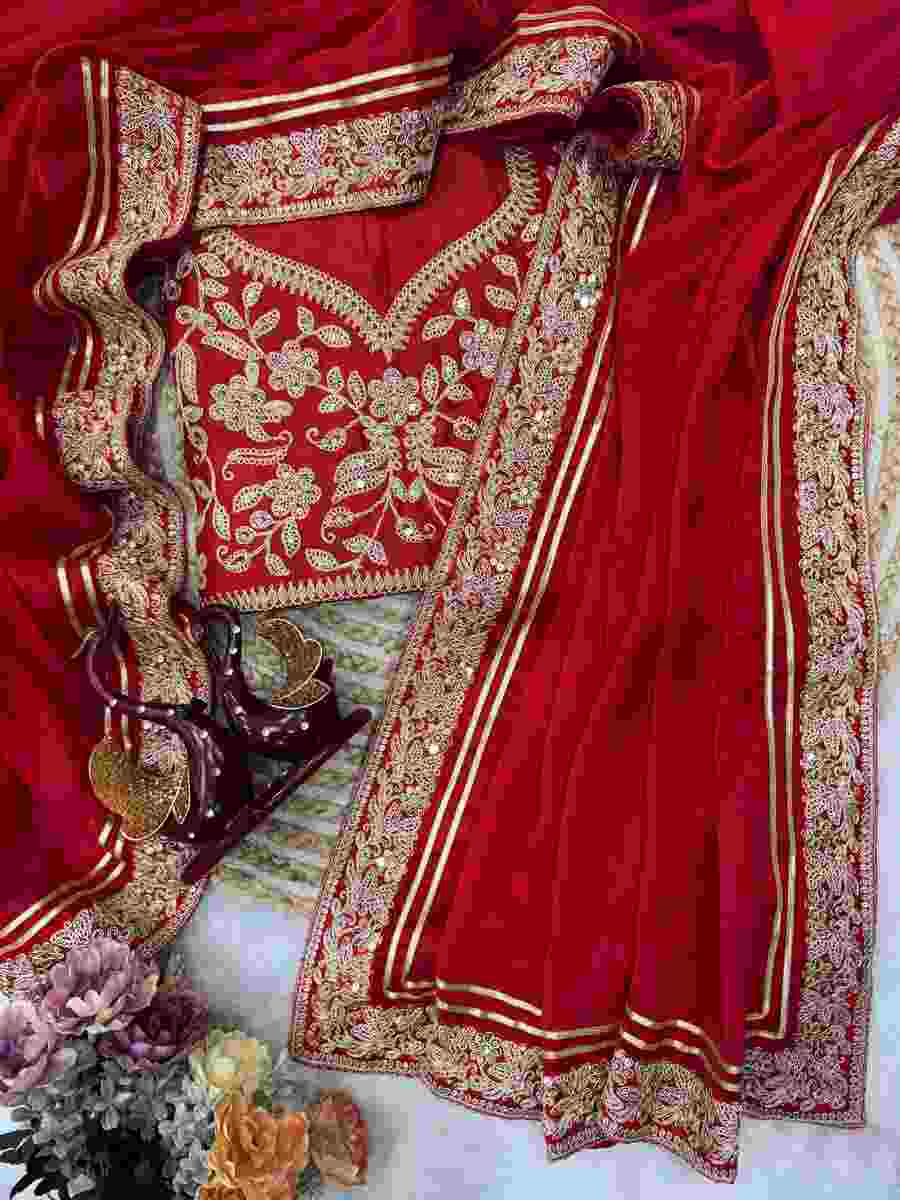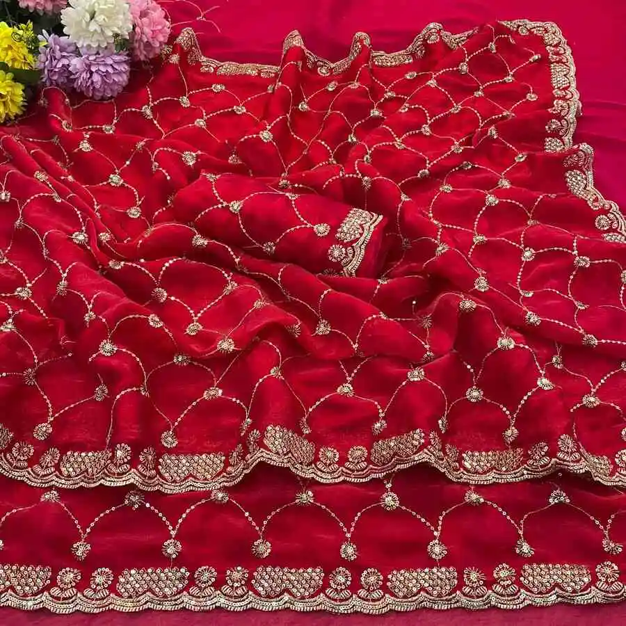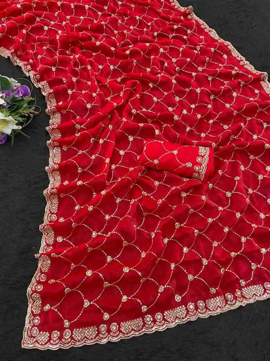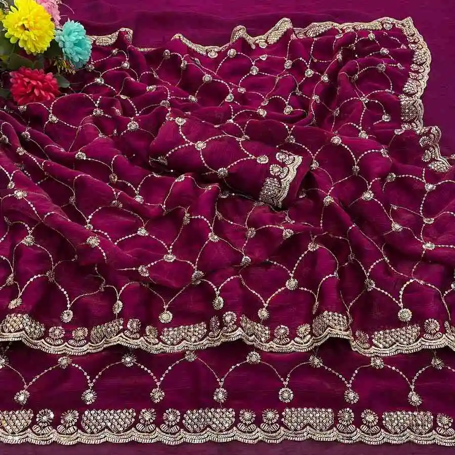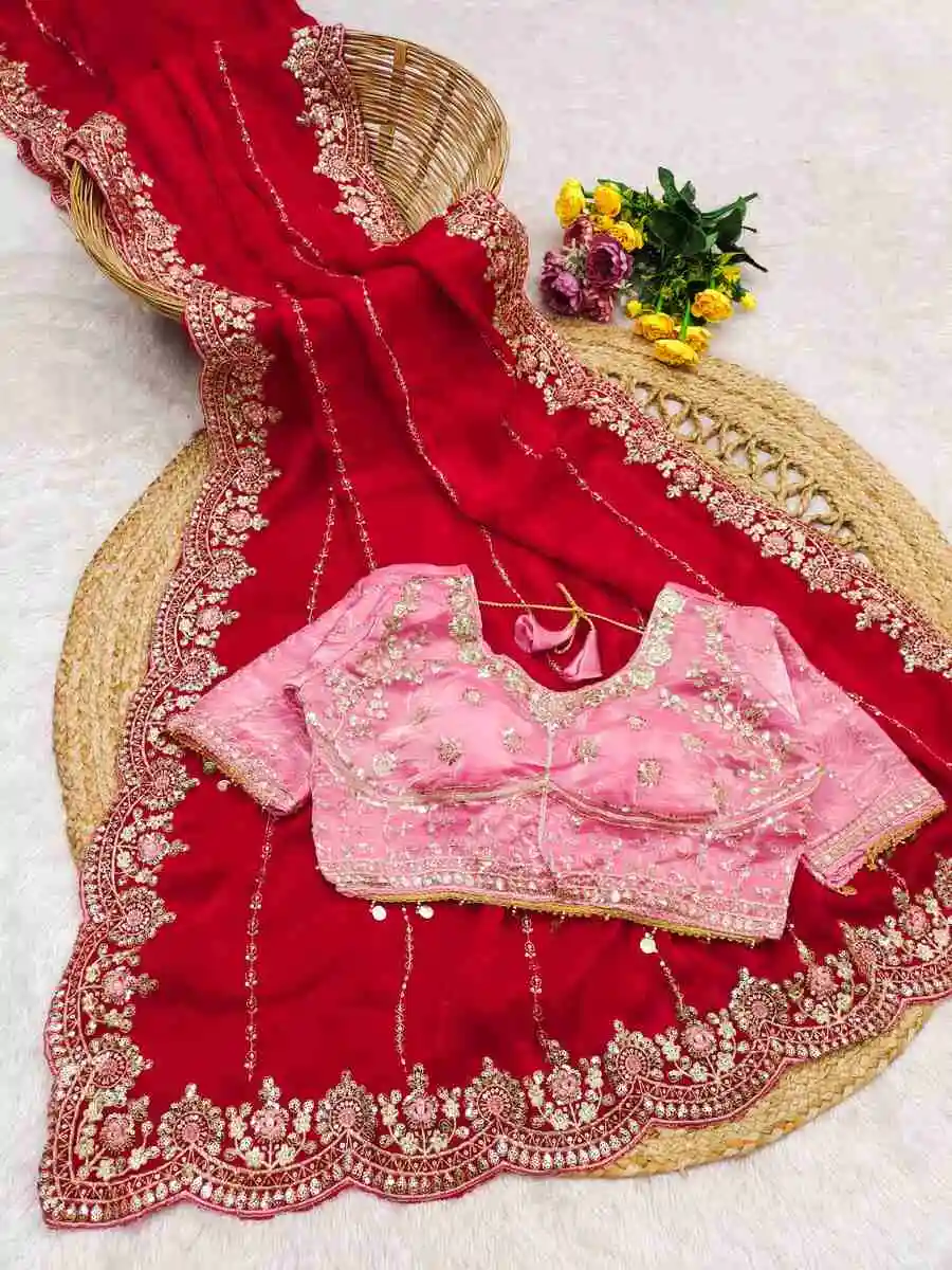 SAREE : FABRIC : SOFT SPACE SILK WORK : SEQUENCE EMBROIDERY WORK LENGTH : 5.5 METER BLOUSE : FABRIC : SPACE SILK WORK : SEQUENCE EMBROIDERY WORK LENGTH : 0.80 METER SAREE + UNSTITCHED BLOUSE