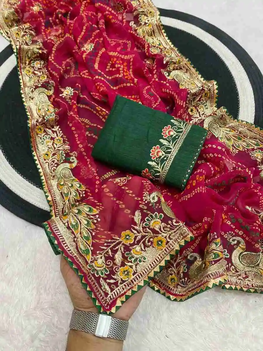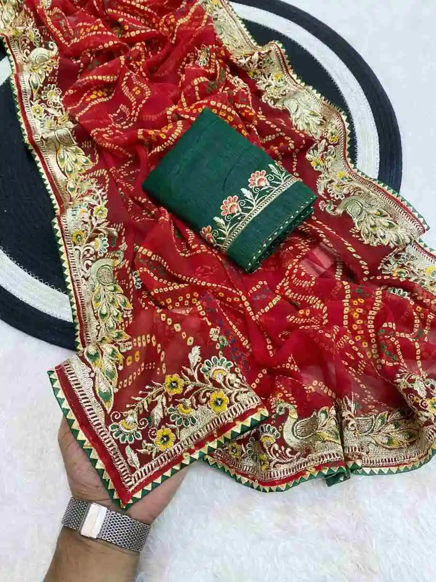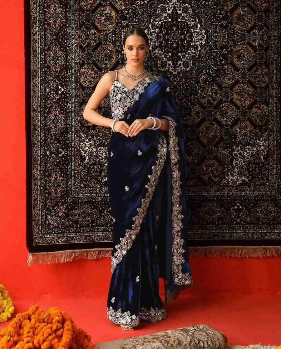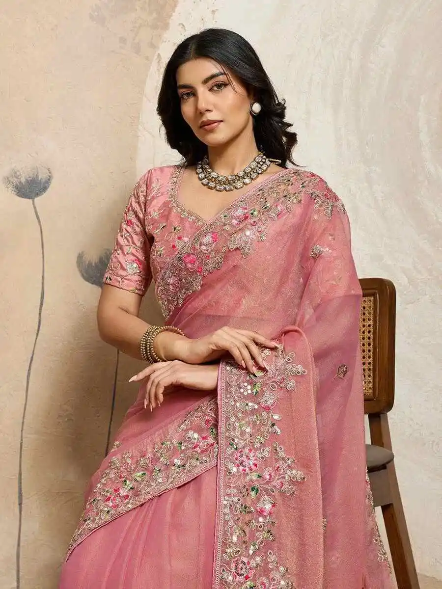 SAREE : FABRIC : SOFT SPACE SILK WORK : SEQUENCE EMBROIDERY WORK LENGTH : 5.5 METER BLOUSE : FABRIC : SPACE SILK WORK : SEQUENCE EMBROIDERY WORK LENGTH : 0.80 METER SAREE + UNSTITCHED BLOUSE