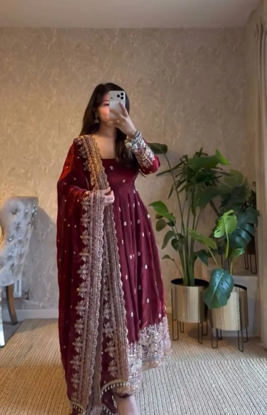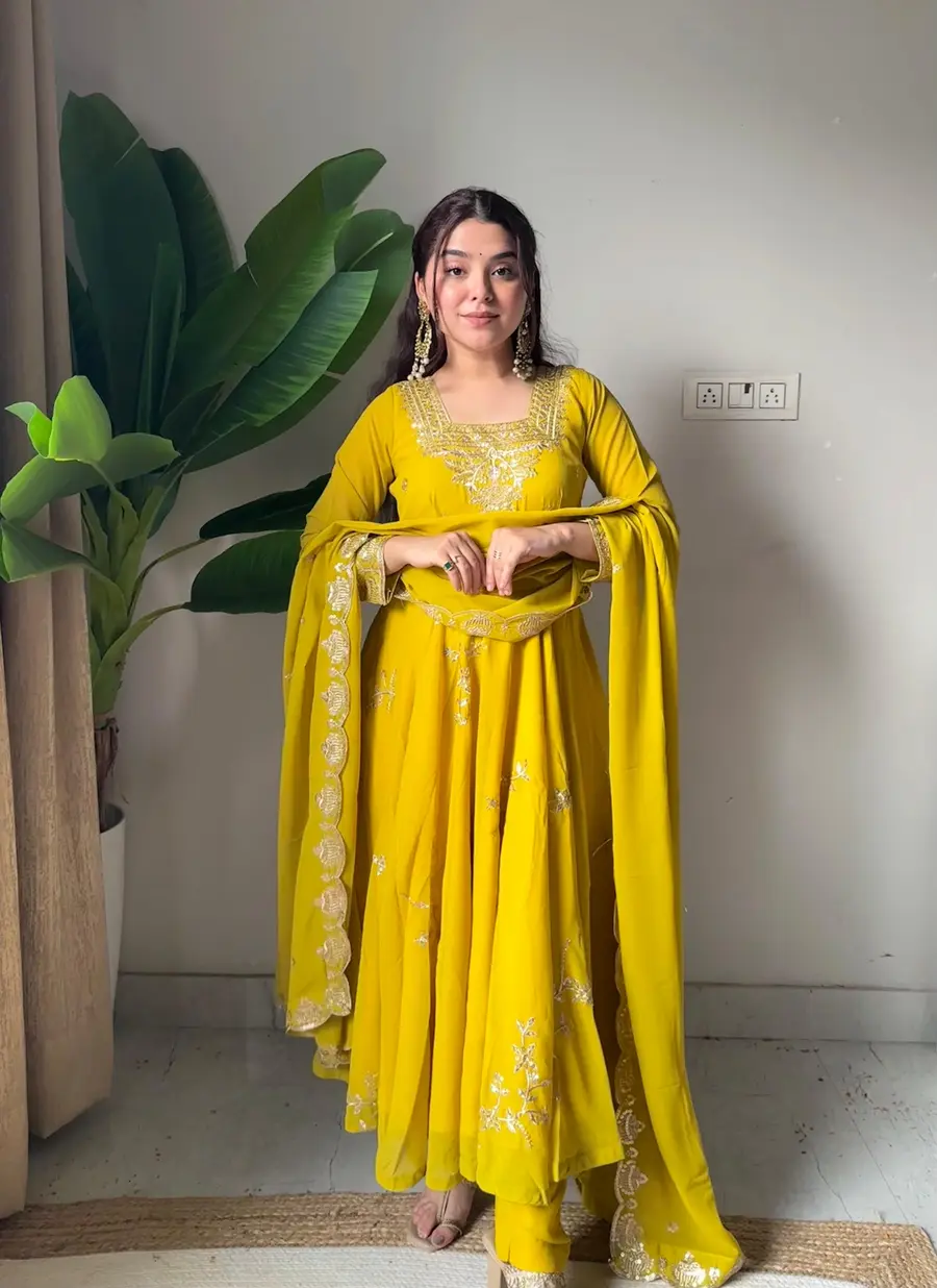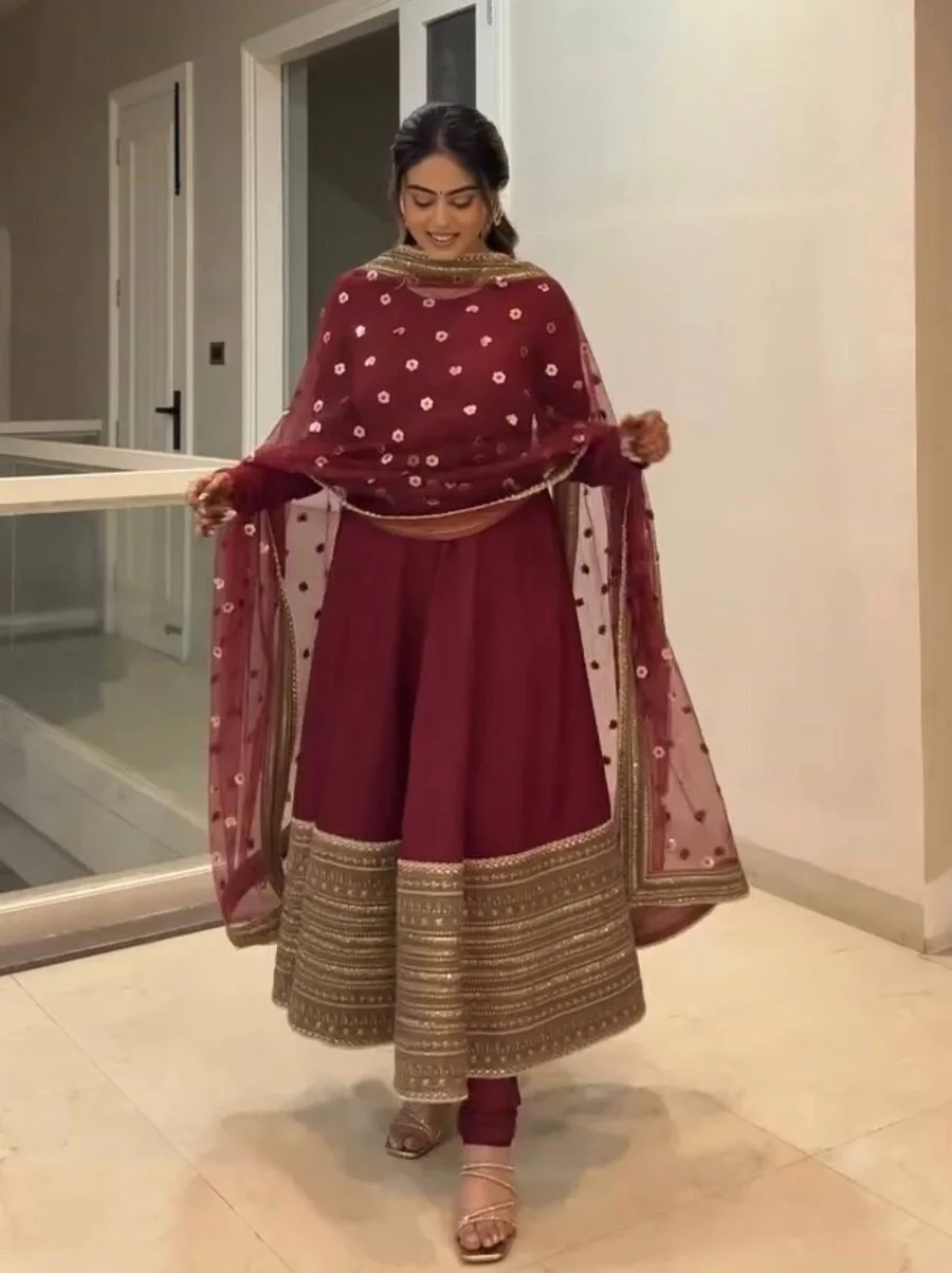 GOWN FABRIC : HEAVY NC VICHITRA SILK ( FULLY SLEEVS ) INNER : MICRO COTTON SIZE : M(38),L(40),XL(42),2XL(44)WITH CUPS LENGTH : 47-48” INCHES FLAIR : 3.50 METER PALAZZO FABRIC : HEAVY NC VICHITRA LENGTH : 40-41” ...