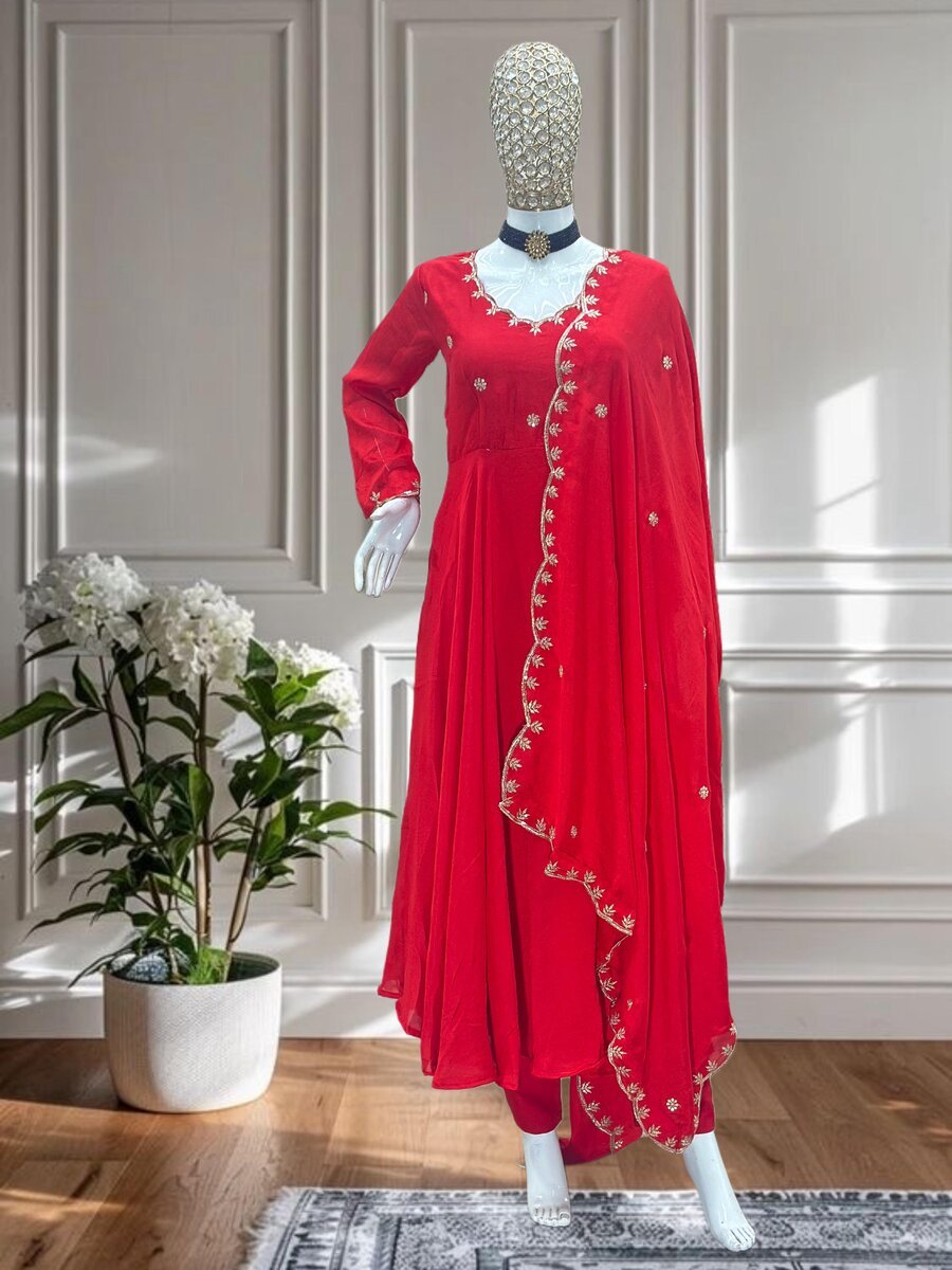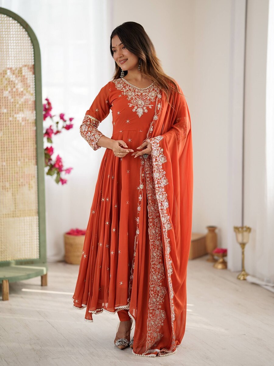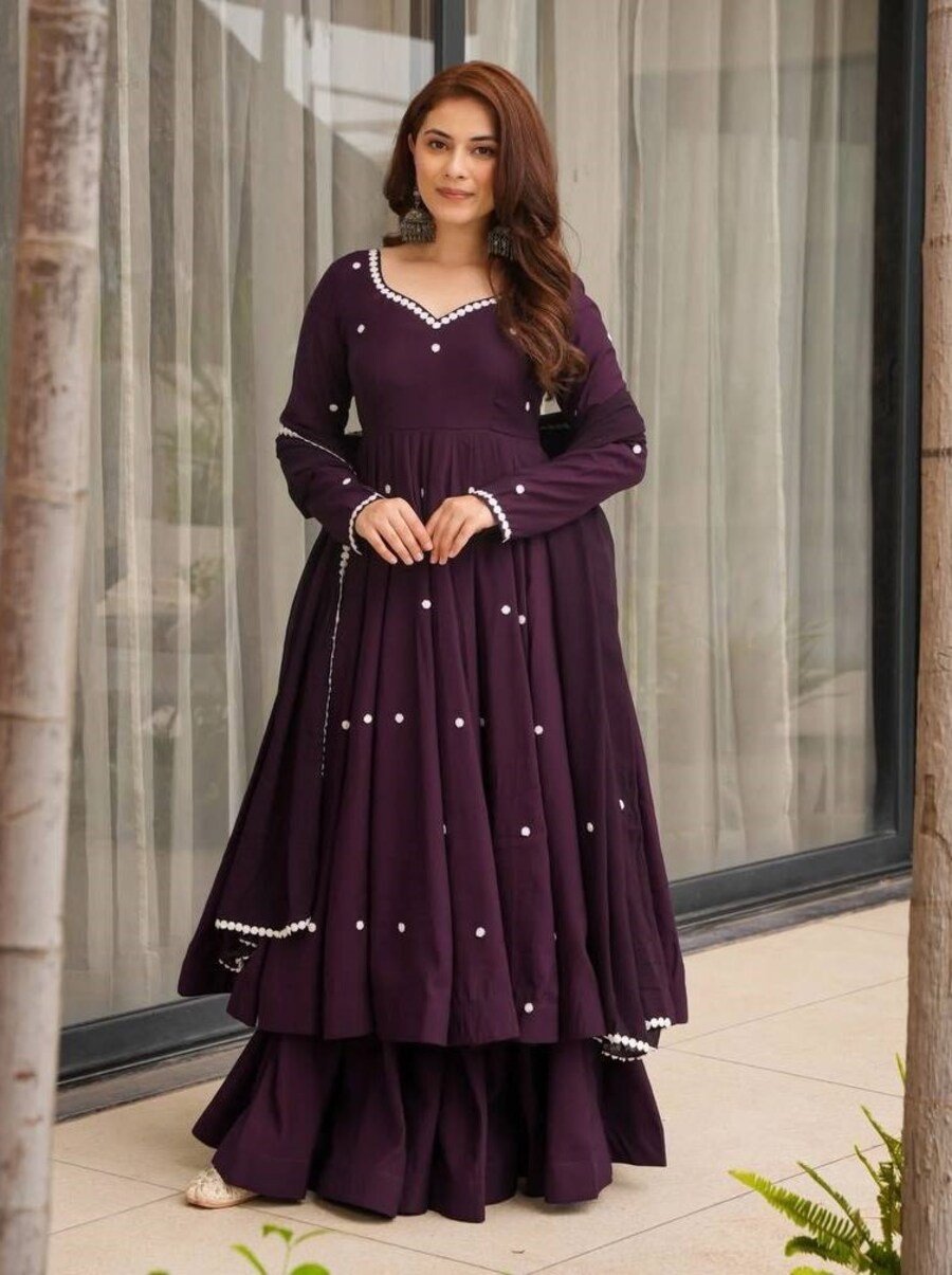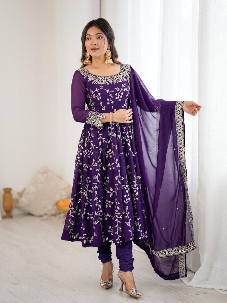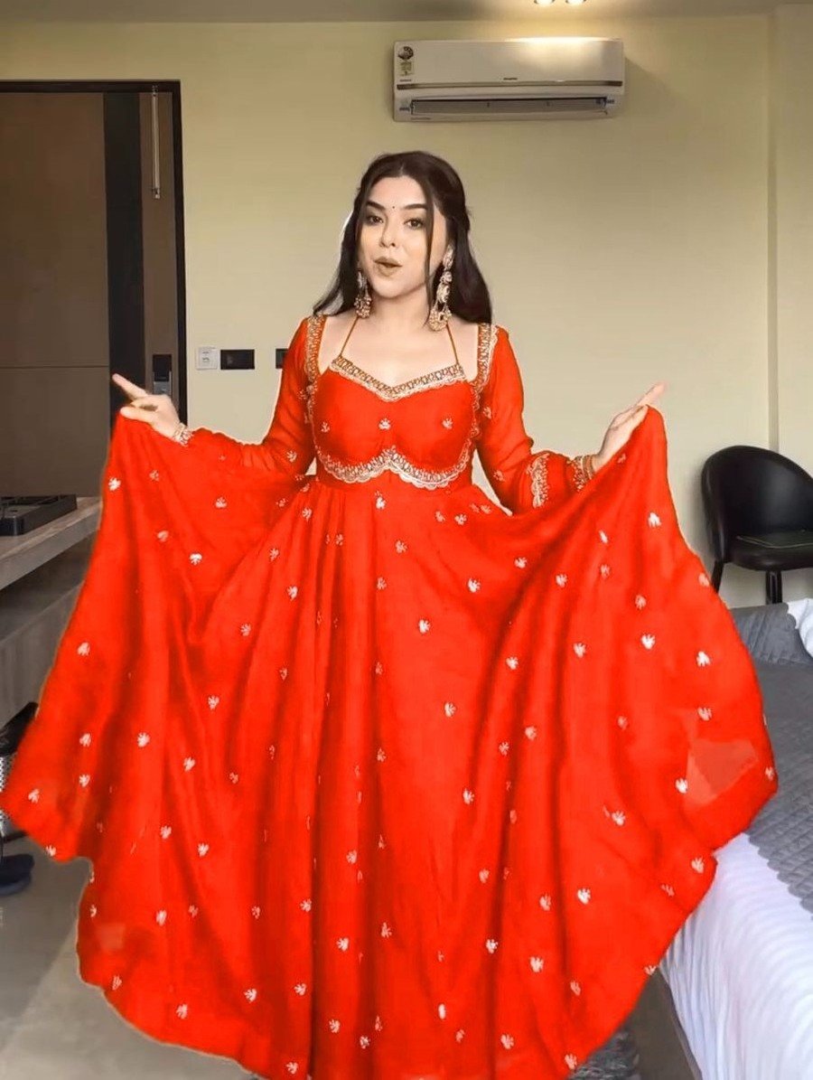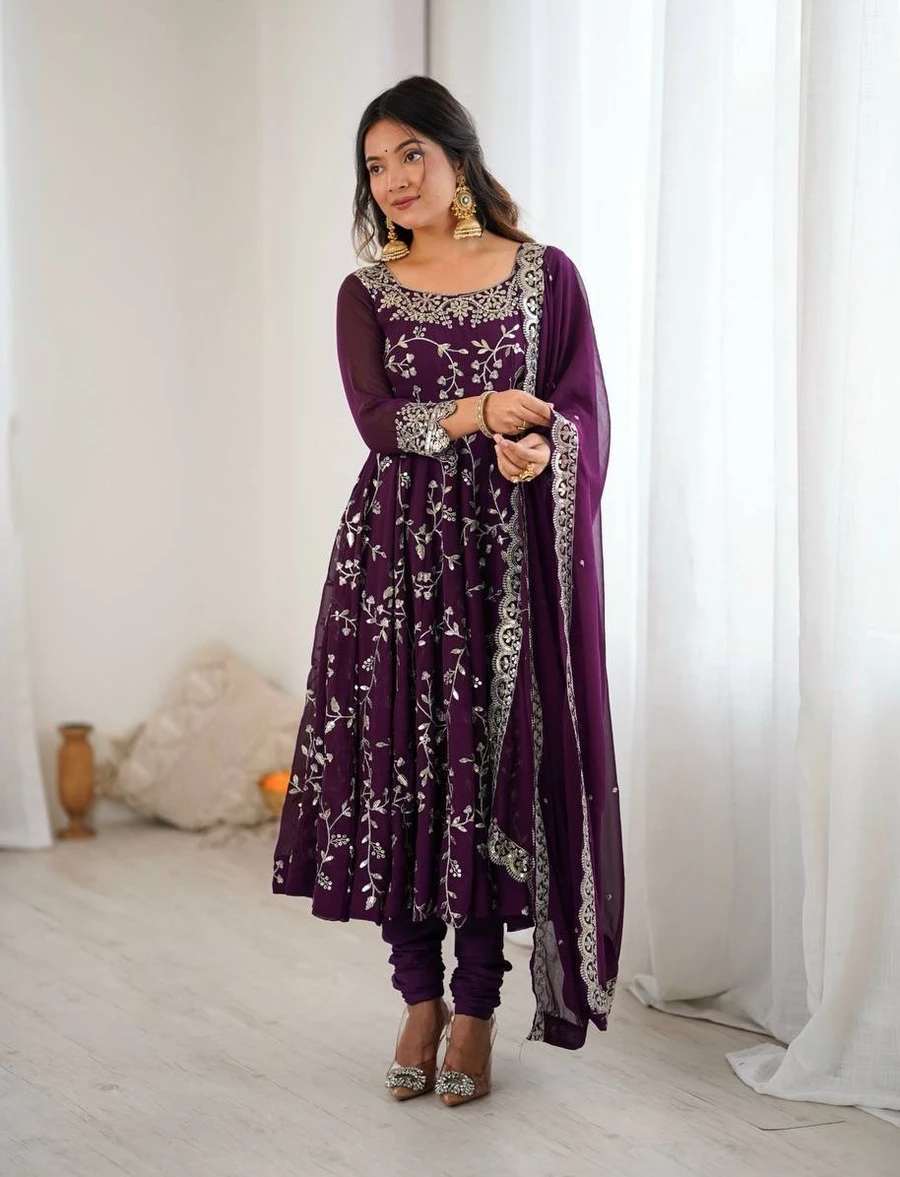 GOWN : FABRIC : HEAVY FAUX GEORGETTE WORK : EMBROIDERY WORK WITH FANCY FULL SLEEVE INNER : HEAVY MICRO COTTON LENGTH : 48-49 INCH SIZE : M(38), L(40), XL(42), XXL(44) (FULLY STITCHED READY TO WEAR) BOTTOM ...