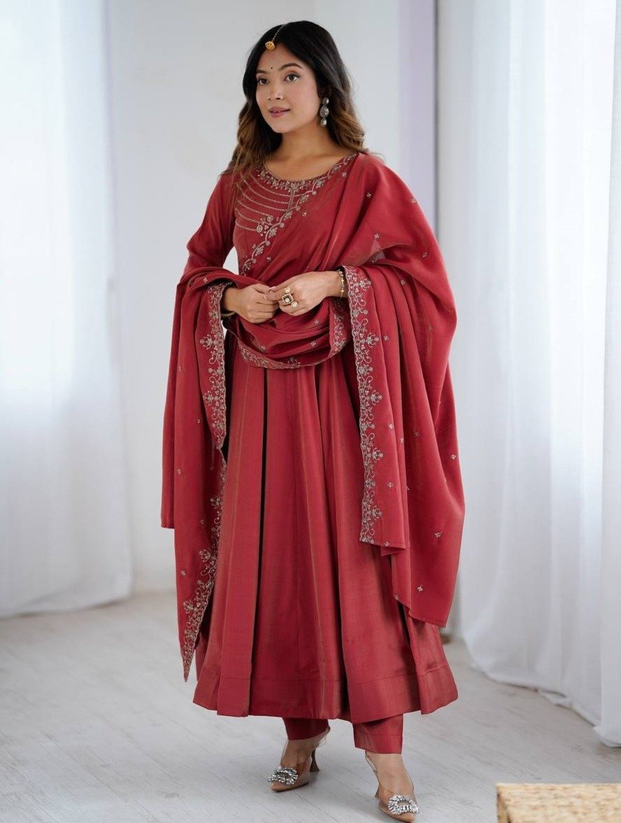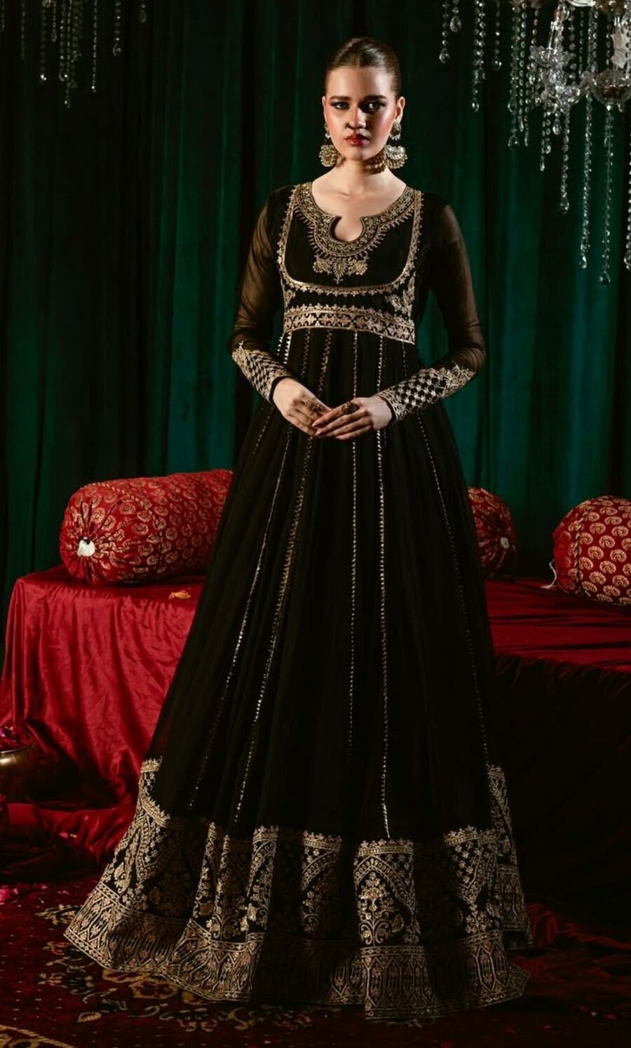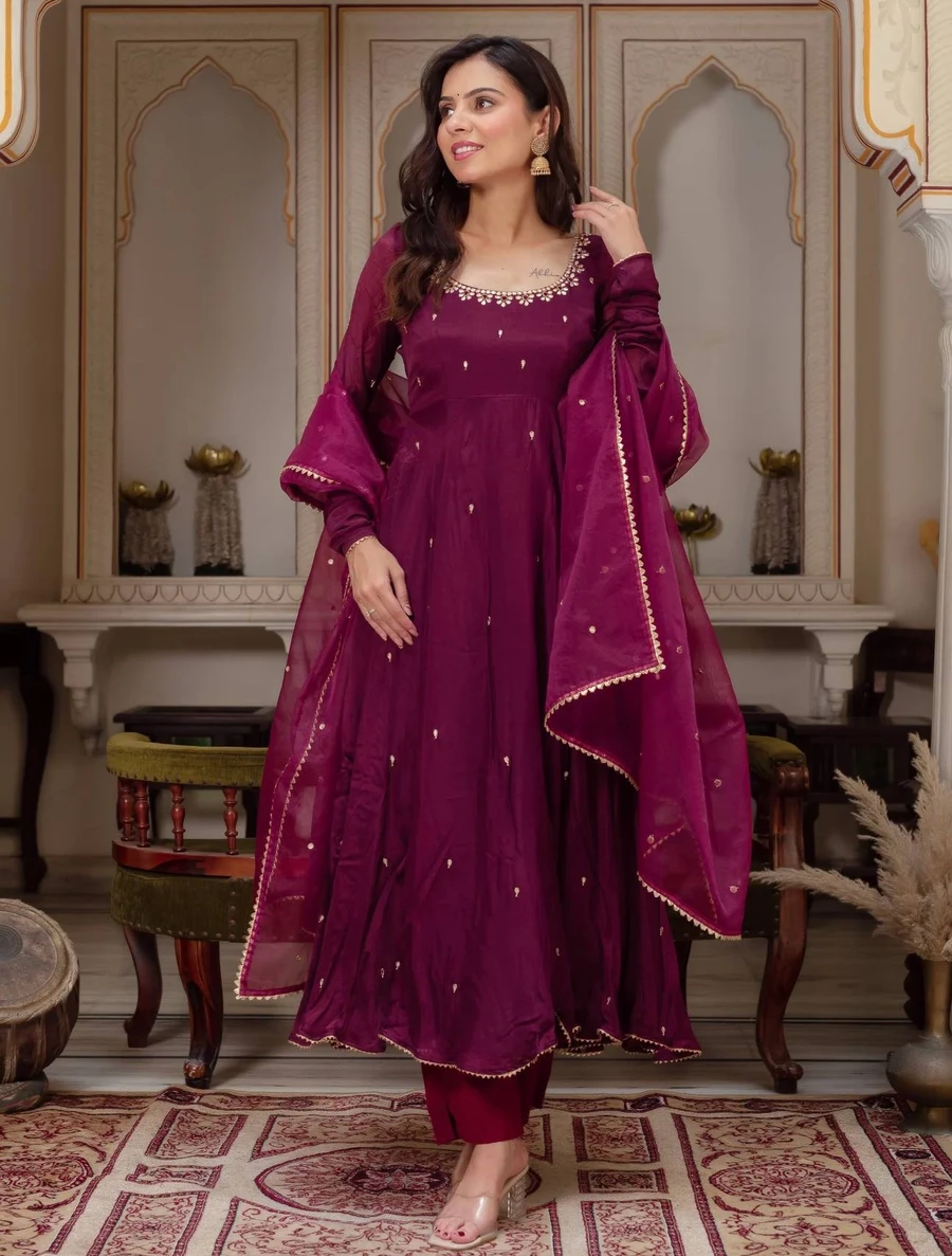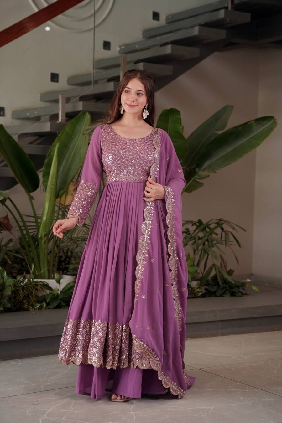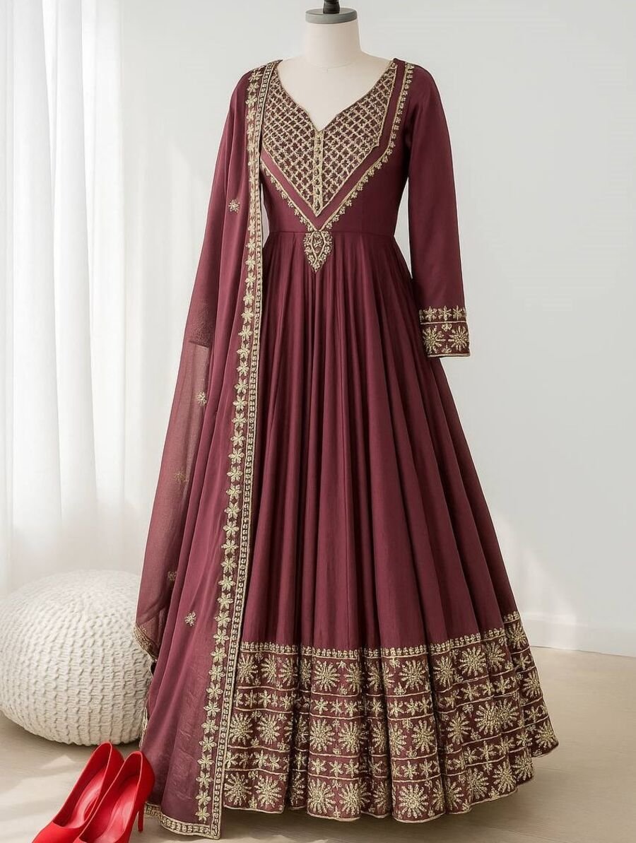 GOWN : FABRIC : HEAVY FAUX GEORGETTE WORK : EMBROIDERY WORK WITH FANCY FULL SLEEVE INNER : HEAVY MICRO COTTON LENGTH : 48-49 INCH SIZE : M(38), L(40), XL(42), XXL(44) (FULLY STITCHED READY TO WEAR) BOTTOM ...