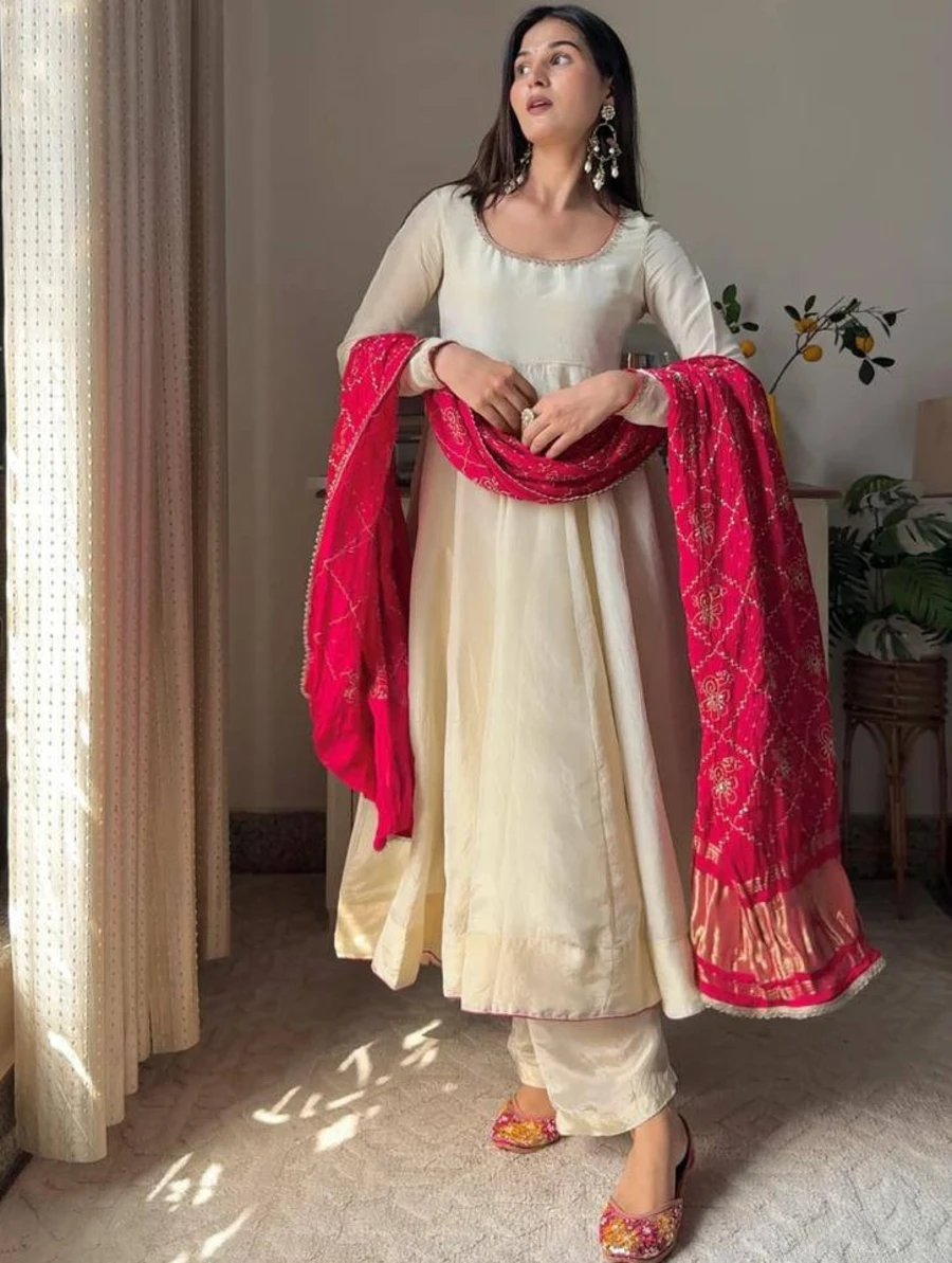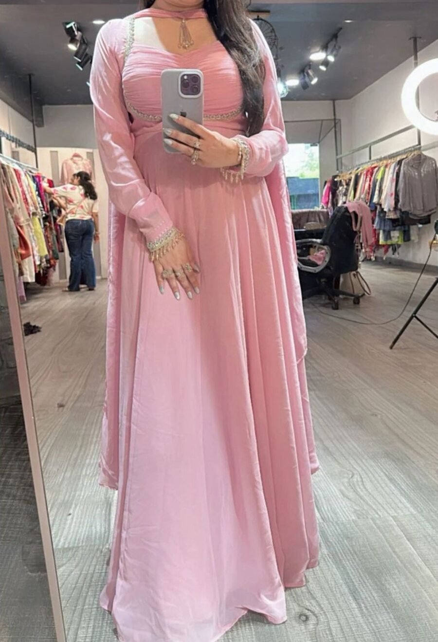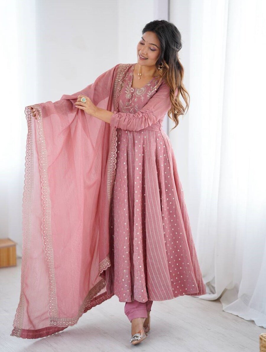 GEORGETTE EMBROIDERY WORK GOWN BOTTOM WITH DUPATTA PINK