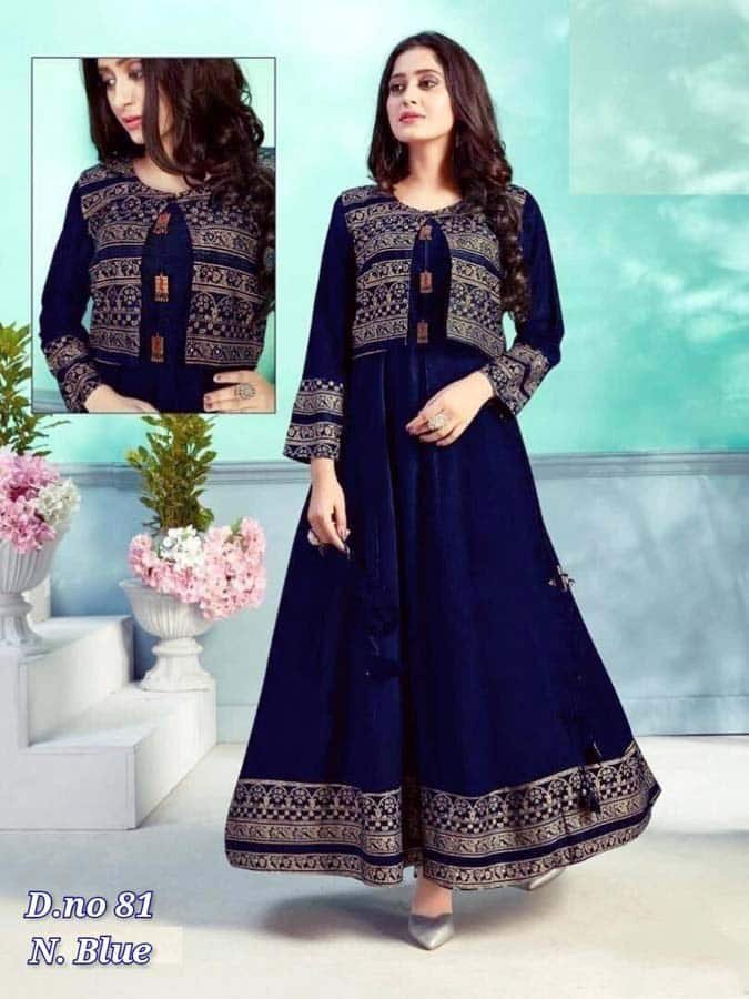 FABRIC DETAILS :- GOWN :- 14 KG. RAYON WITH ATTACHED JACKET WITH BEAUTIFUL GOLD PRINT GOWN LENGTH:- 52” INCH TYPE - FULL STITCHED SIZE - M, L, XL, XXL