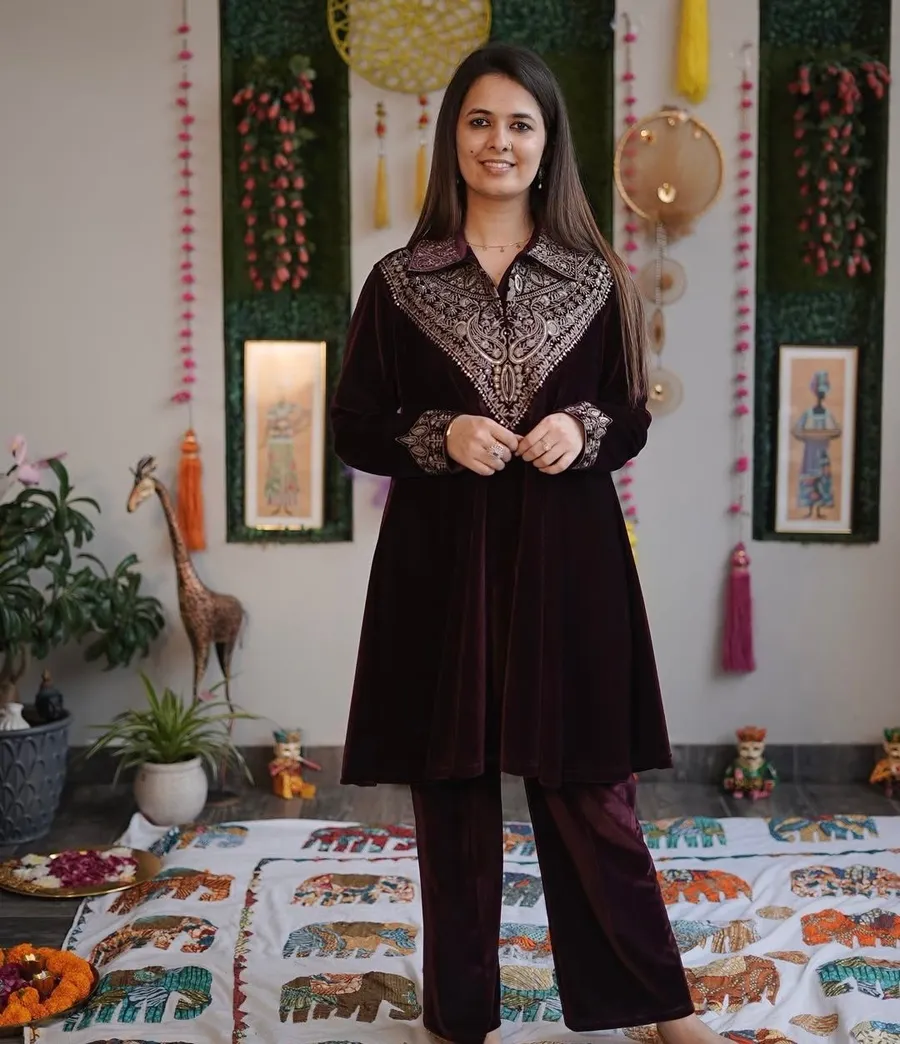 TOP : FABRIC : VELVET WORK : SEQUENCE EMBROIDERY WORK INNER : MICRO HEIGHT : 34”INCH SIZE : M(38), L(40), XL(42), XXL(44) PALAZZO : FABRIC : VELVET WORK : SEQUENCE EMBROIDERY WORK HEIGHT : 40”INCH SIZE ...