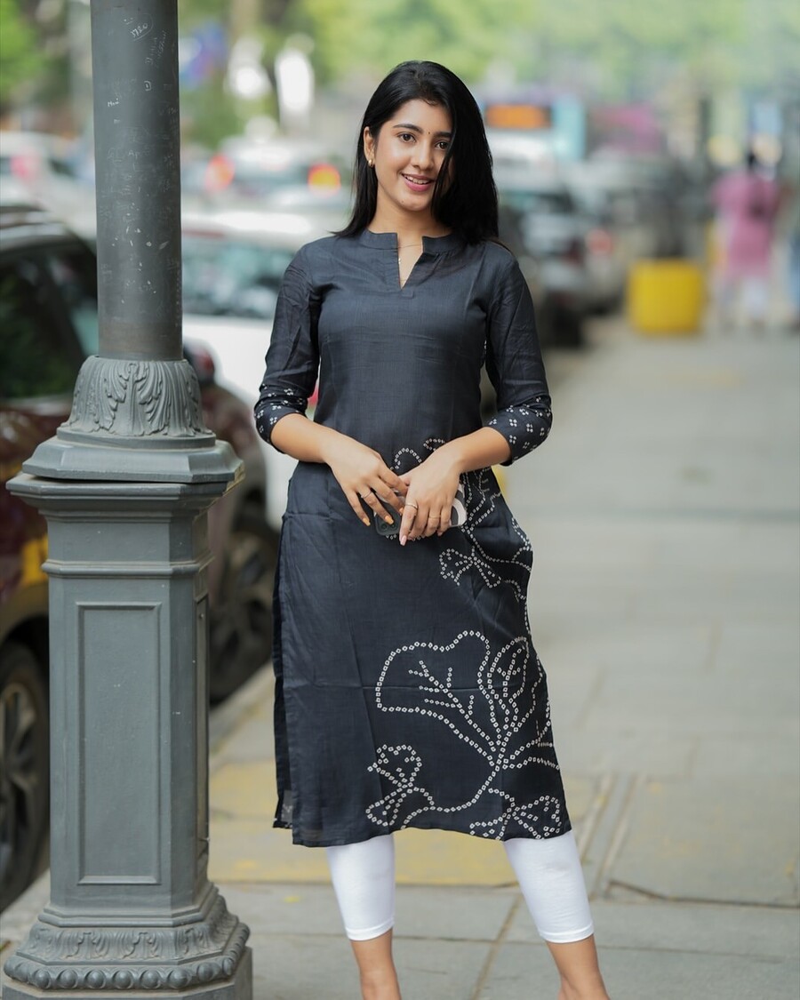 NEW ARRIVAL SLUB RAYON EMBROIDERY WORK ONLY KURTI BLACK