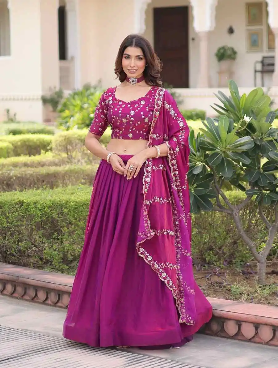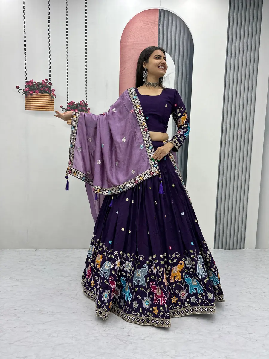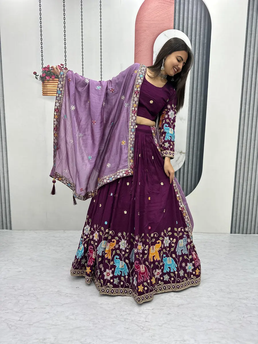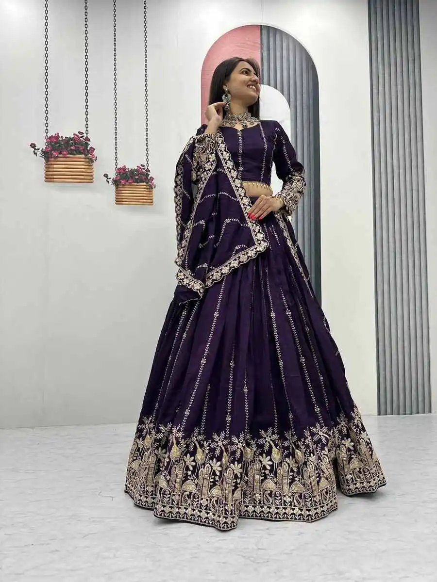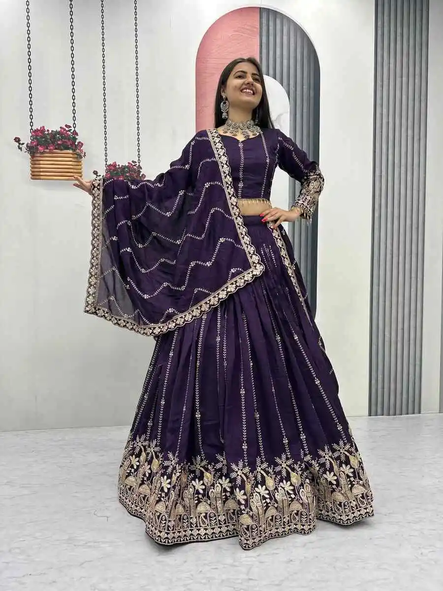 CHOLI : FABRIC : PURE VICHITRA WORK : HEAVY EMBROIDERY SEQUENCE & THREAD WORK INNER : MICRO COTTON SIZE : M UP TO L MARGIN XL UP TO 2XL MARGIN (FULLY STITCHED) LEHENGA : FABRIC : ...