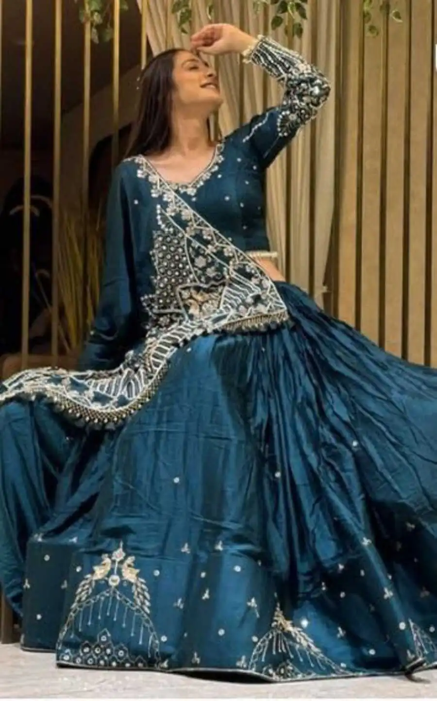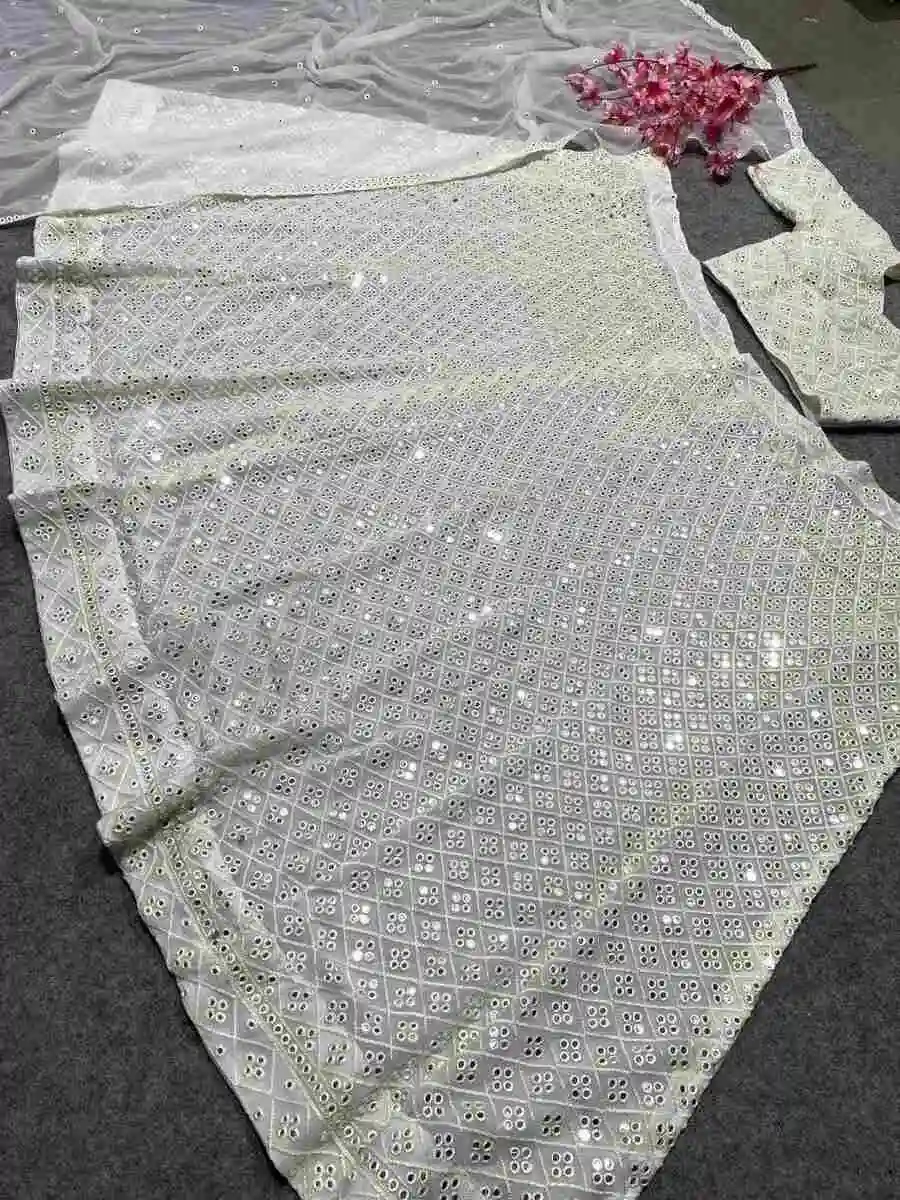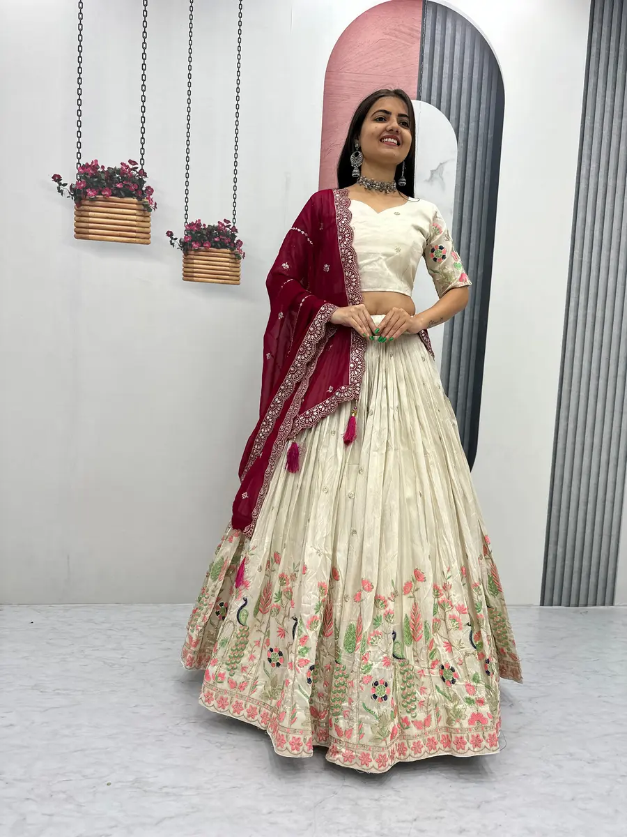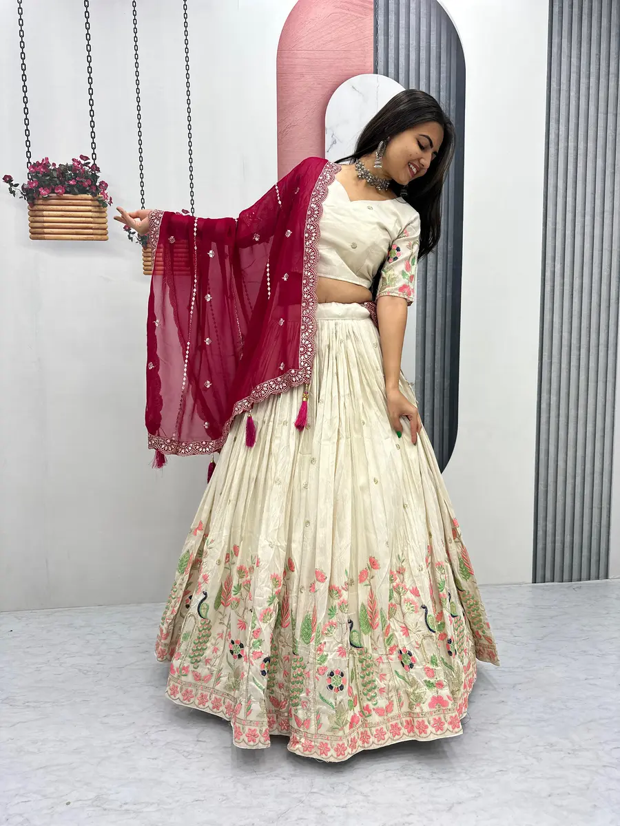 CHOLI : FABRIC : PURE VICHITRA WORK : HEAVY EMBROIDERY SEQUENCE & THREAD WORK INNER : MICRO COTTON SIZE : M UP TO L MARGIN XL UP TO 2XL MARGIN (FULLY STITCHED) LEHENGA : FABRIC : ...