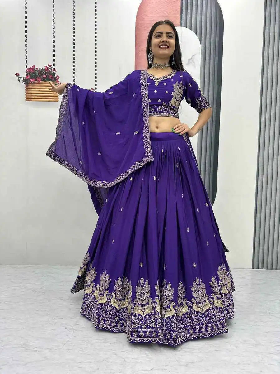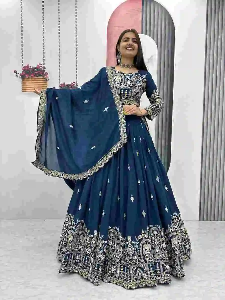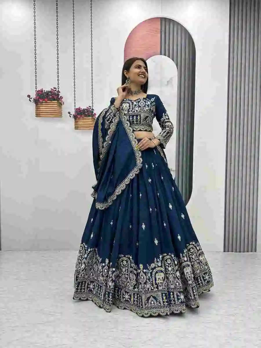 DESIGNER VICHITRA EMBROIDERY SEQUENCE & THREAD WORK LEHENGA CHOLI WITH DUPATTA BLUE