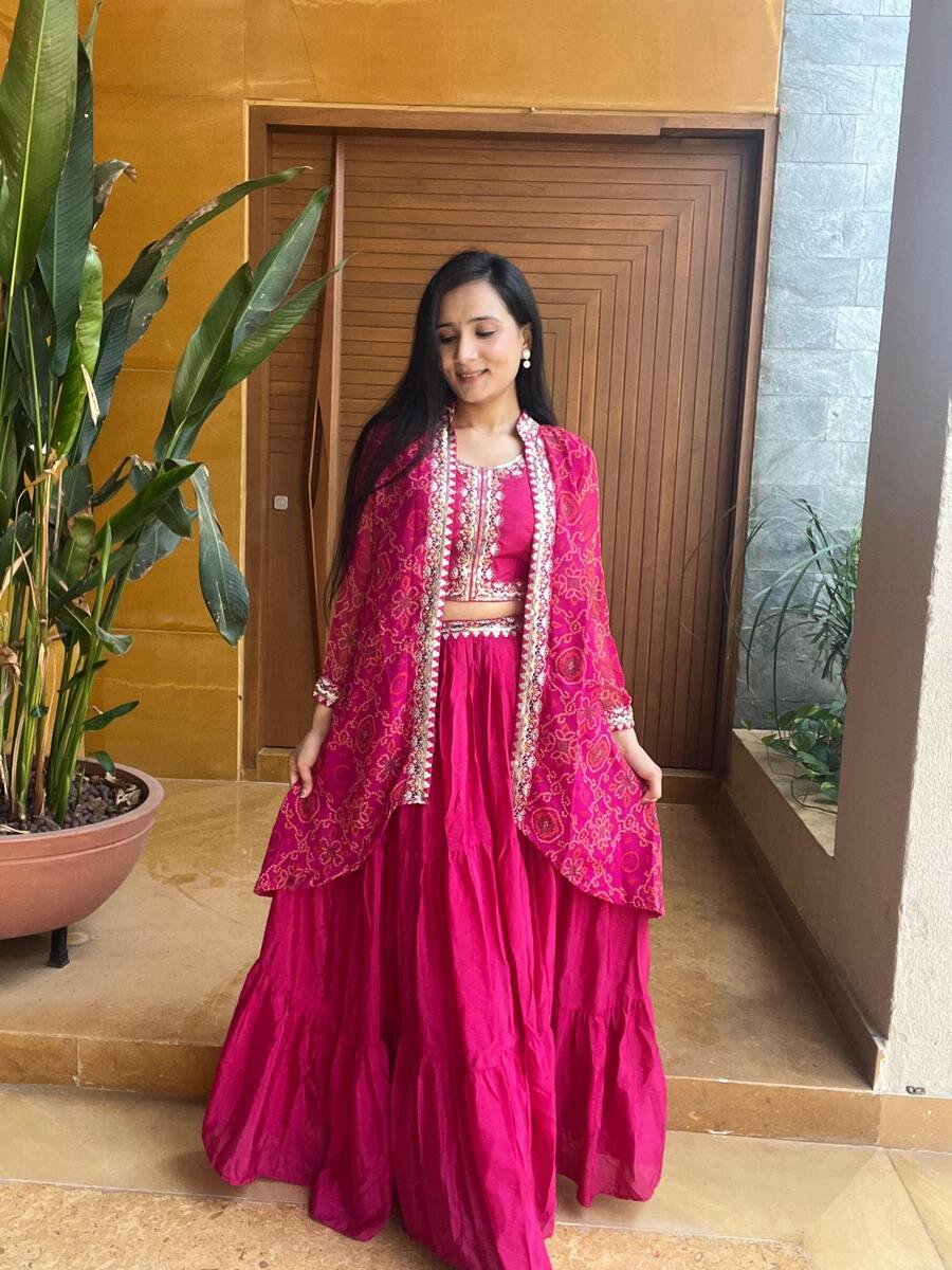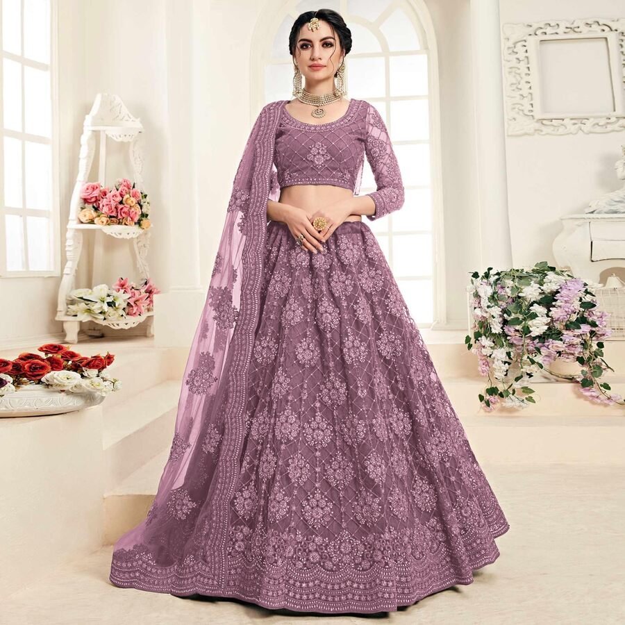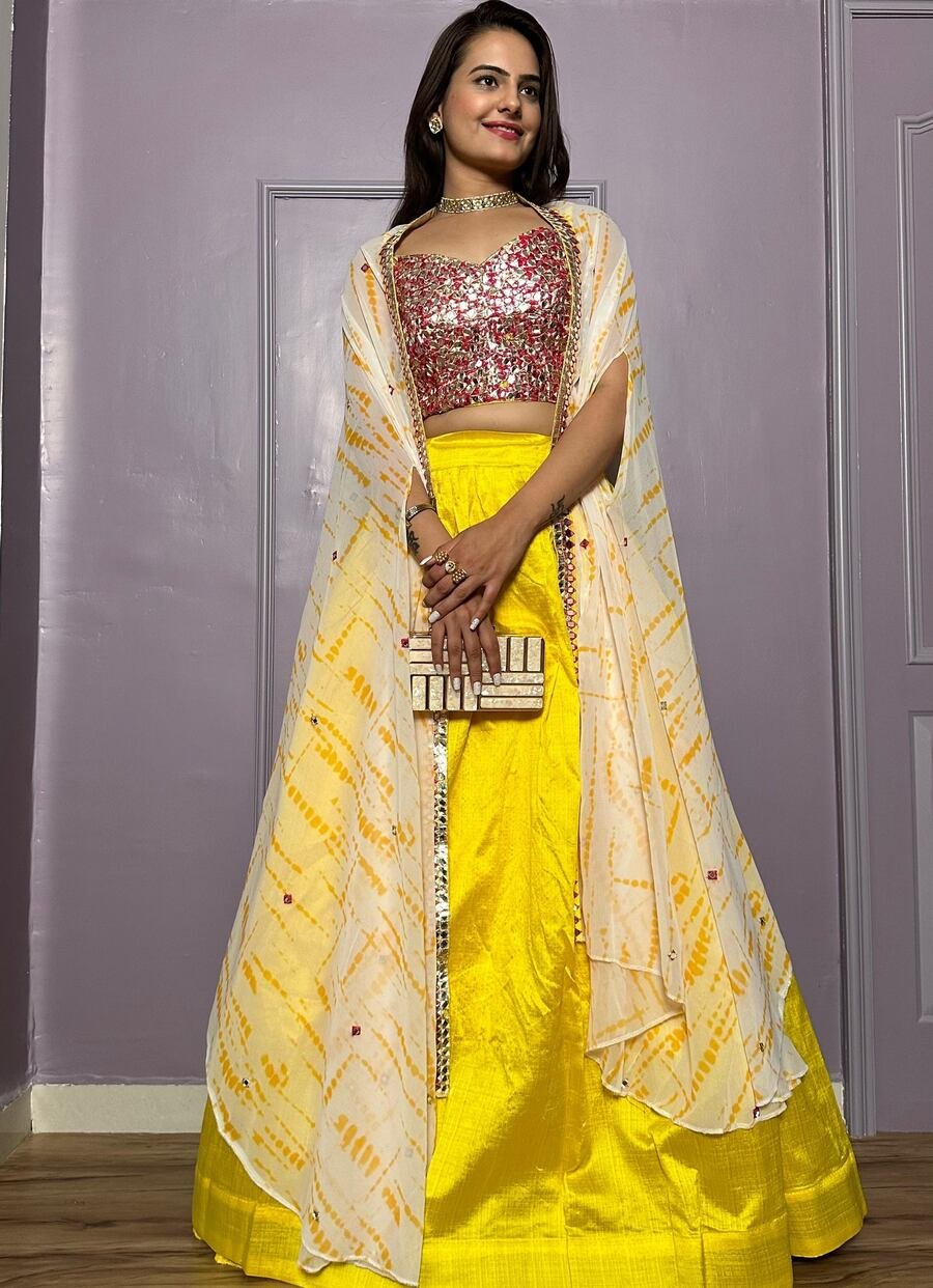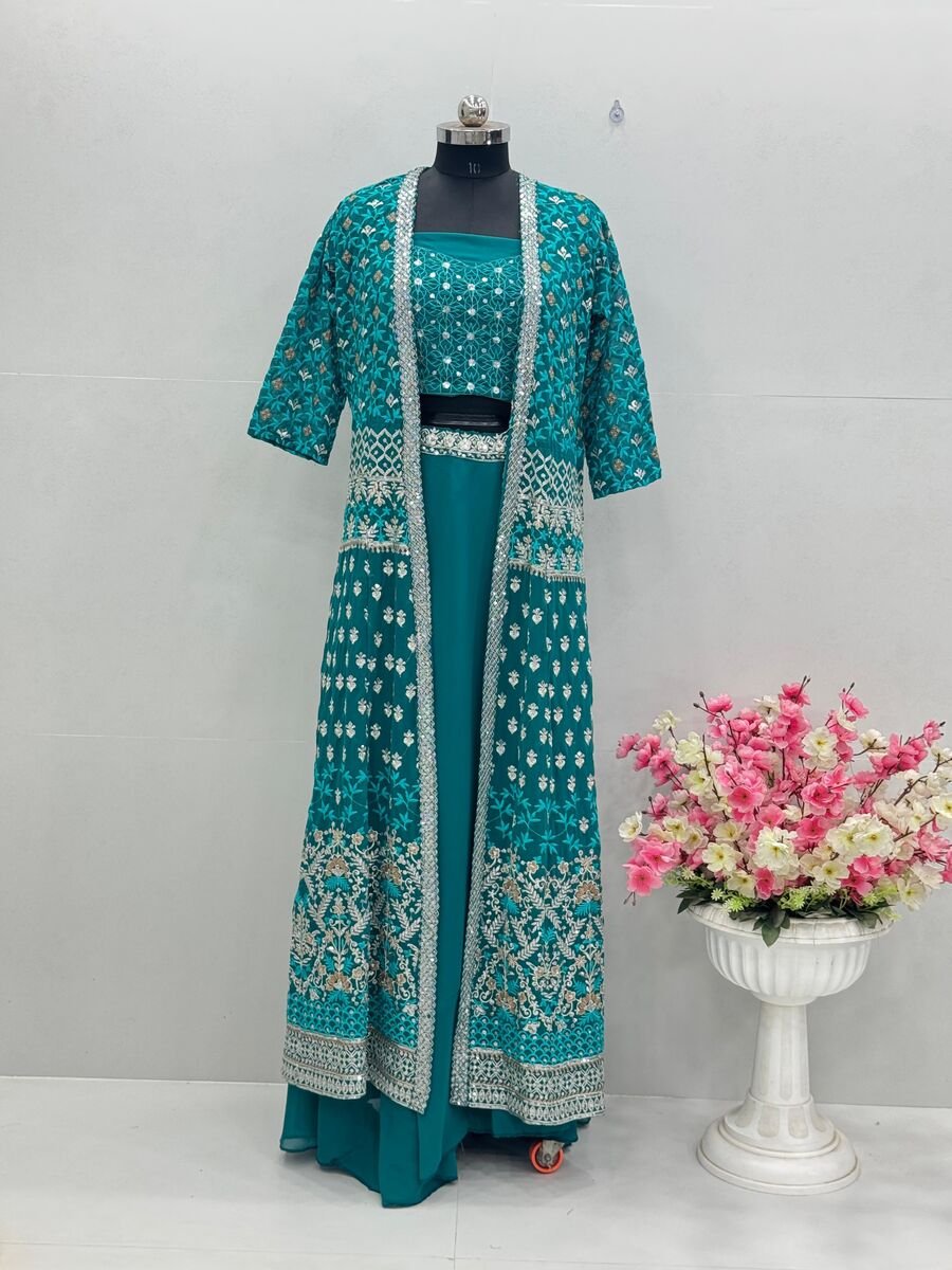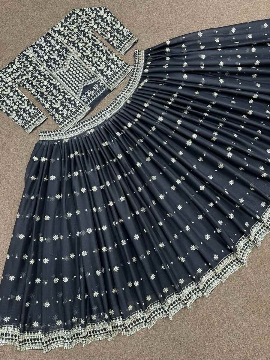 LEHENGA(STITCHED) : FABRIC : HEAVY GEORGETTE WORK : PLAIN WAIST : SUPPORTED UP TO 42 INCH CLOSER : DRAWSTRING WITH HAND MADE TASSELS AND ZIP STITCHING : STITCHED WITH CANVAS WITH CAN CAN LENGTH : 41 ...