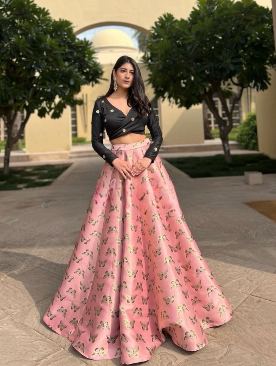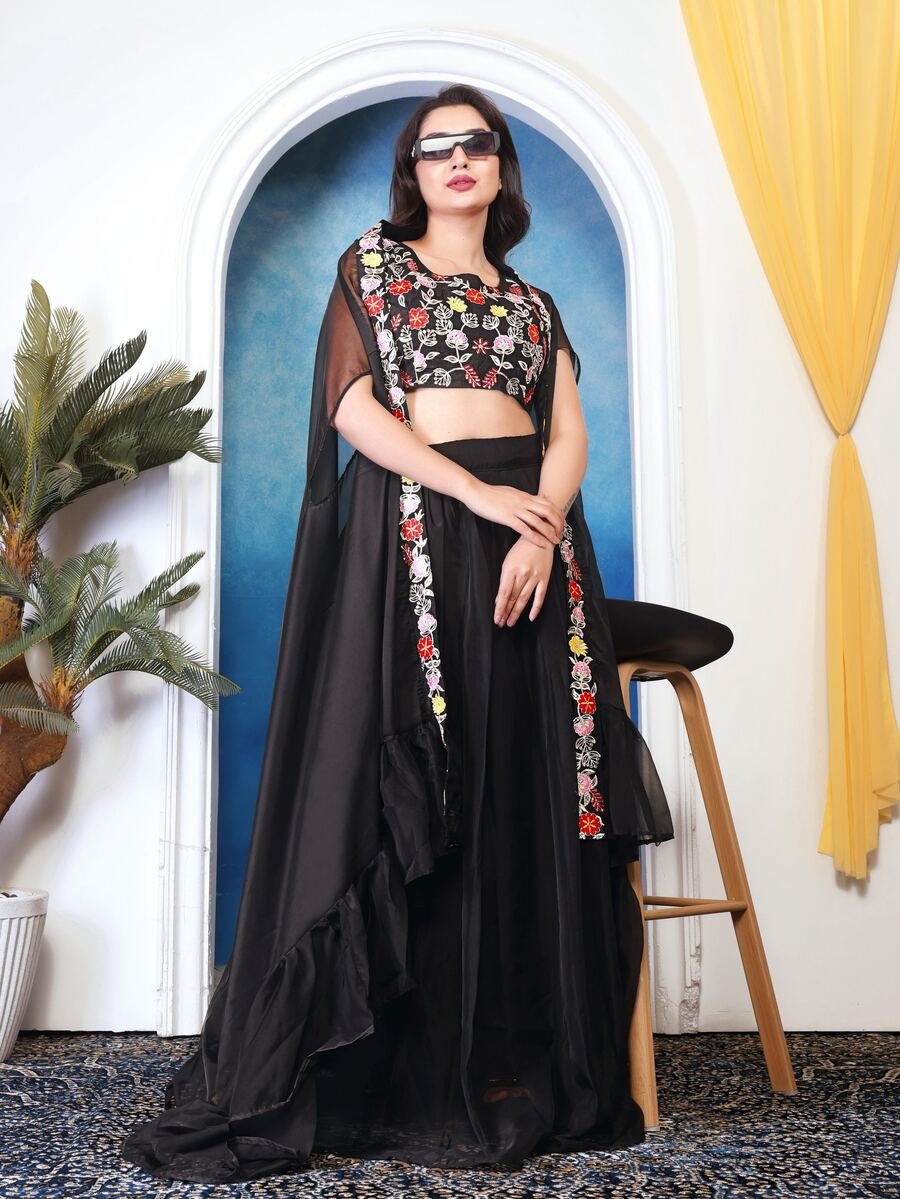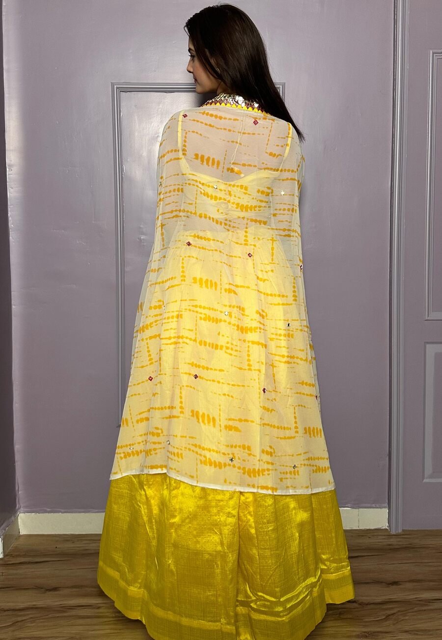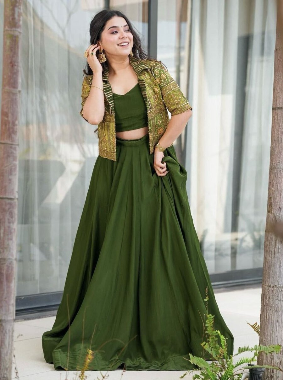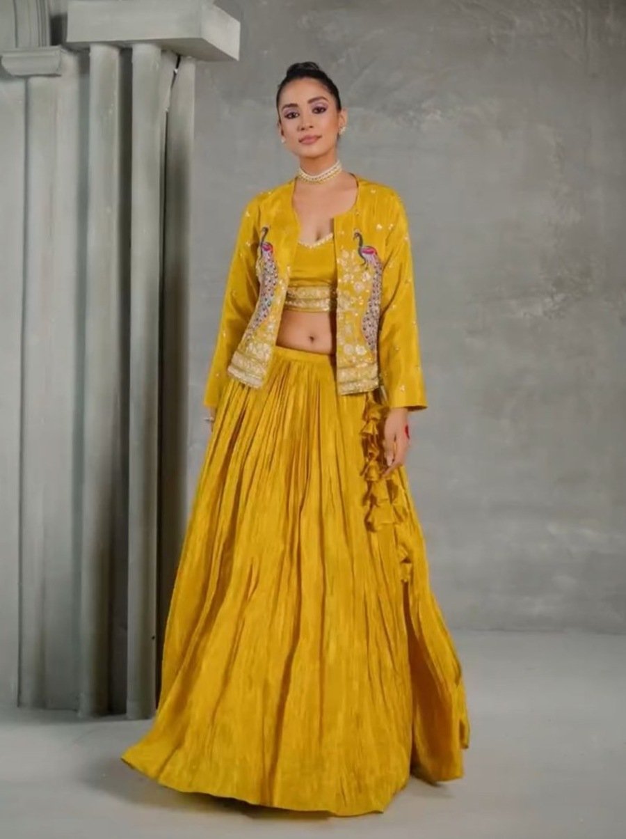 LEHENGA(STITCHED) : FABRIC : HEAVY GEORGETTE WORK : PLAIN WAIST : SUPPORTED UP TO 42 INCH CLOSER : DRAWSTRING WITH HAND MADE TASSELS AND ZIP STITCHING : STITCHED WITH CANVAS WITH CAN CAN LENGTH : 41 ...