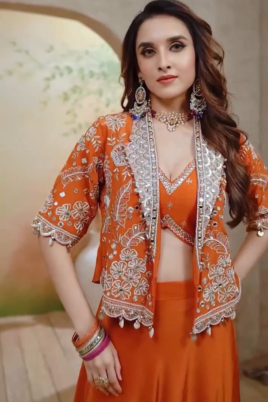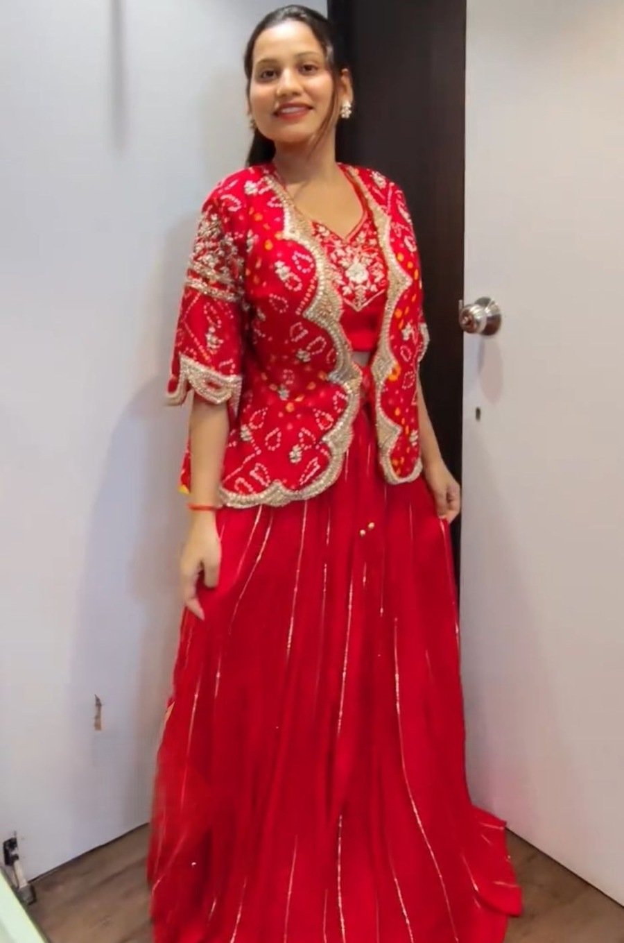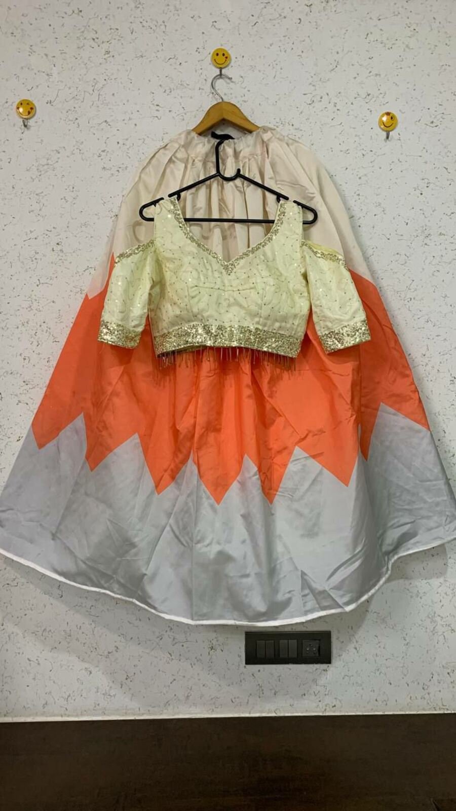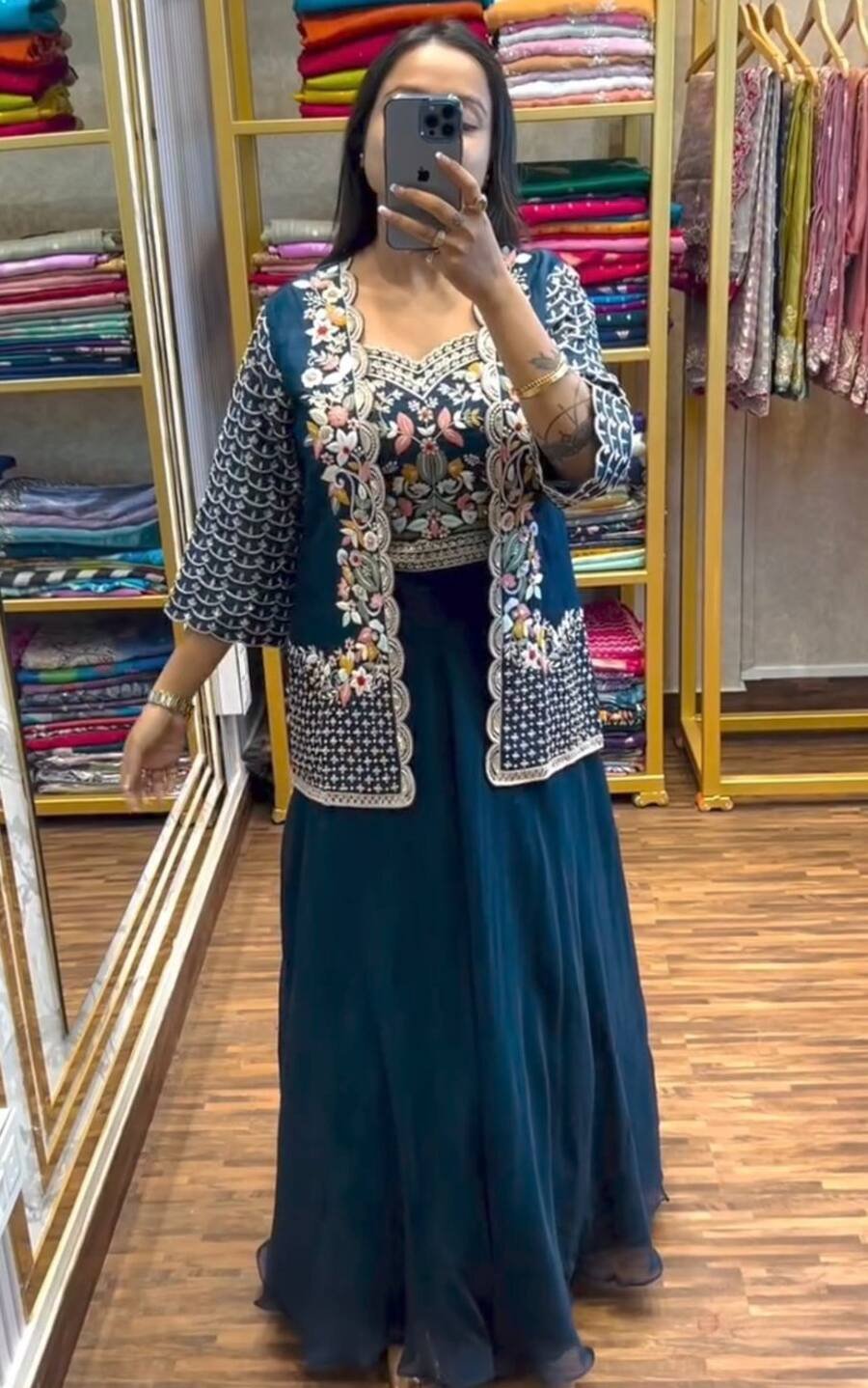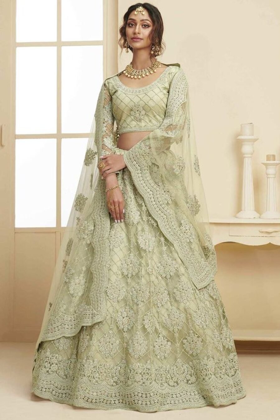 LEHENGA(STITCHED) : FABRIC : HEAVY GEORGETTE WORK : PLAIN WAIST : SUPPORTED UP TO 42 INCH CLOSER : DRAWSTRING WITH HAND MADE TASSELS AND ZIP STITCHING : STITCHED WITH CANVAS WITH CAN CAN LENGTH : 41 ...