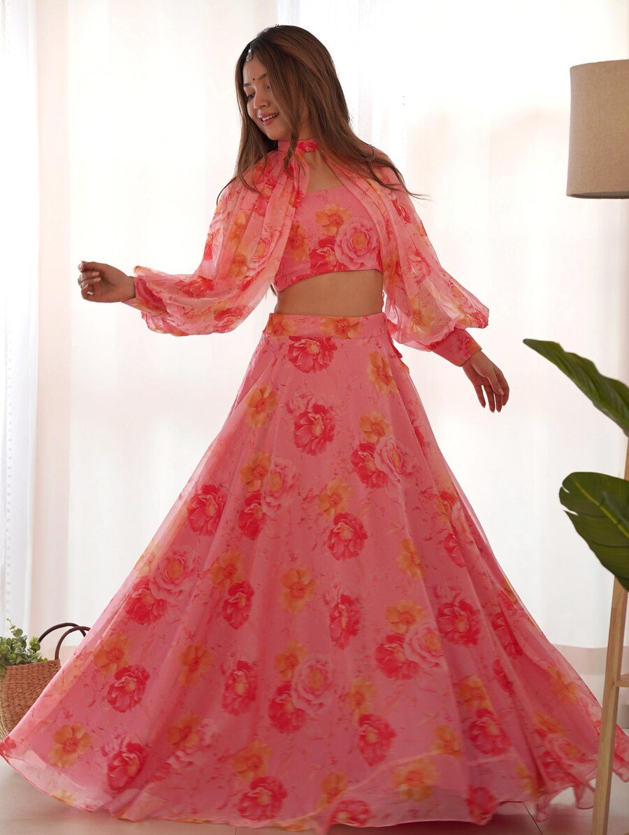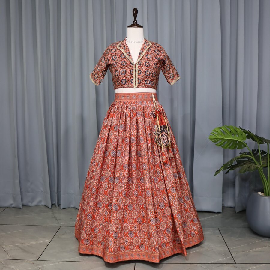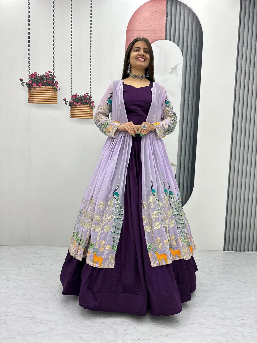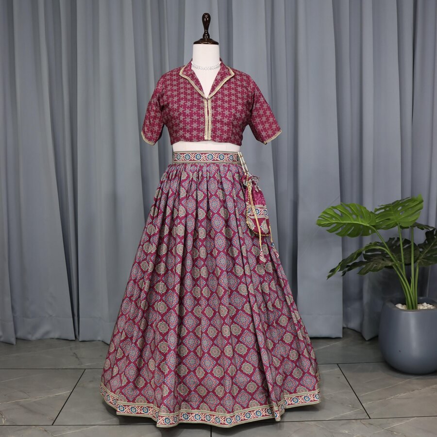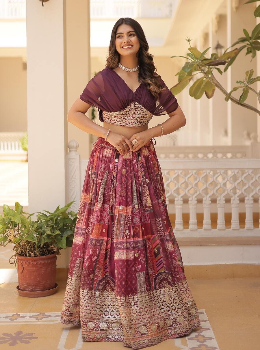 FANCY GEORGETTE PLAIN LEHENGA WITH DIGITAL PRINTED CHOLI AND KOTI WINE