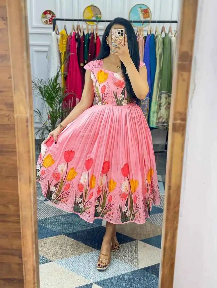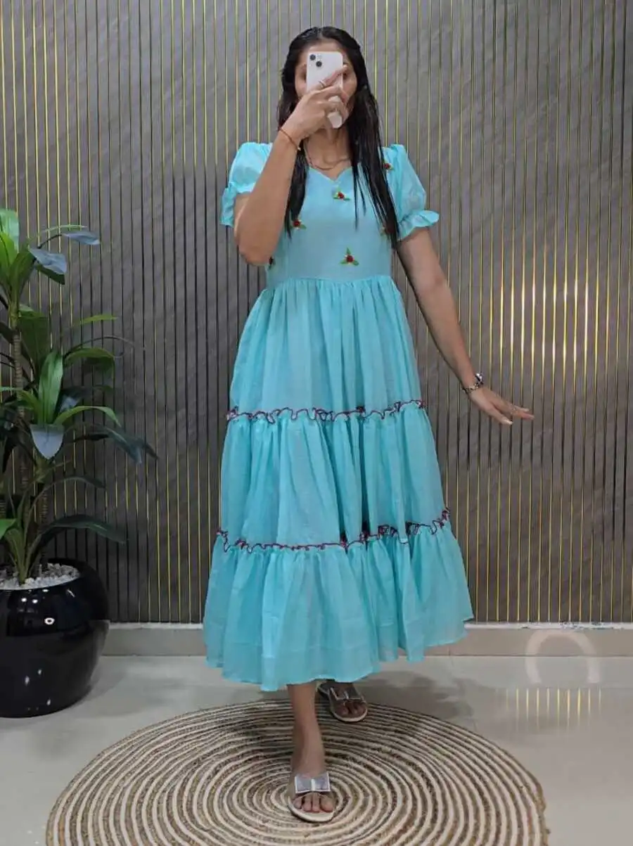 ONE PIECE : FABRIC : PURE MUL MUL COTTON WORK : EMBROIDERY THREAD WORK CLOSURE : BACK ZIP CHAIN LINING : SOFT MICRO-COTTON SIZE : ( M TO L )( XL TO XXL ) (FULLY STITCHED) ...