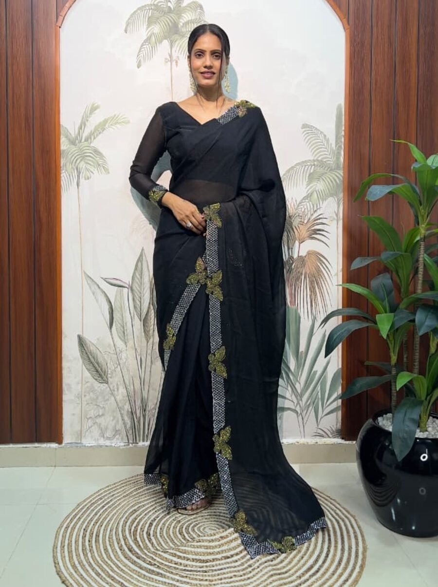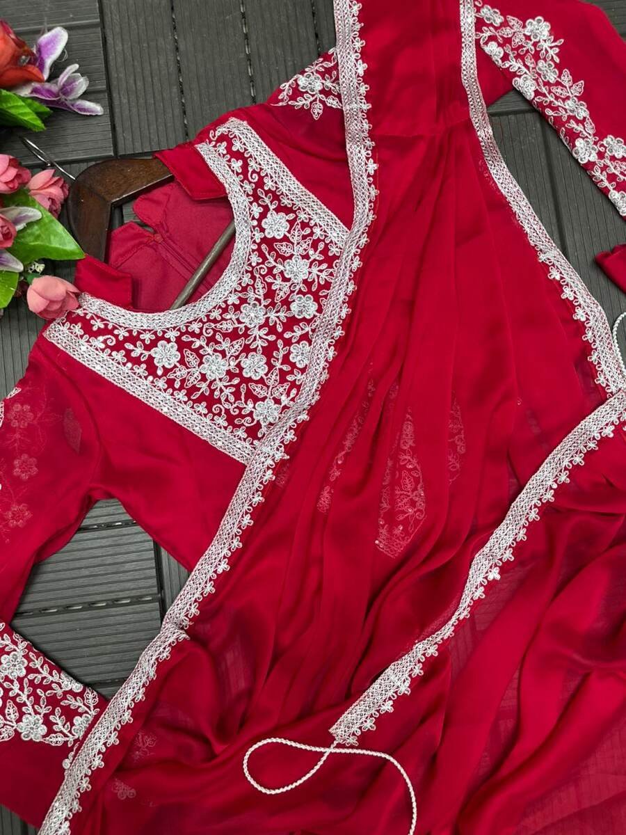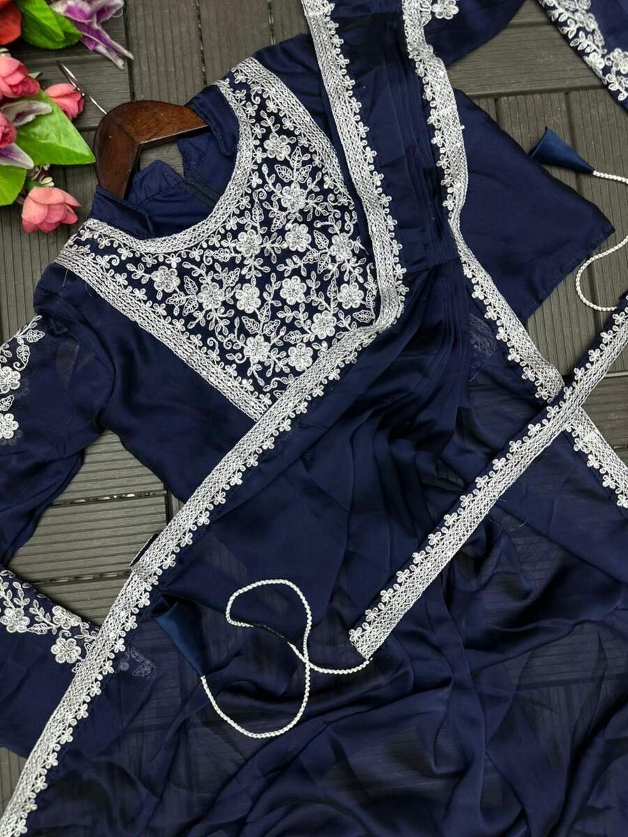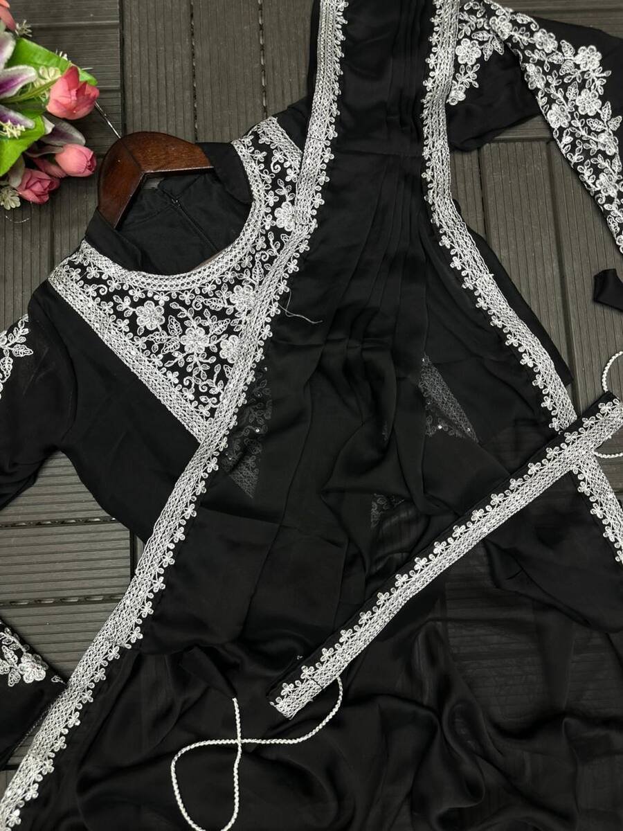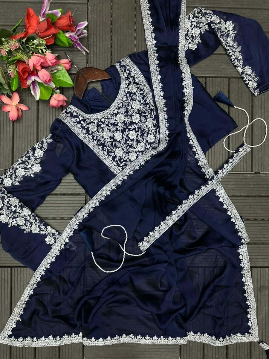 READY TO WEAR SAREE : FABRIC : PREMIUM STARLING GEORGETTE SILK SAREE WORK :- EMBROIDERY MULTI SEQUENCE & ARCO CUT WORK SIZE : FREE SIZE UP TO-44 INCH BLOUSE : FABRIC : RUNNING BANGALORI SILK WORK ...