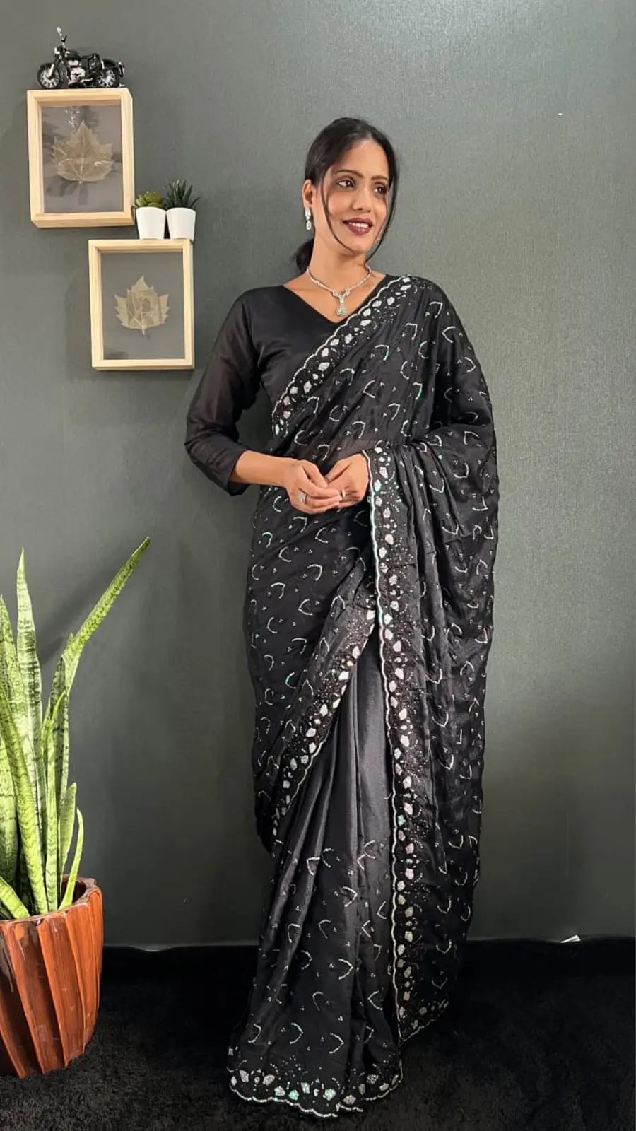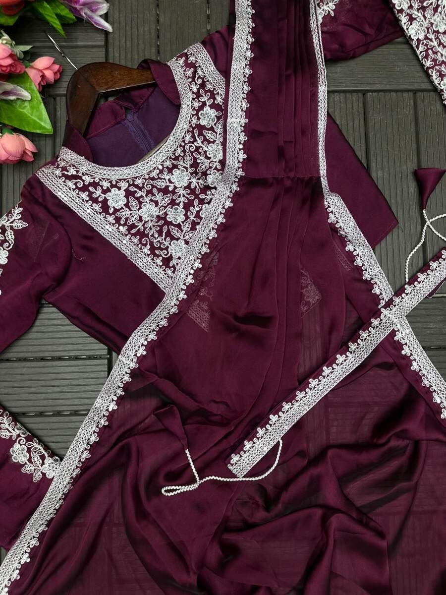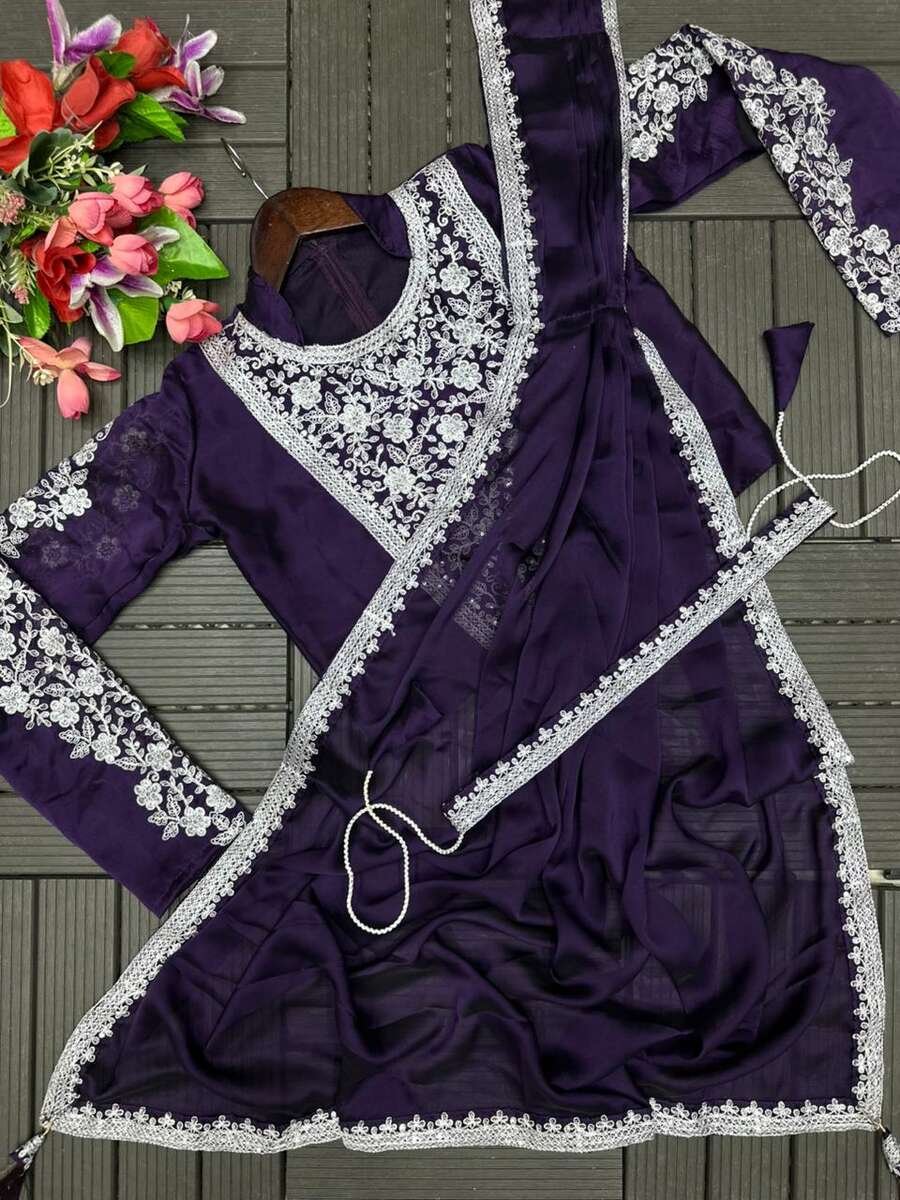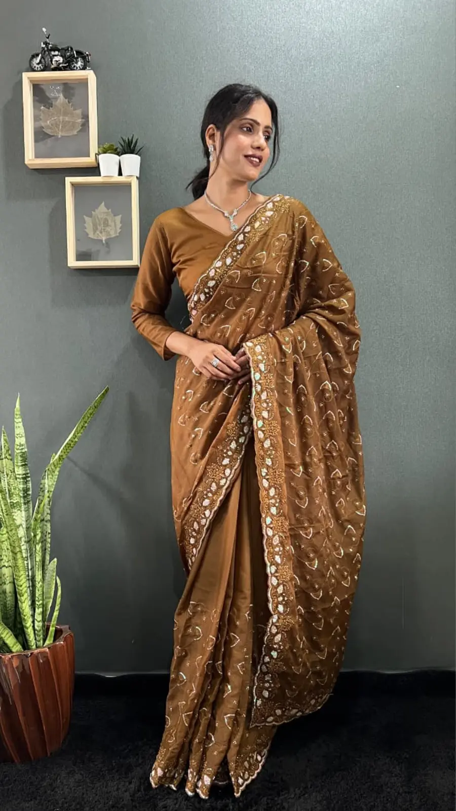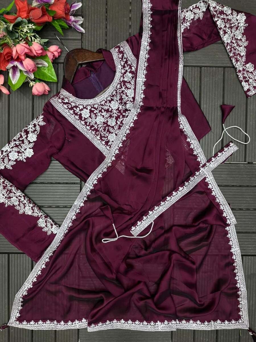 READY TO WEAR SAREE : FABRIC : PREMIUM STARLING GEORGETTE SILK SAREE WORK :- EMBROIDERY MULTI SEQUENCE & ARCO CUT WORK SIZE : FREE SIZE UP TO-44 INCH BLOUSE : FABRIC : RUNNING BANGALORI SILK WORK ...