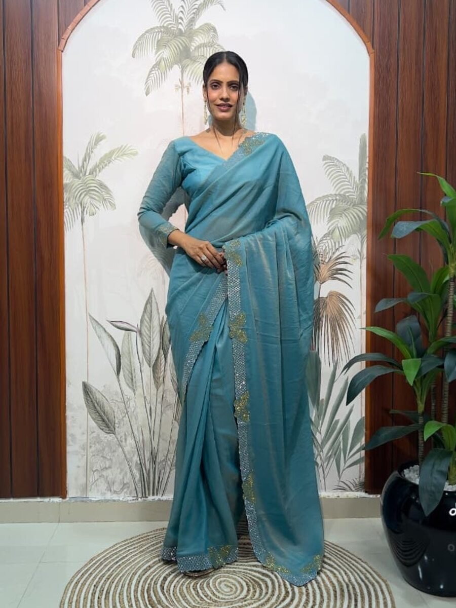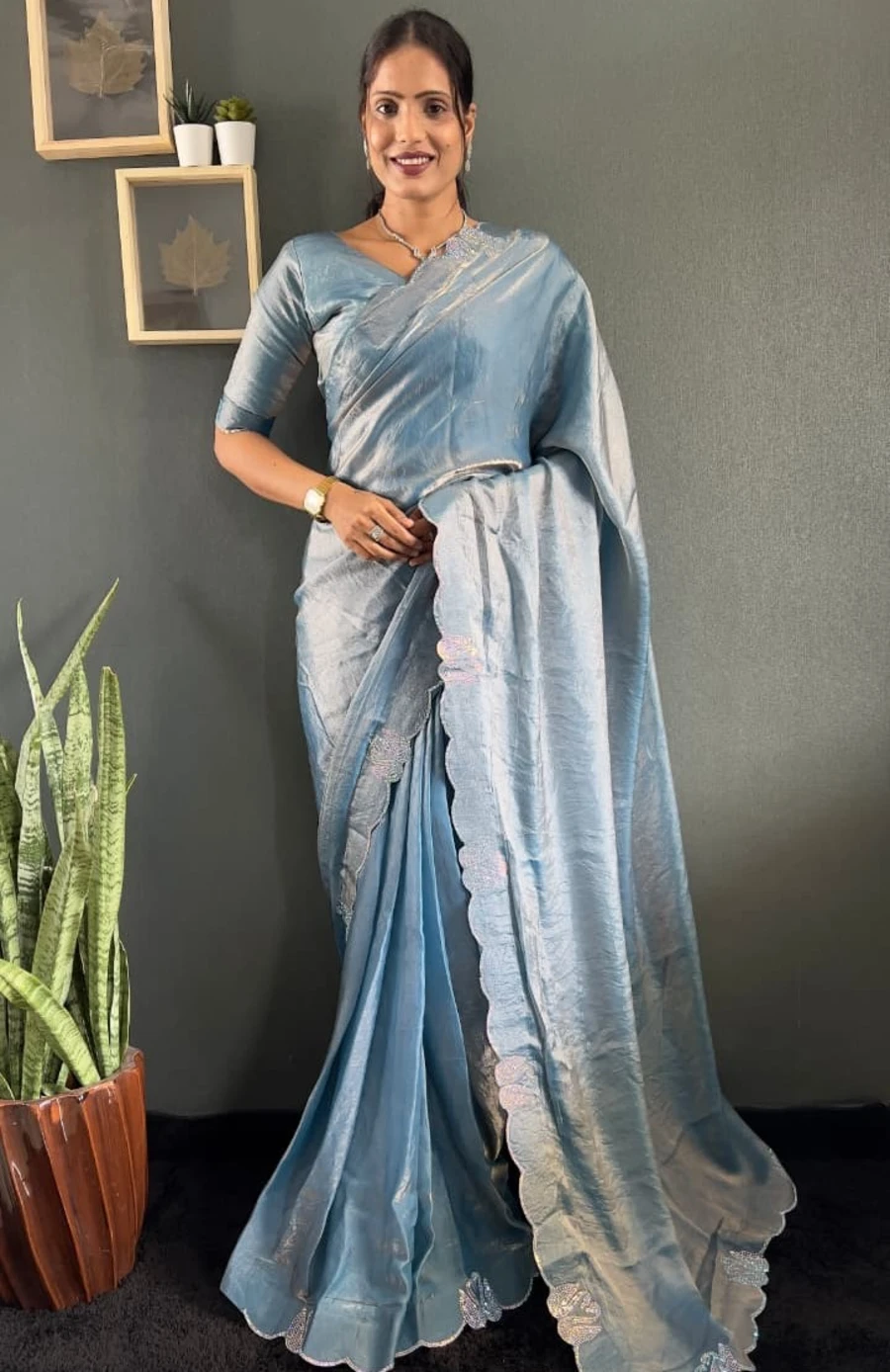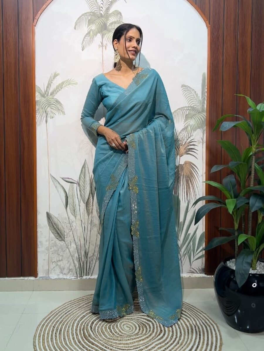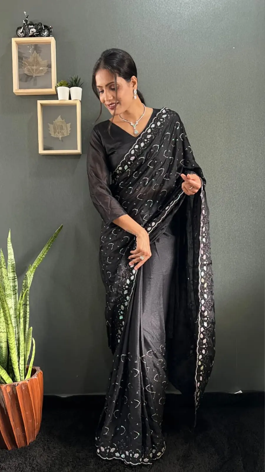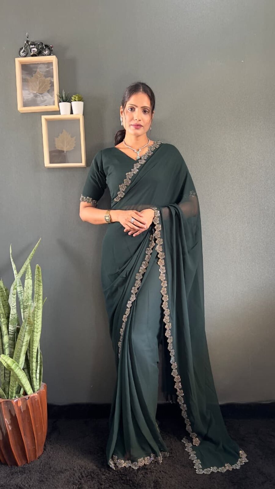 READY TO WEAR SAREE : FABRIC : PREMIUM STARLING GEORGETTE SILK SAREE WORK :- EMBROIDERY MULTI SEQUENCE & ARCO CUT WORK SIZE : FREE SIZE UP TO-44 INCH BLOUSE : FABRIC : RUNNING BANGALORI SILK WORK ...