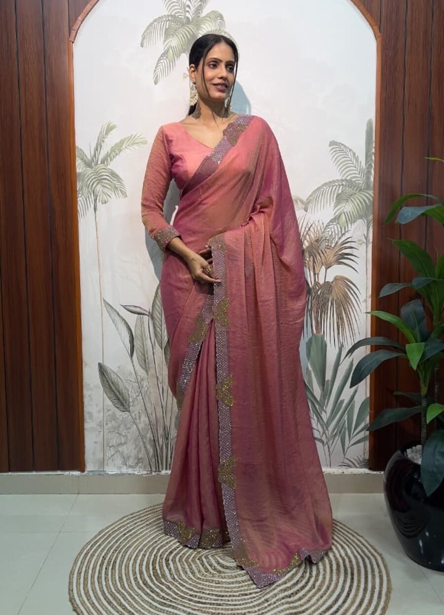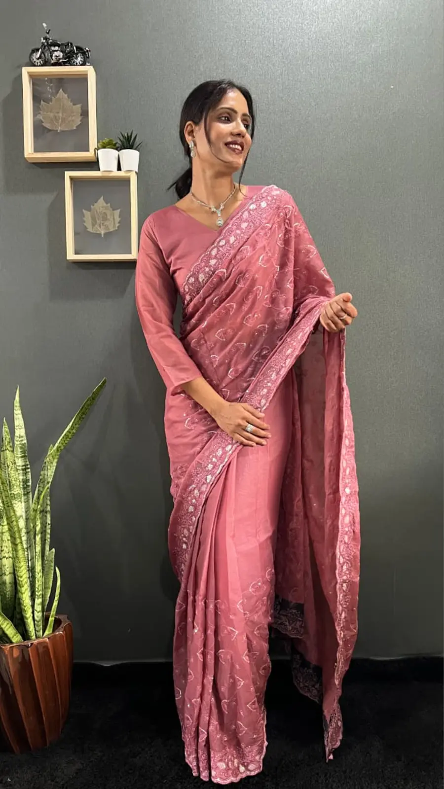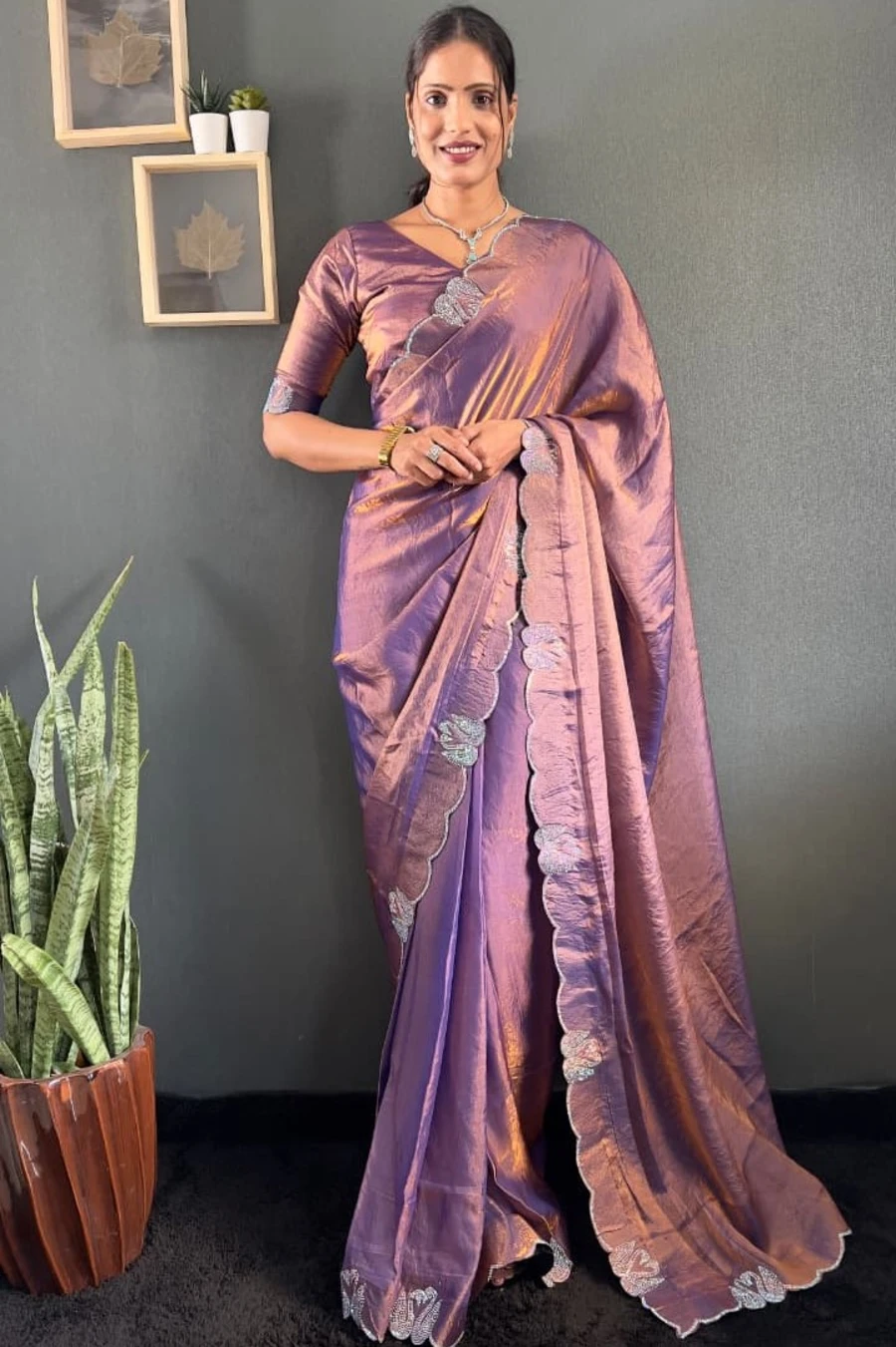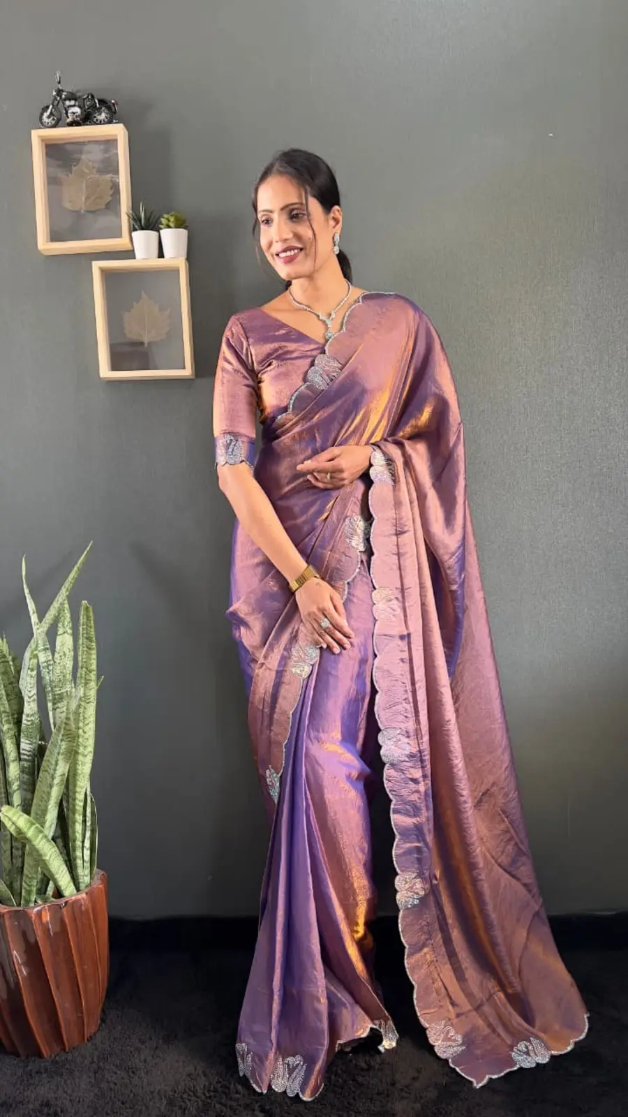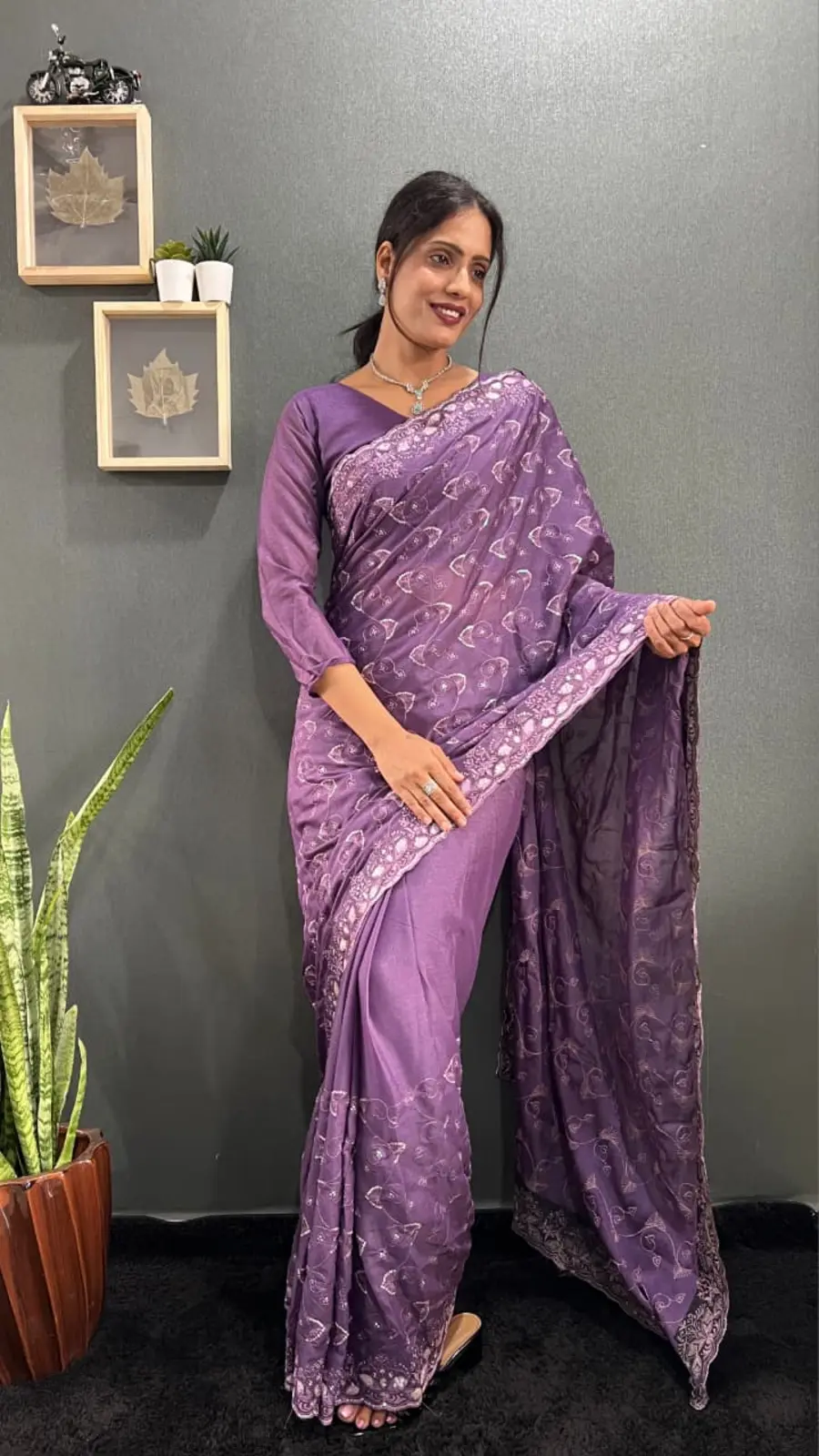 MODERN GEORGETTE SILK EMBROIDERY MULTI SEQUENCE & ARCO CUT WORK READY TO WEAR SAREE WITH UNSTITCHED BLOUSE LAVENDER
